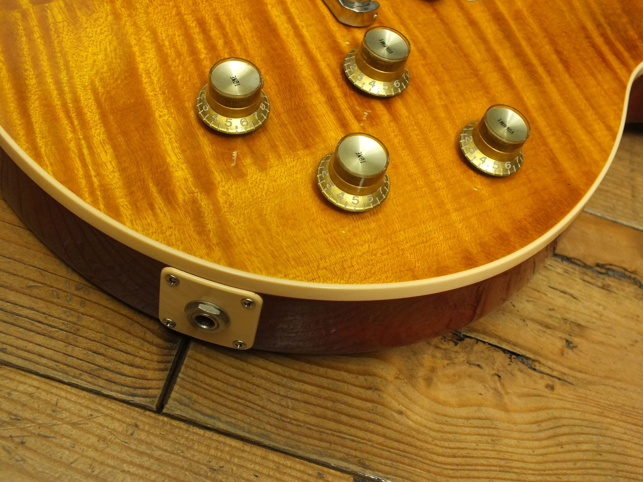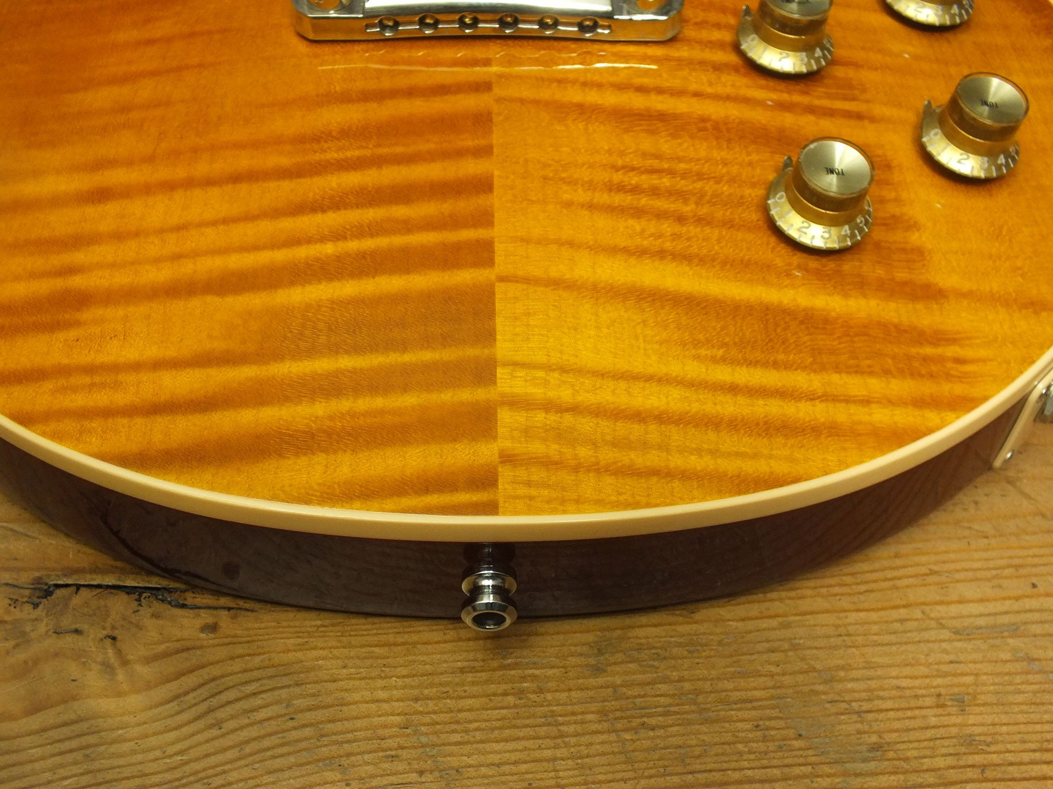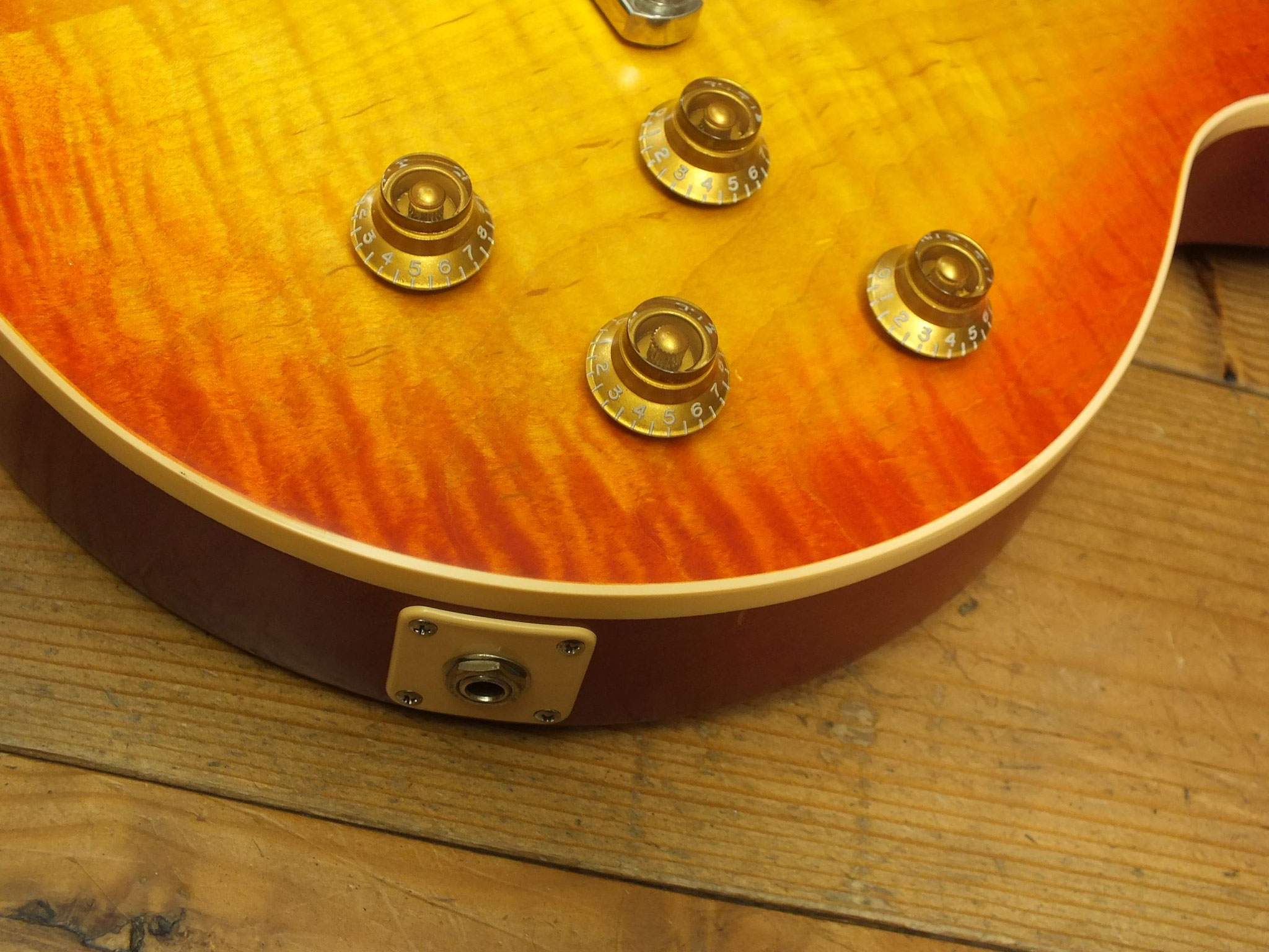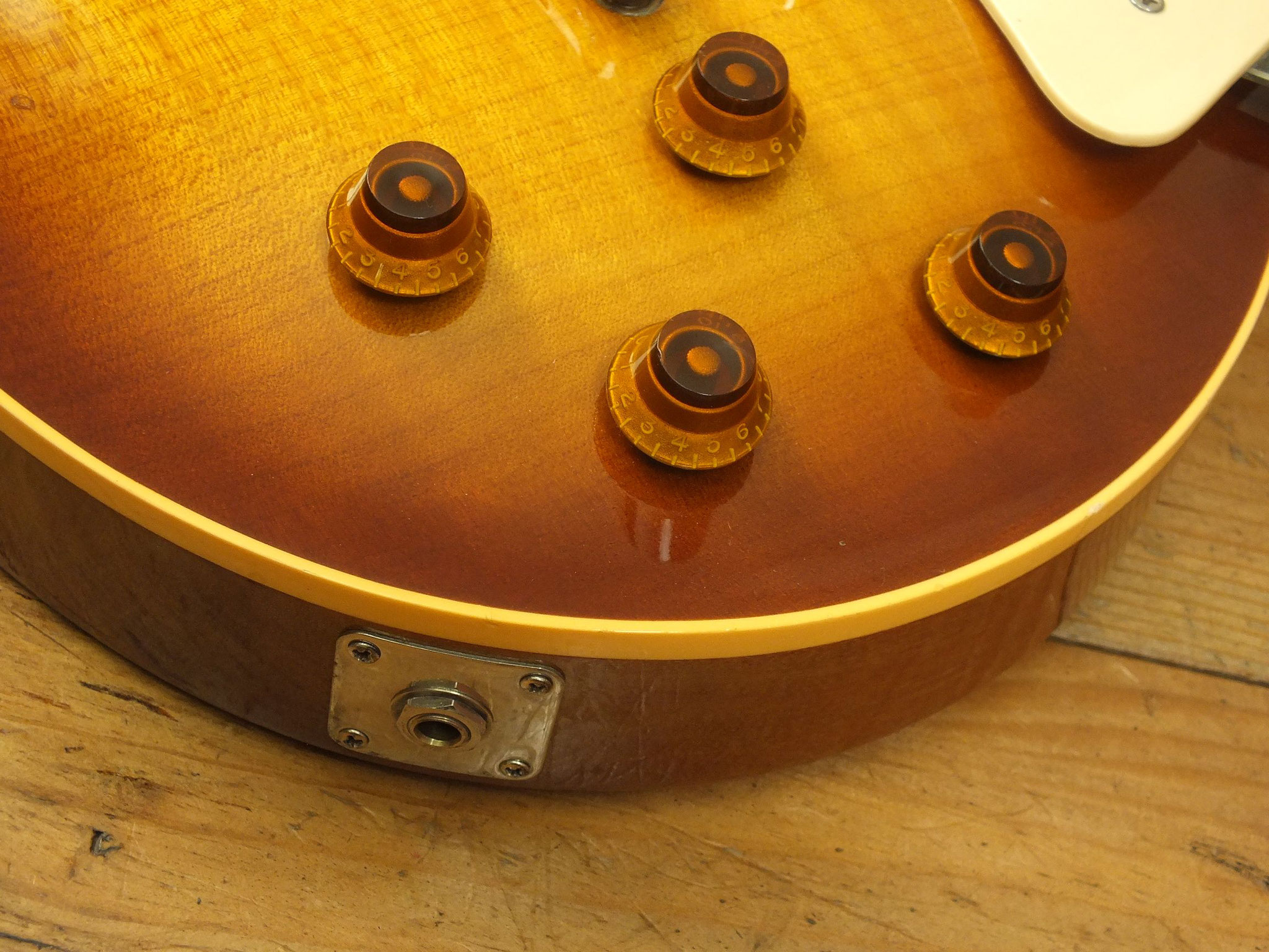 Die sonstigen Komponenten sind altbewährt: Mahagoni-Body mit gewölbter Ahorn-Decke. Ein recht kräftiger Hals mit Ebenholz-Griffbrett und 22 Medium-Jumbo-Bünden.
