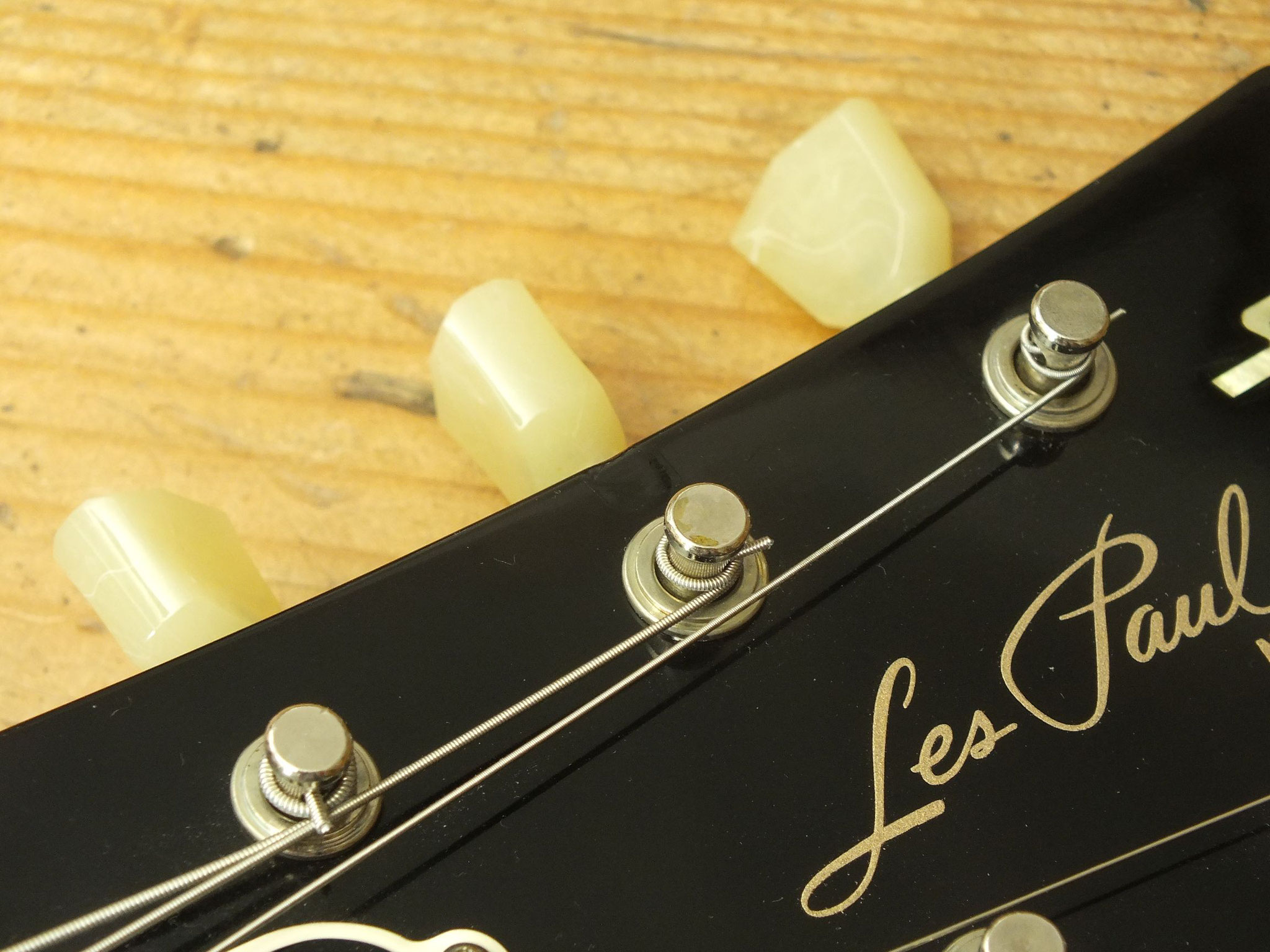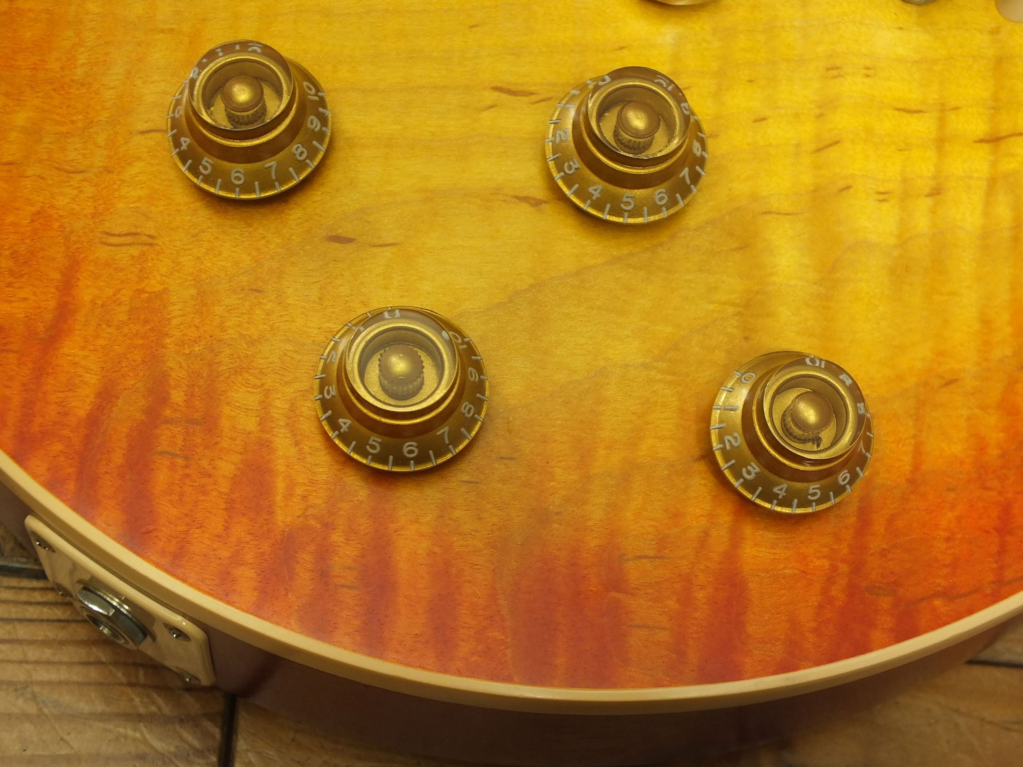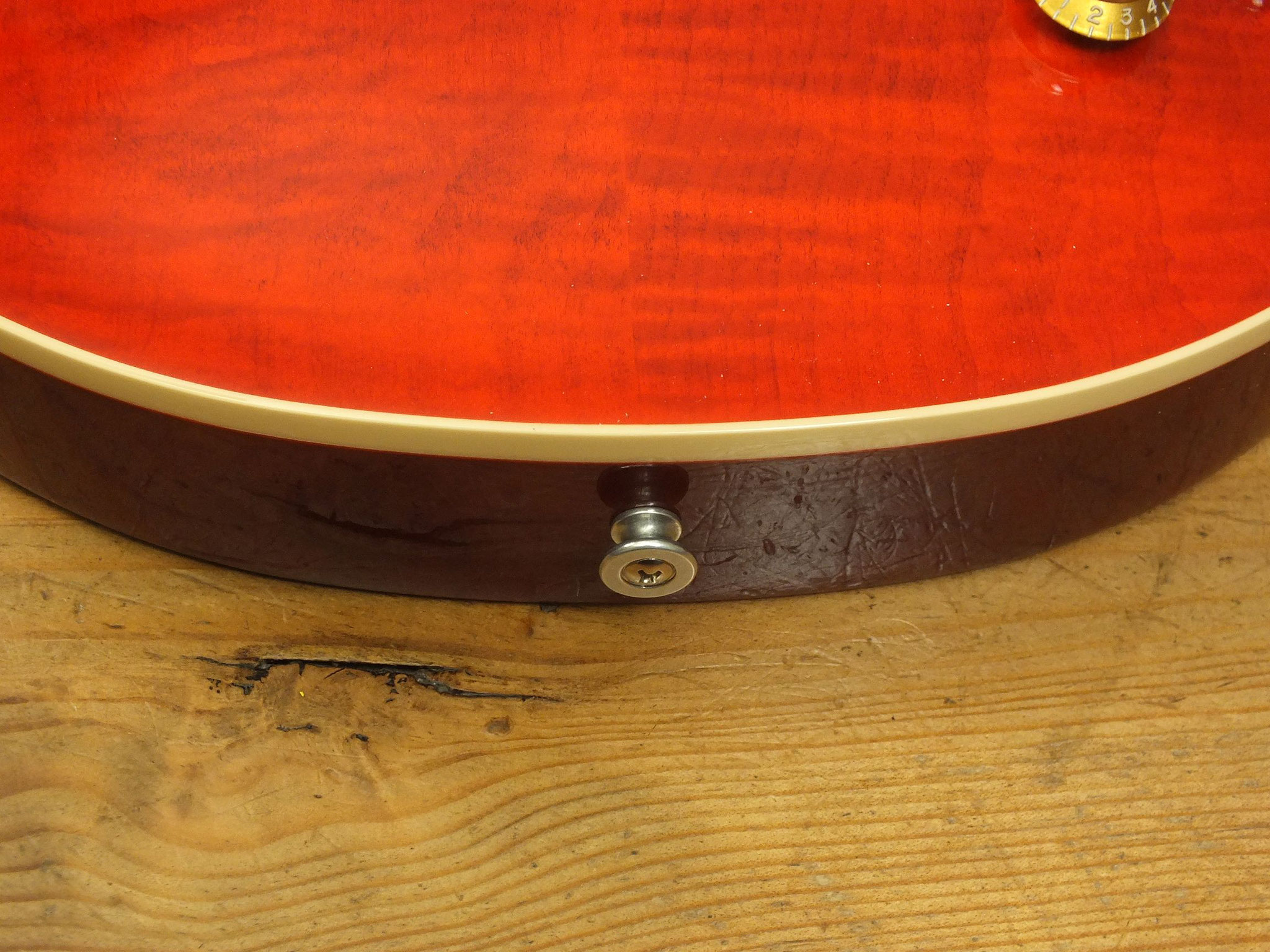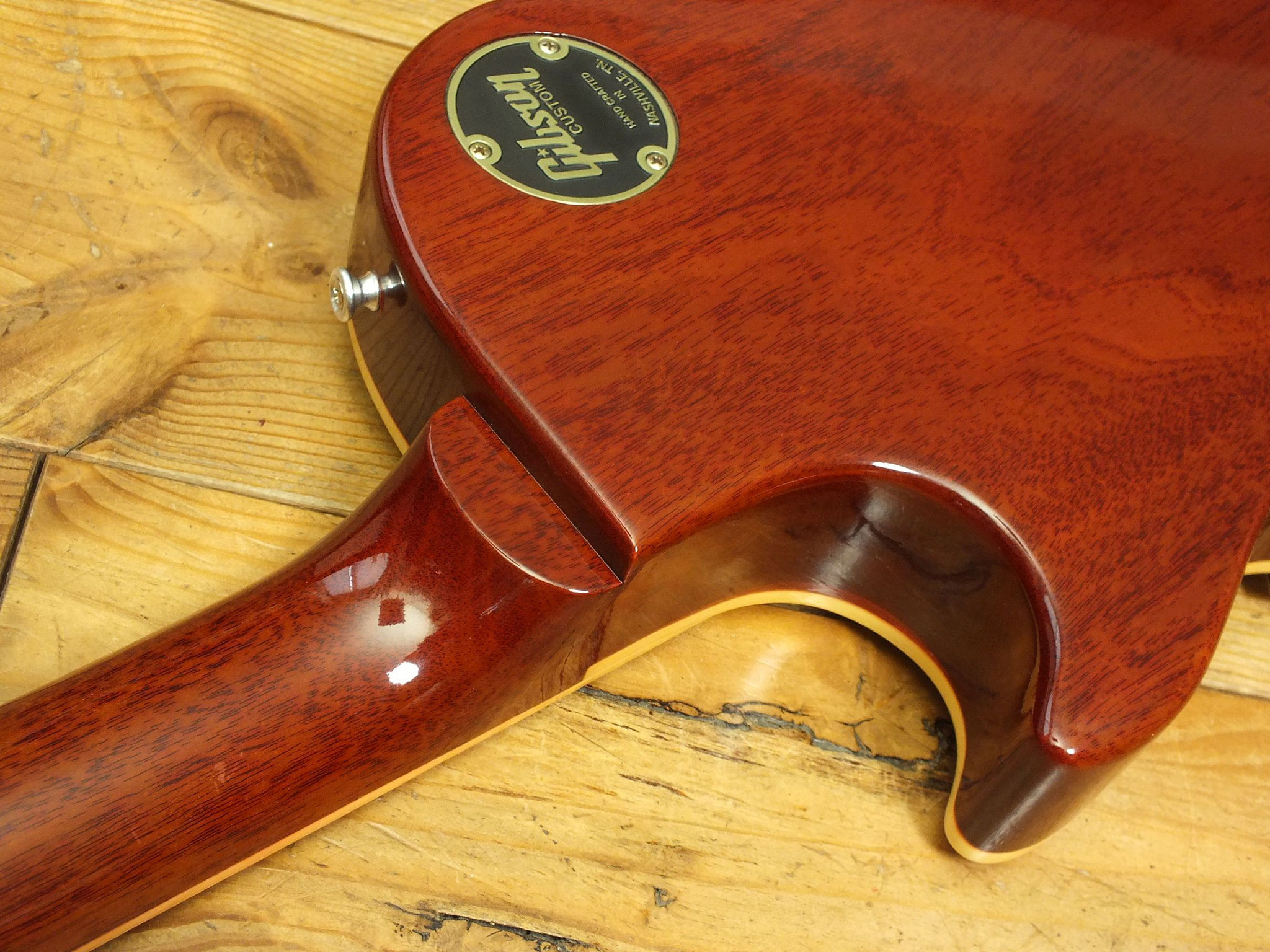 Die sonstigen Komponenten sind altbewährt: Mahagoni-Body mit gewölbter Ahorn-Decke. Ein recht kräftiger Hals mit Ebenholz-Griffbrett und 22 Medium-Jumbo-Bünden.
