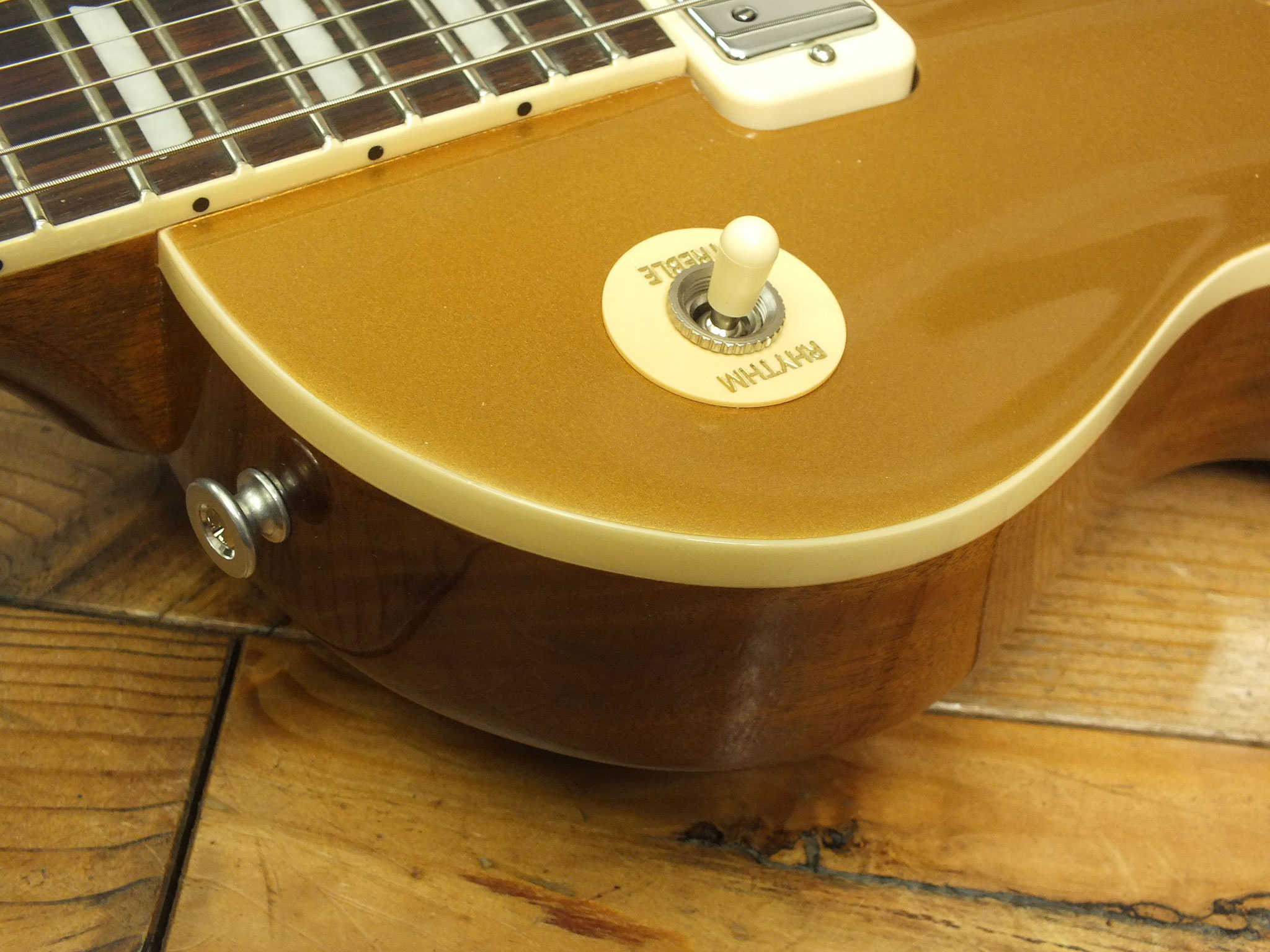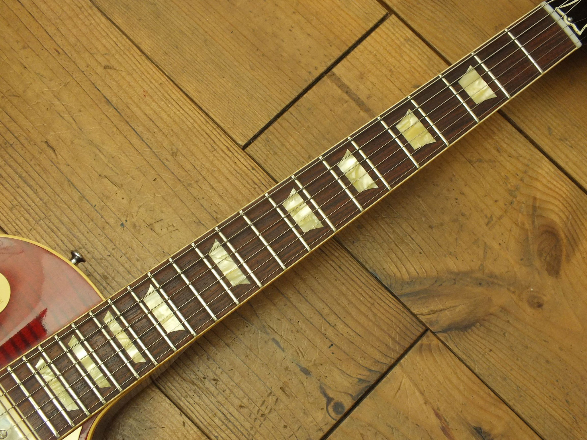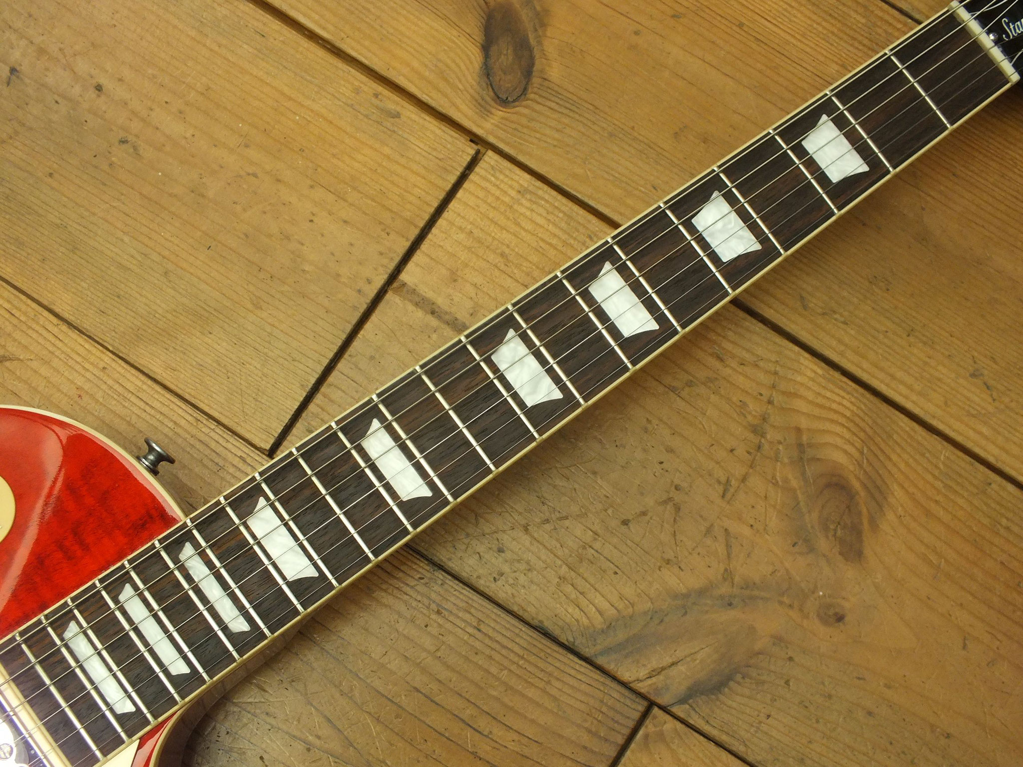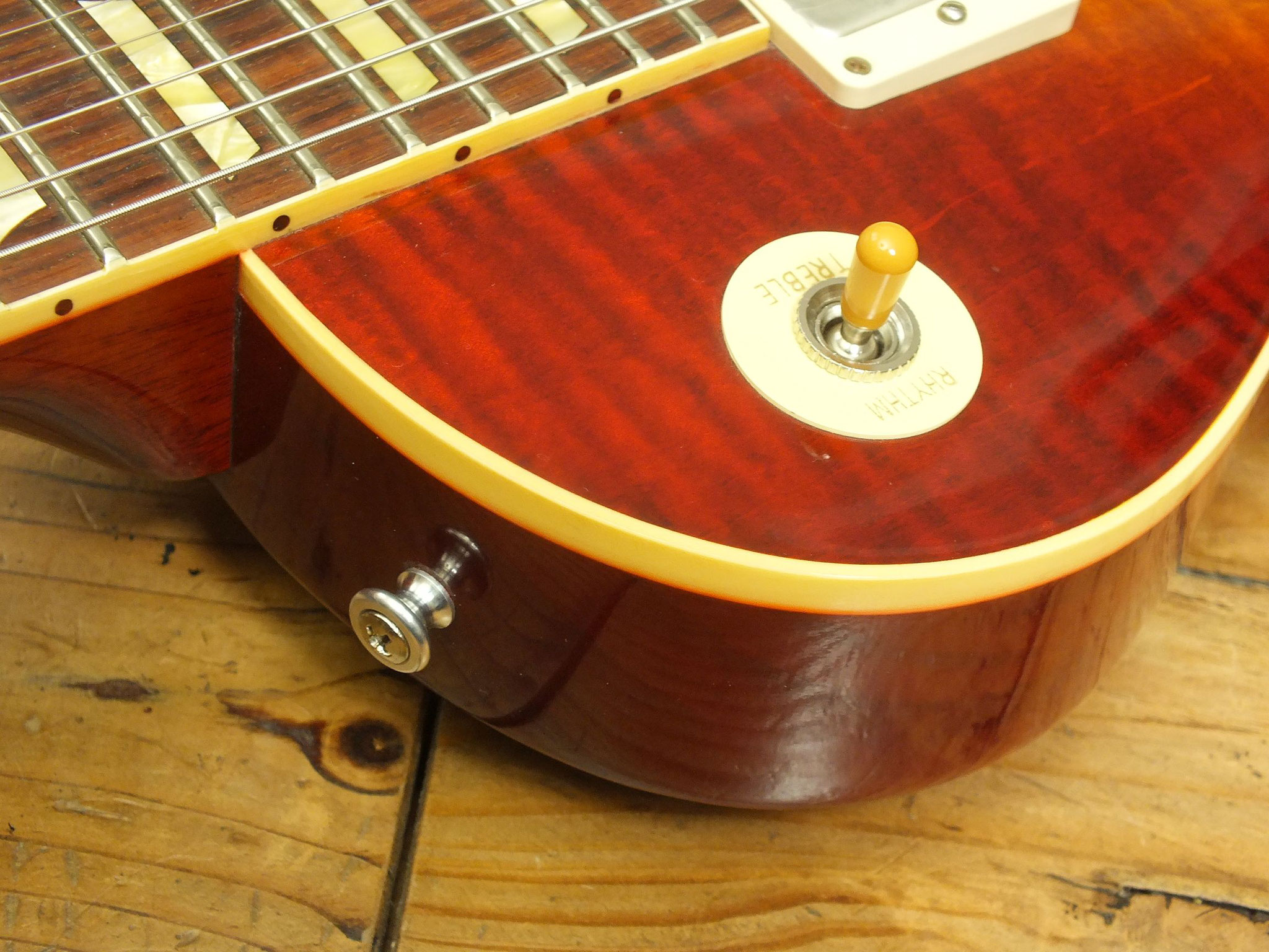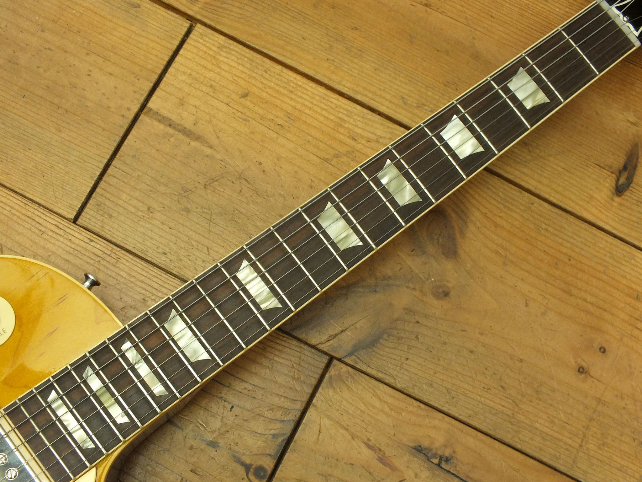 Die sonstigen Komponenten sind altbewährt: Mahagoni-Body mit gewölbter Ahorn-Decke. Ein recht kräftiger Hals mit Ebenholz-Griffbrett und 22 Medium-Jumbo-Bünden.