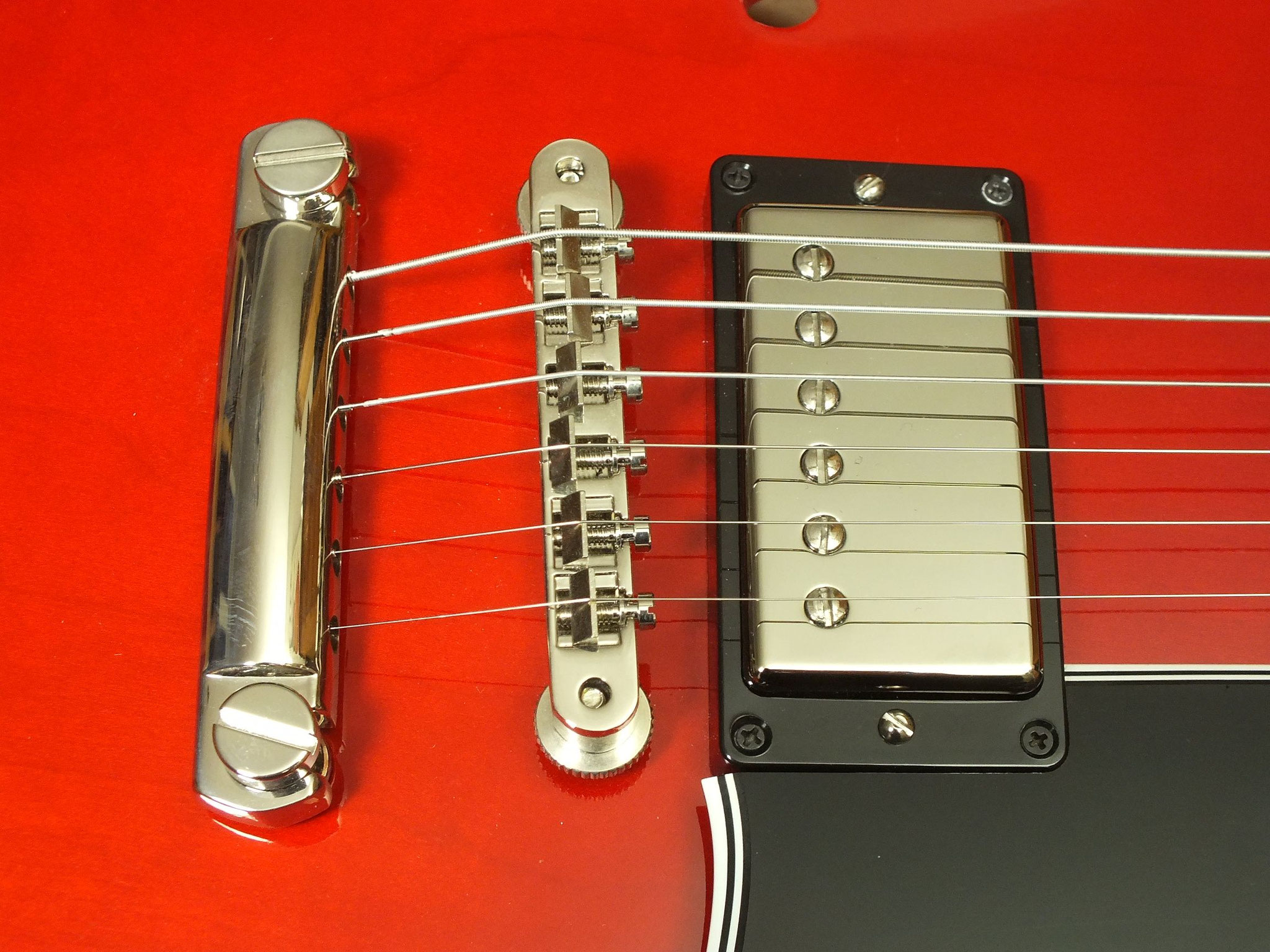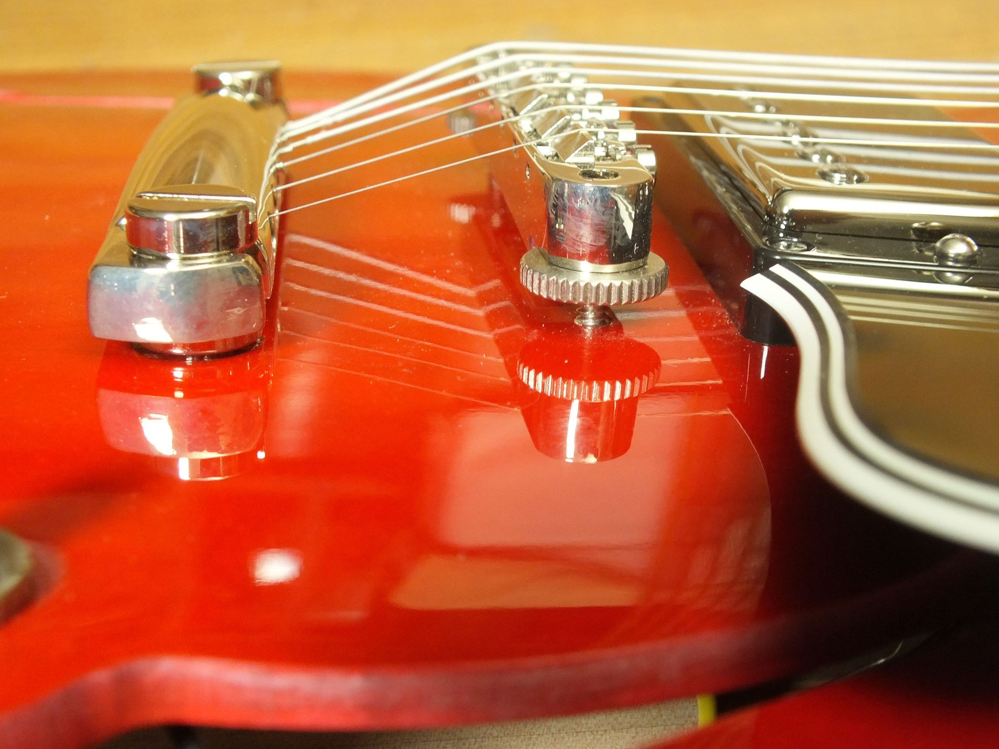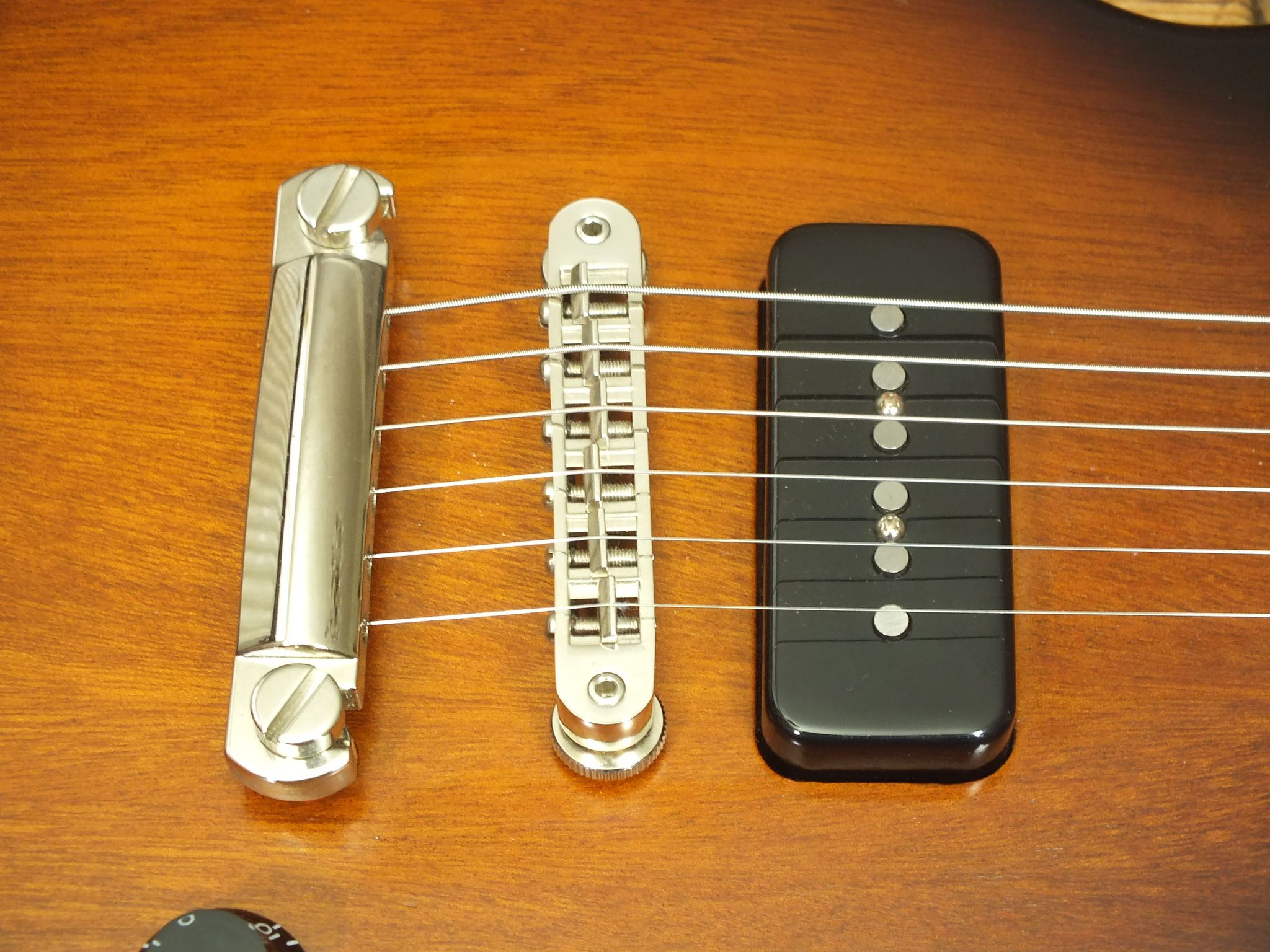 Ebenfalls nicht original sind das Alu-Stop-Tailpiece und die Tune-O-Matic Bridge von Faber, mit denen der Vorbesitzer die Gitarre ausgestattet hat.