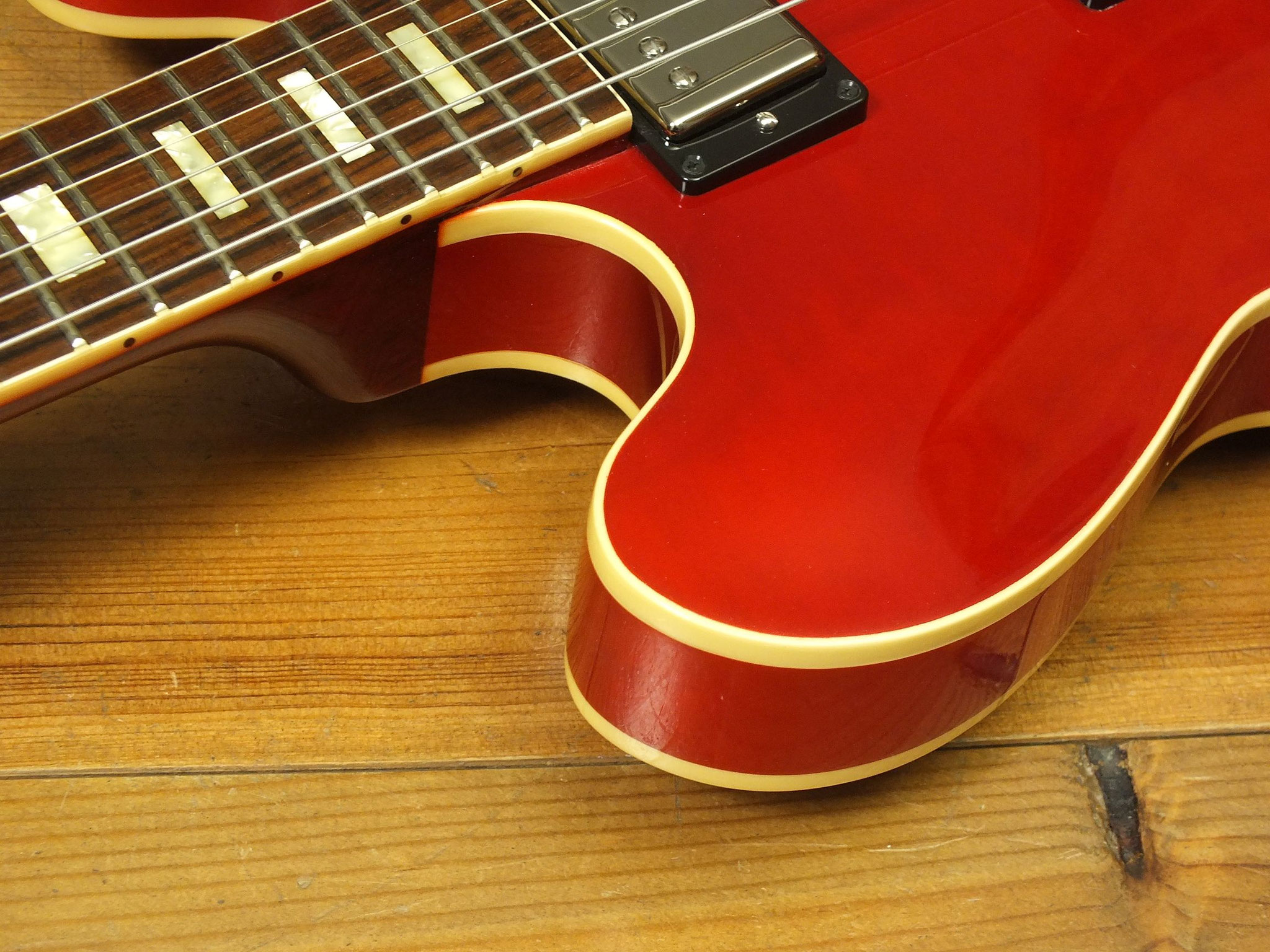 Die ES 150 D hat die gleiche Form wie die ES 335, jedoch einen dickeren Vollakustik Hollowbody aus Ahorn im wunderschönen "Walnut" Finish.