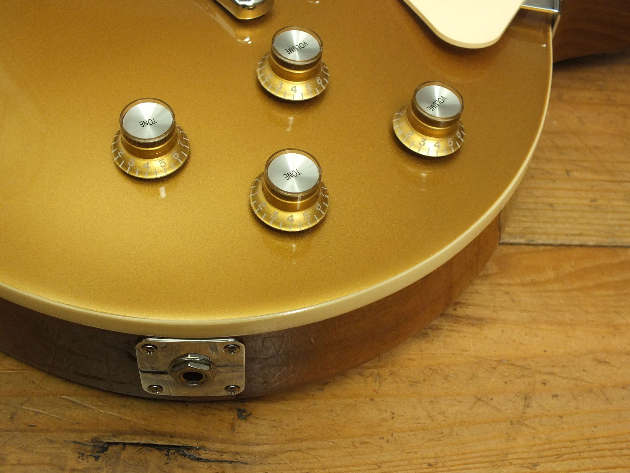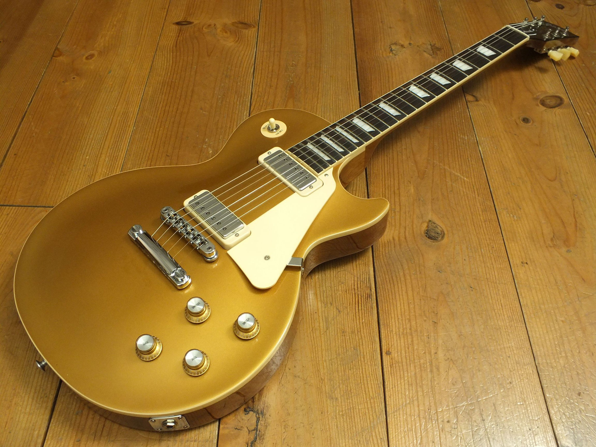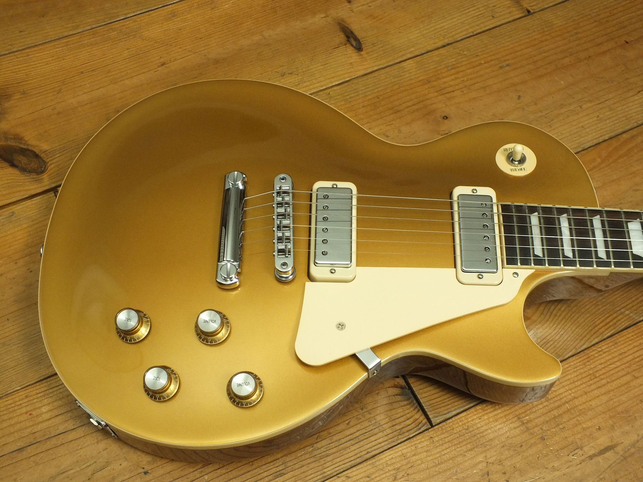 Mahagoni-Body mit gewölbter Ahorn-Decke im zeitlosen Goldtop-Finish.