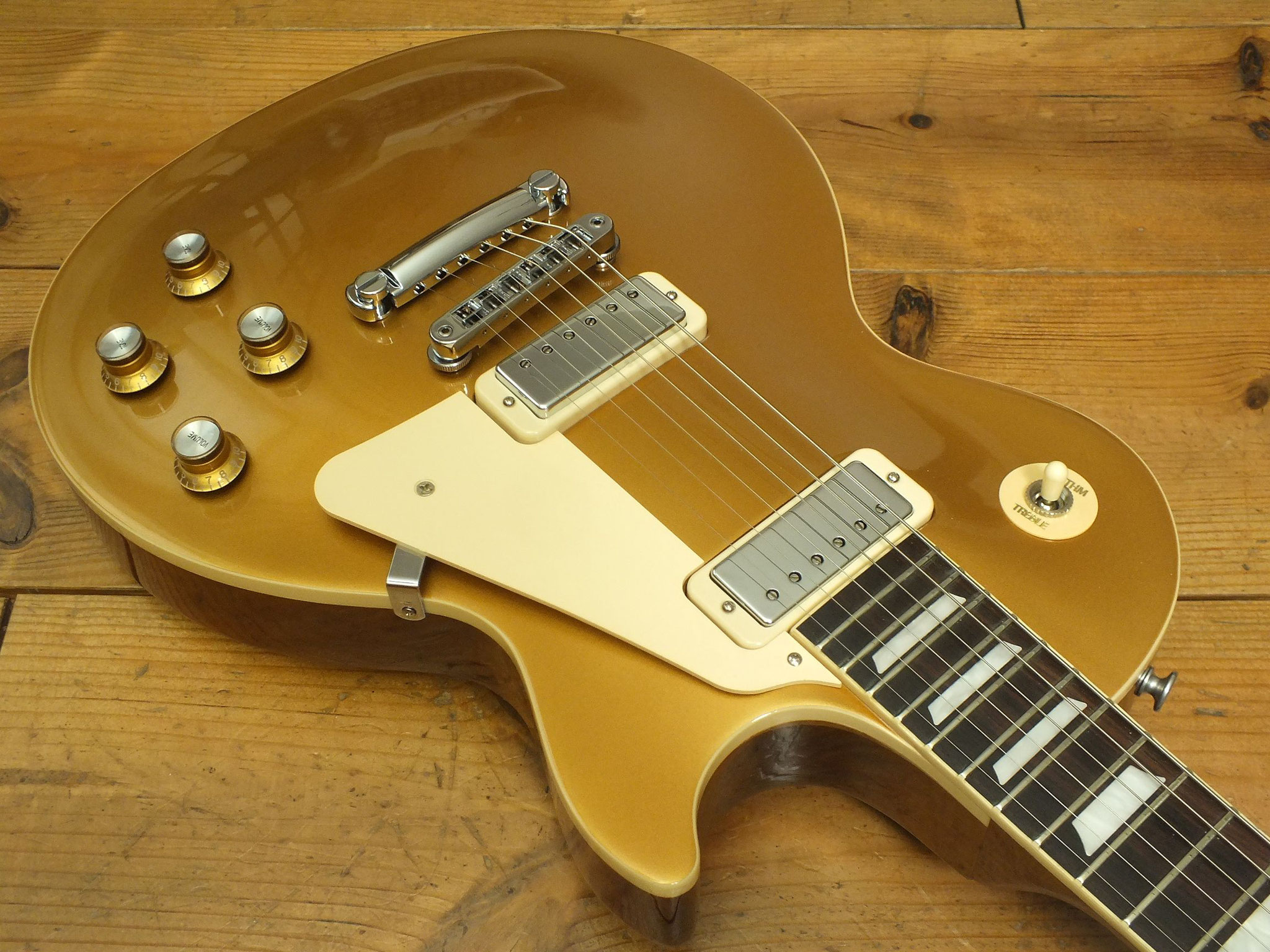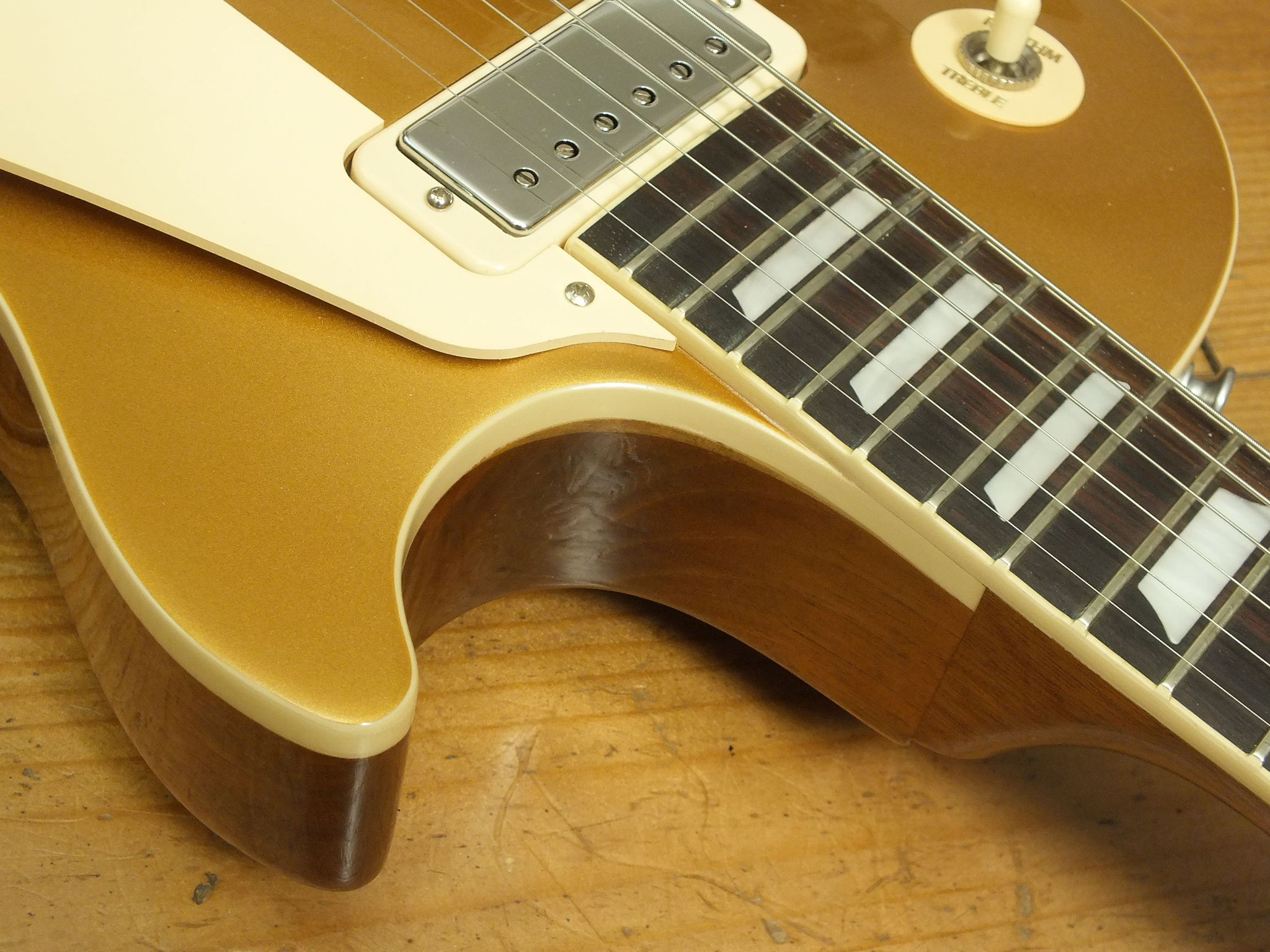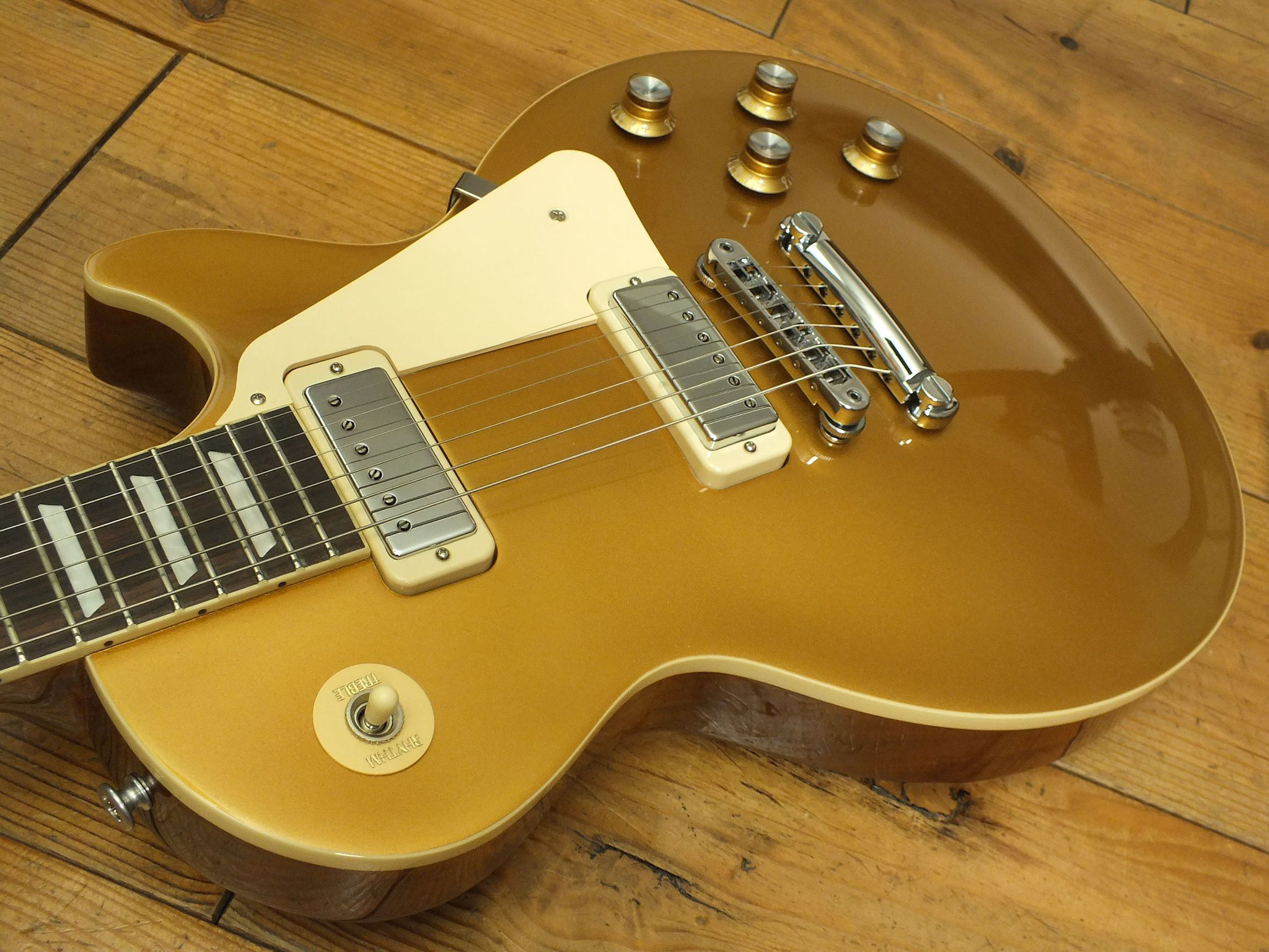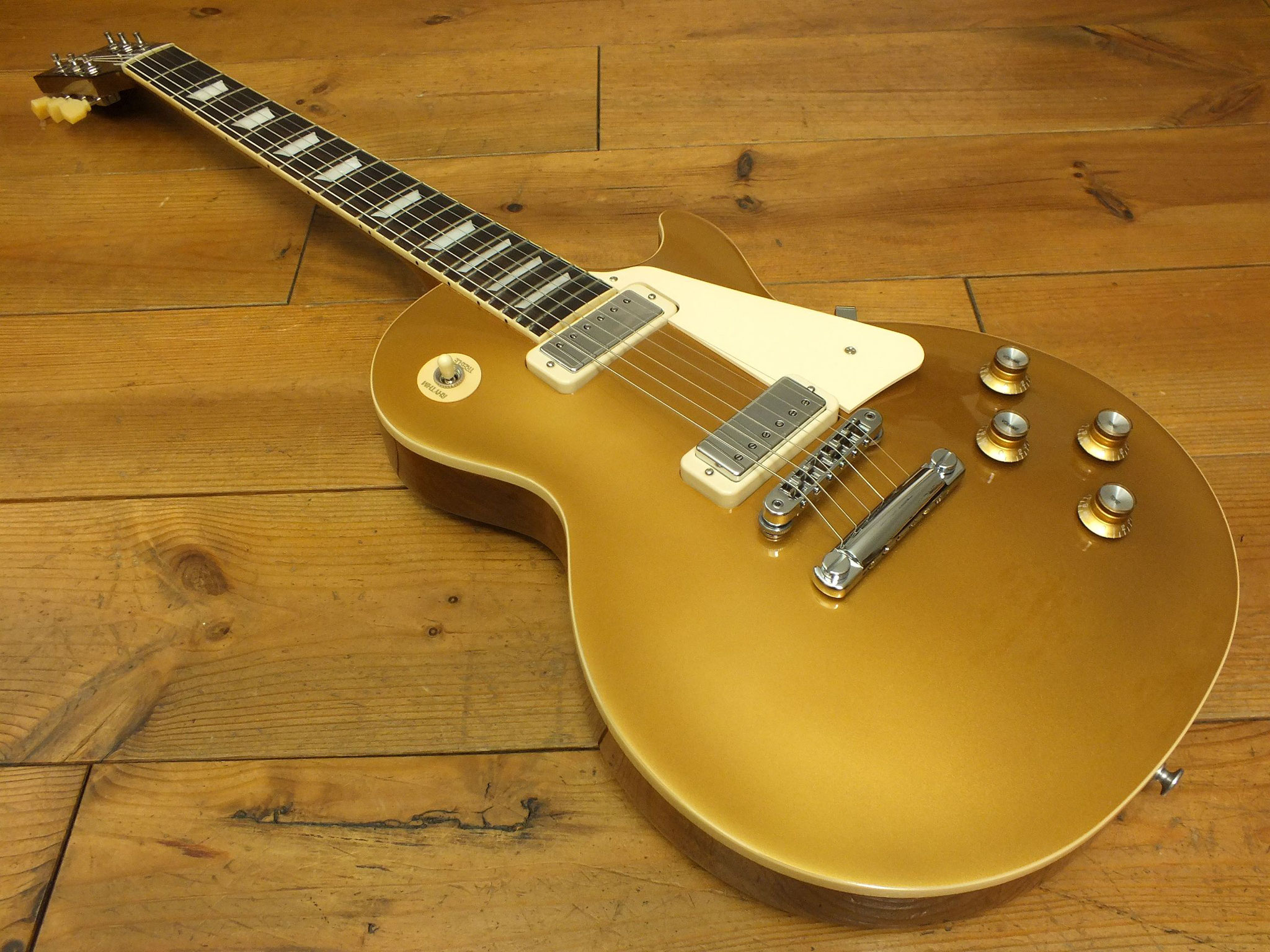 Mahagoni-Body mit gewölbter Ahorn-Decke im zeitlosen Goldtop-Finish.