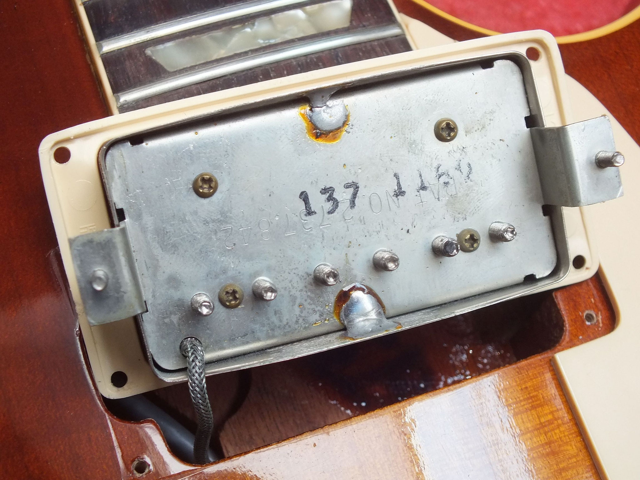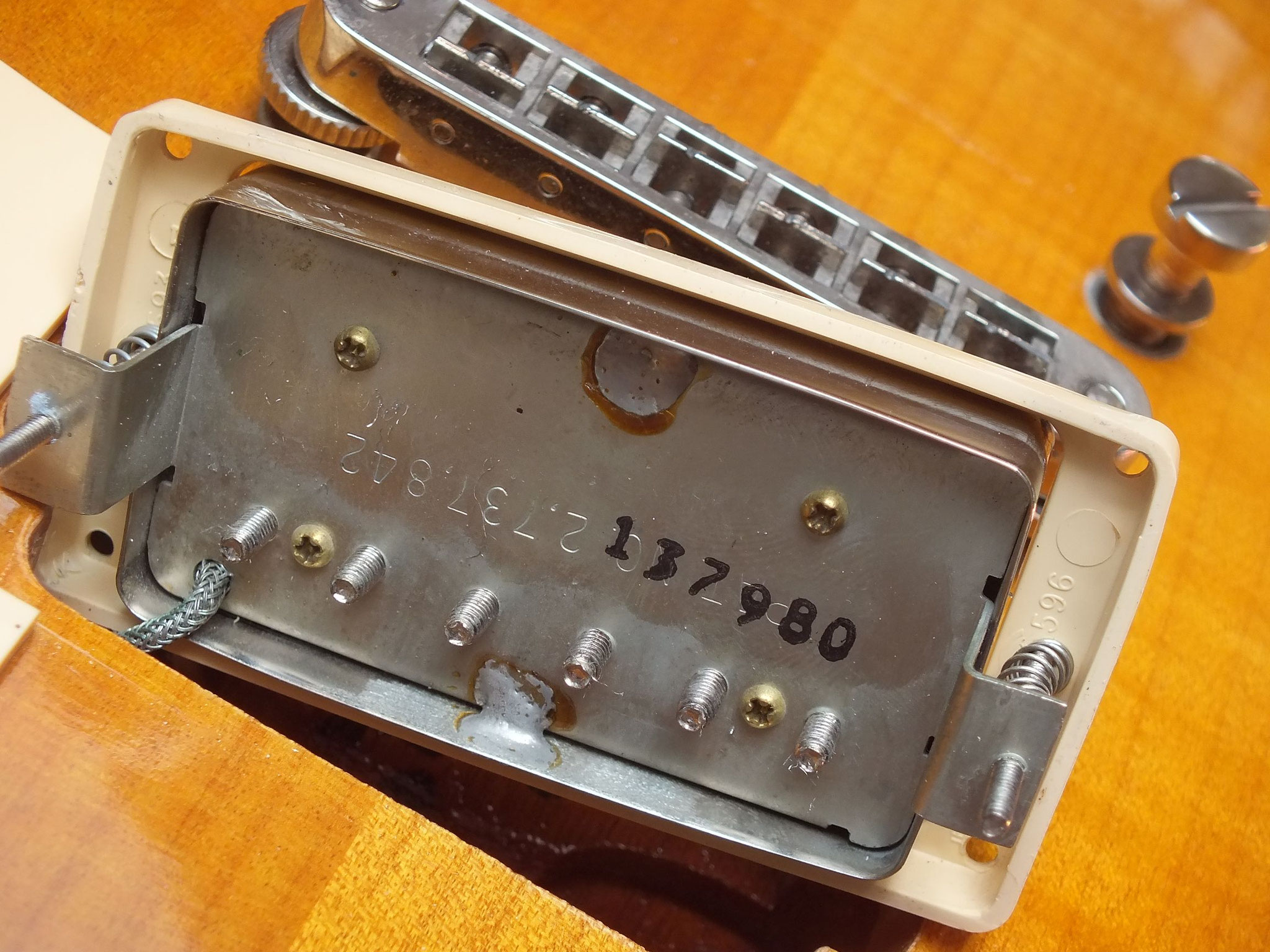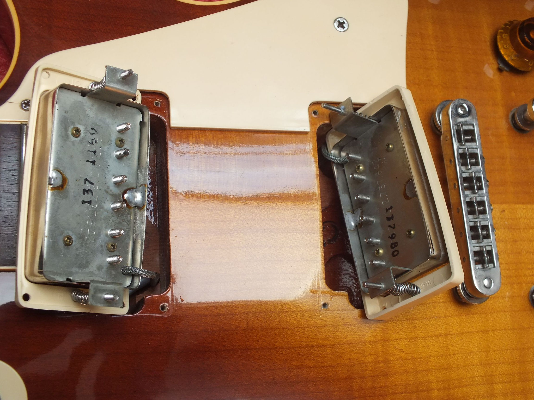 Bestückt mit zwei PAF Custombucker Pickups inklusive klassischer Verschaltung. Die Gitarre hatte zwischenzeitlich mal andere Pickups verbaut, ist jetzt aber wieder originalbestückt.
