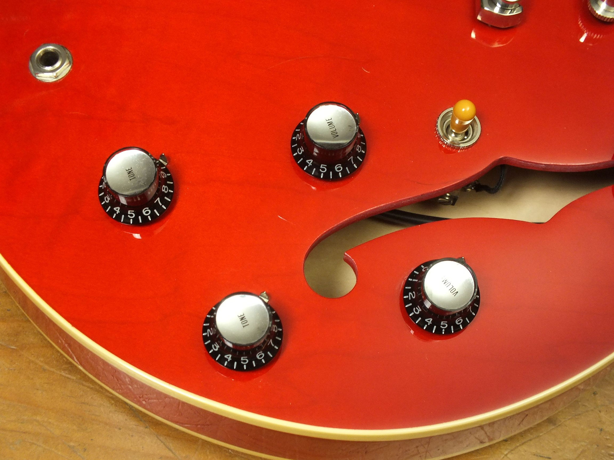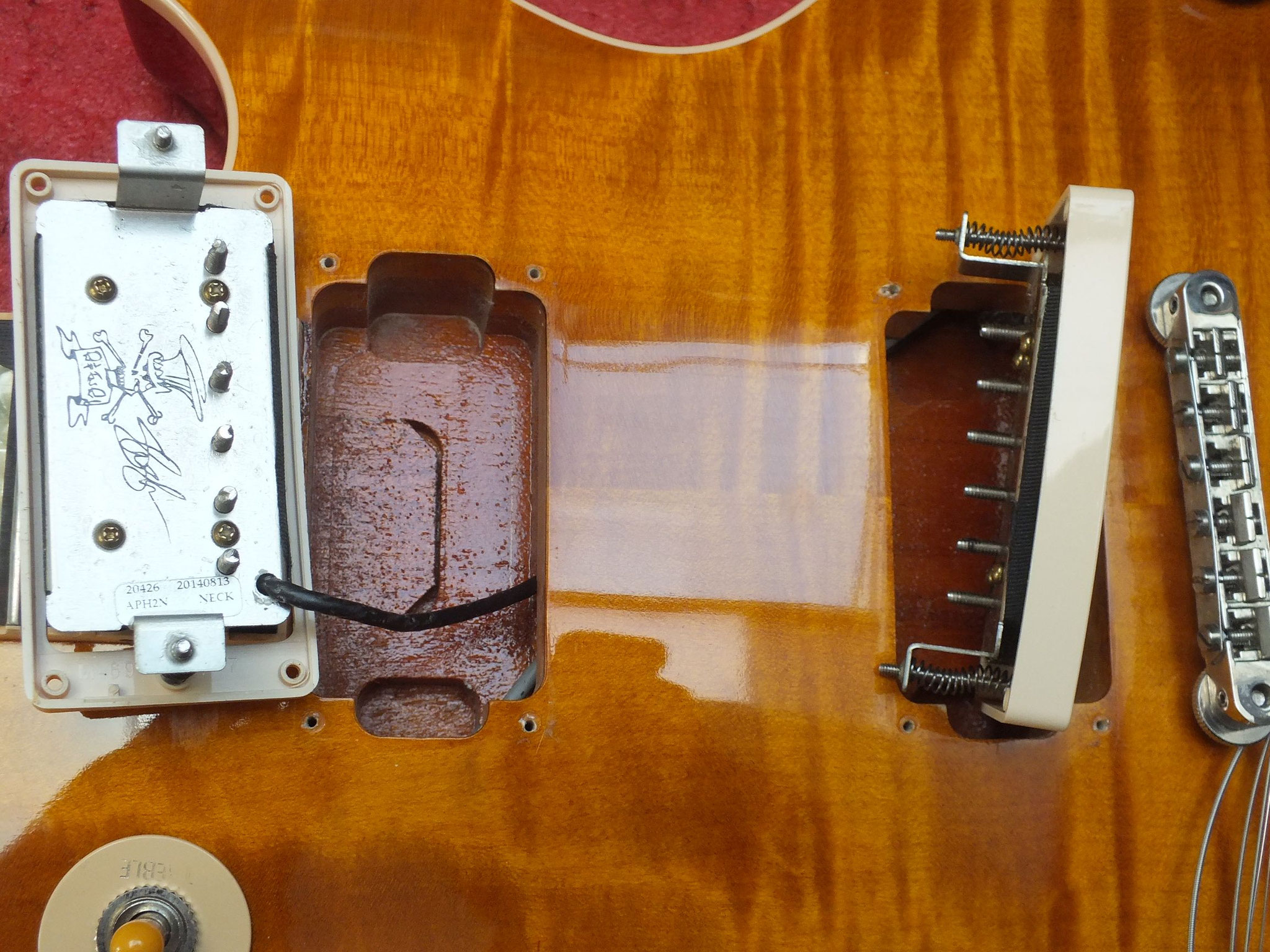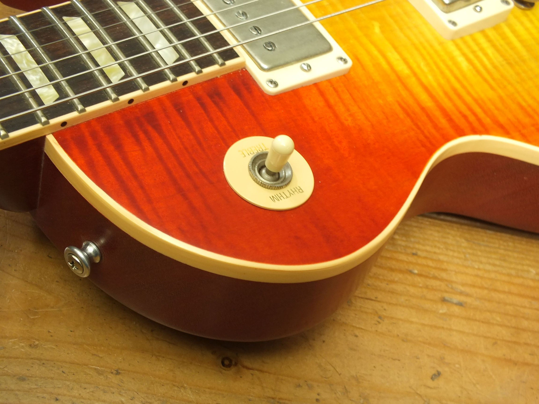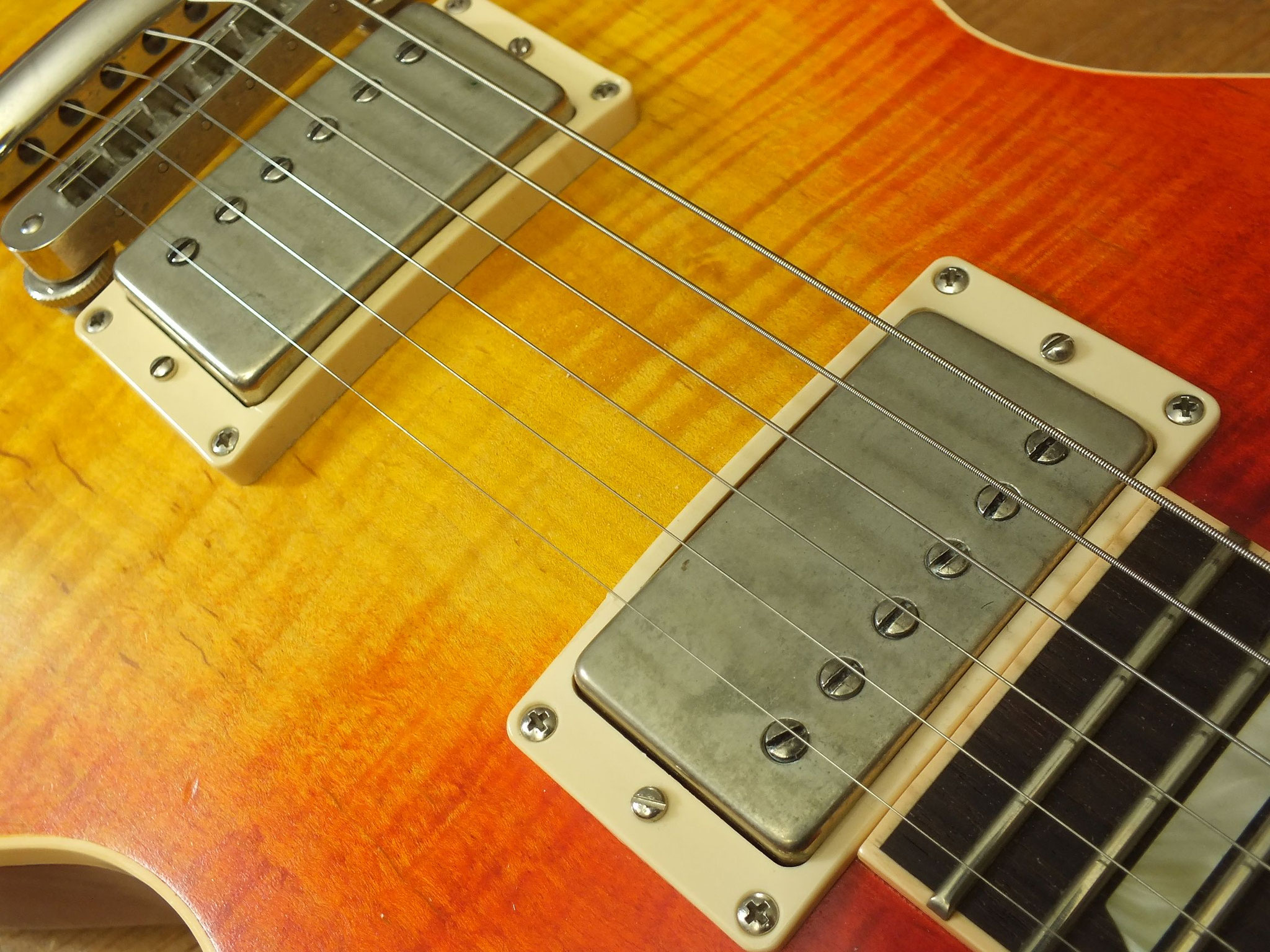 Bestückt mit zwei PAF Custombucker Pickups inklusive klassischer Verschaltung. Die Gitarre hatte zwischenzeitlich mal andere Pickups verbaut, ist jetzt aber wieder originalbestückt.