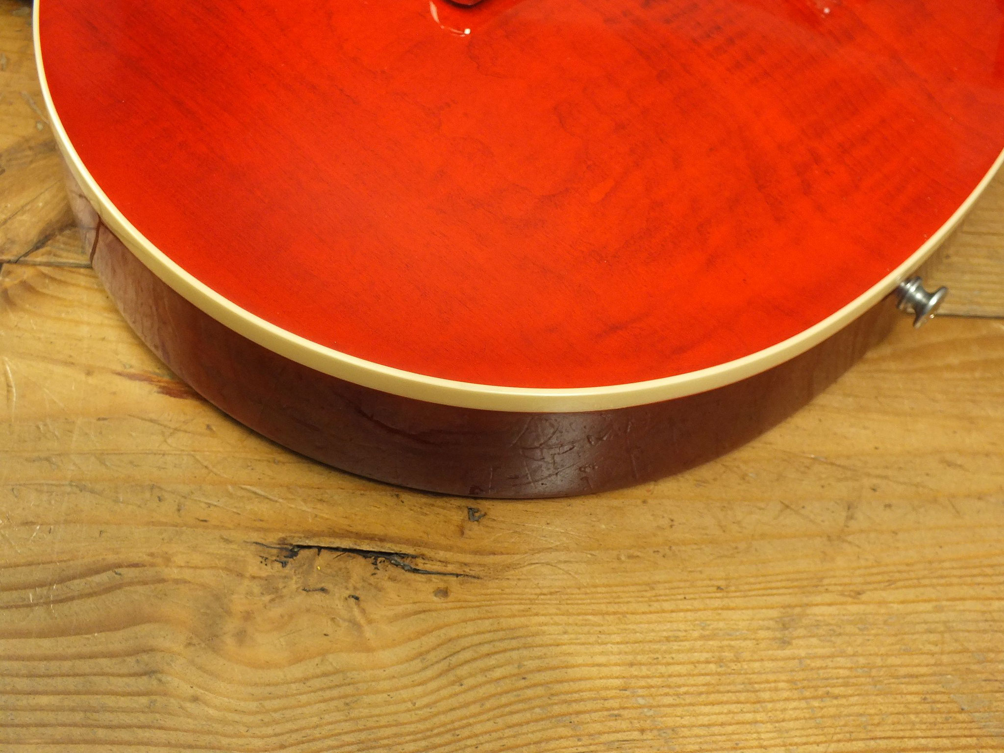 Massiver Mahagoni-Body mit markant gezeichneter "Cherry Sunburst" Ahorn-Decke.