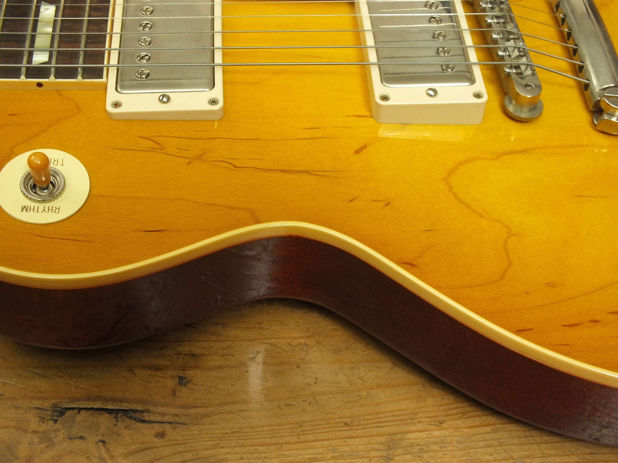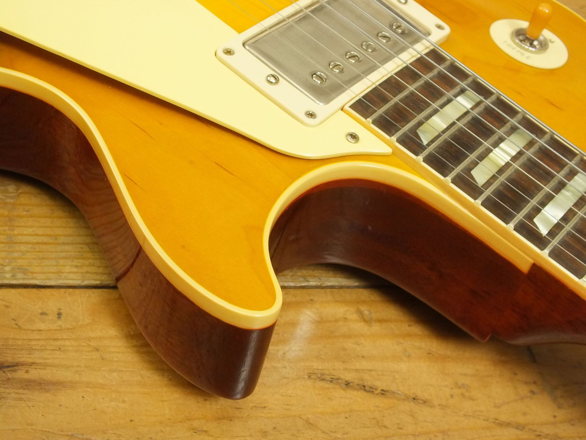 Mahagoni-Body mit gewölbter Ahorn-Decke im wunderschönen "Lemon Burst" Finish.