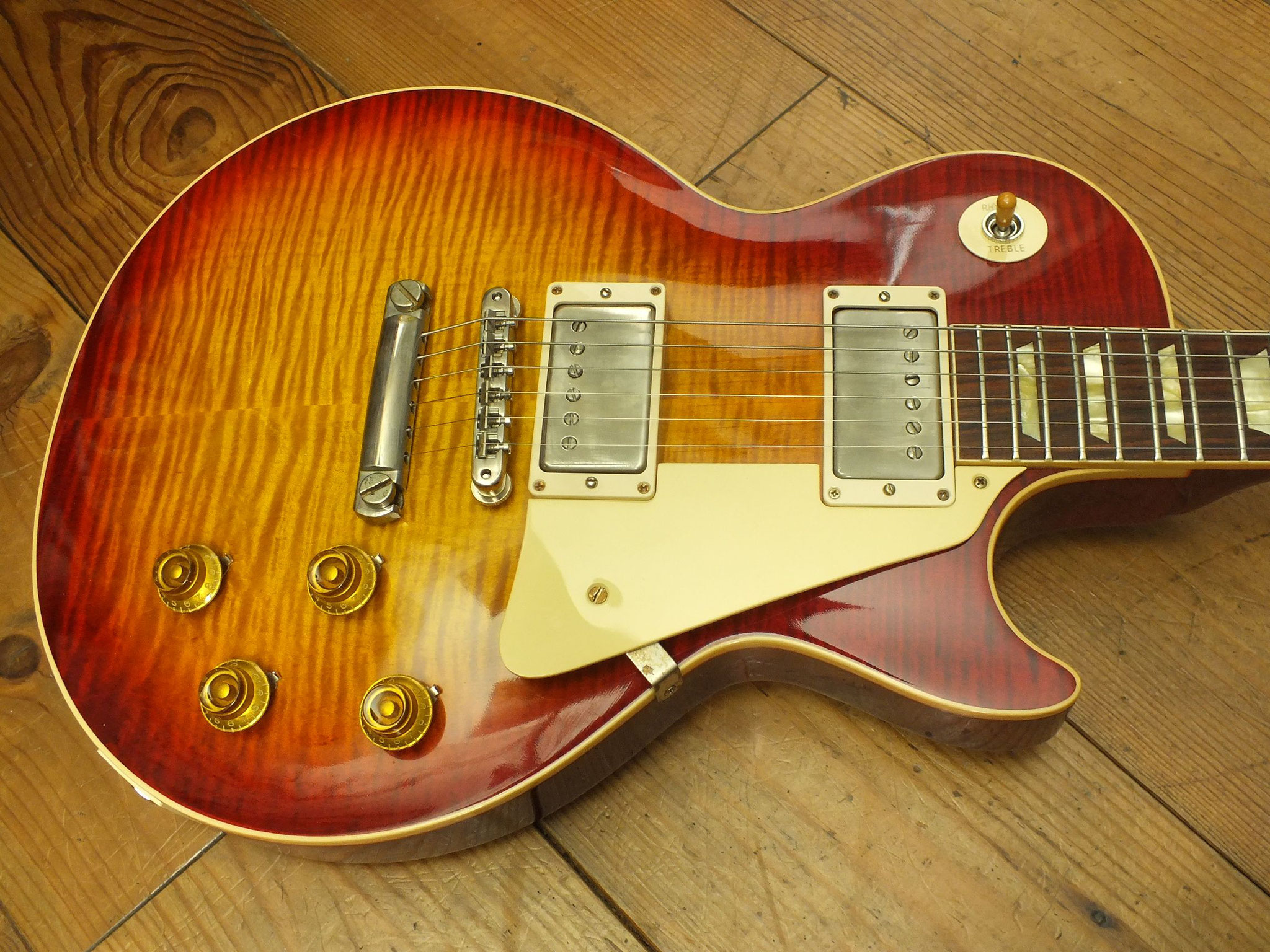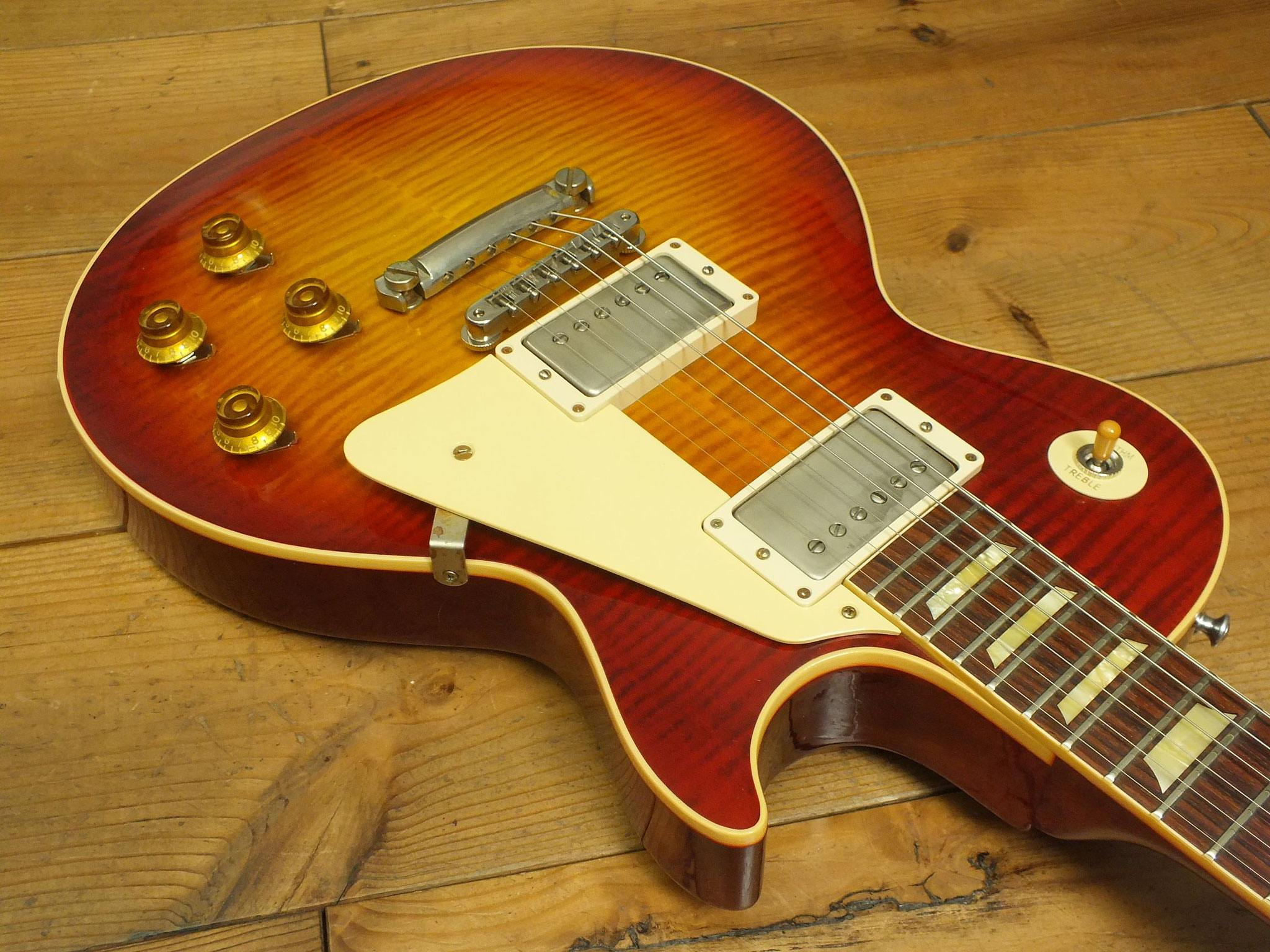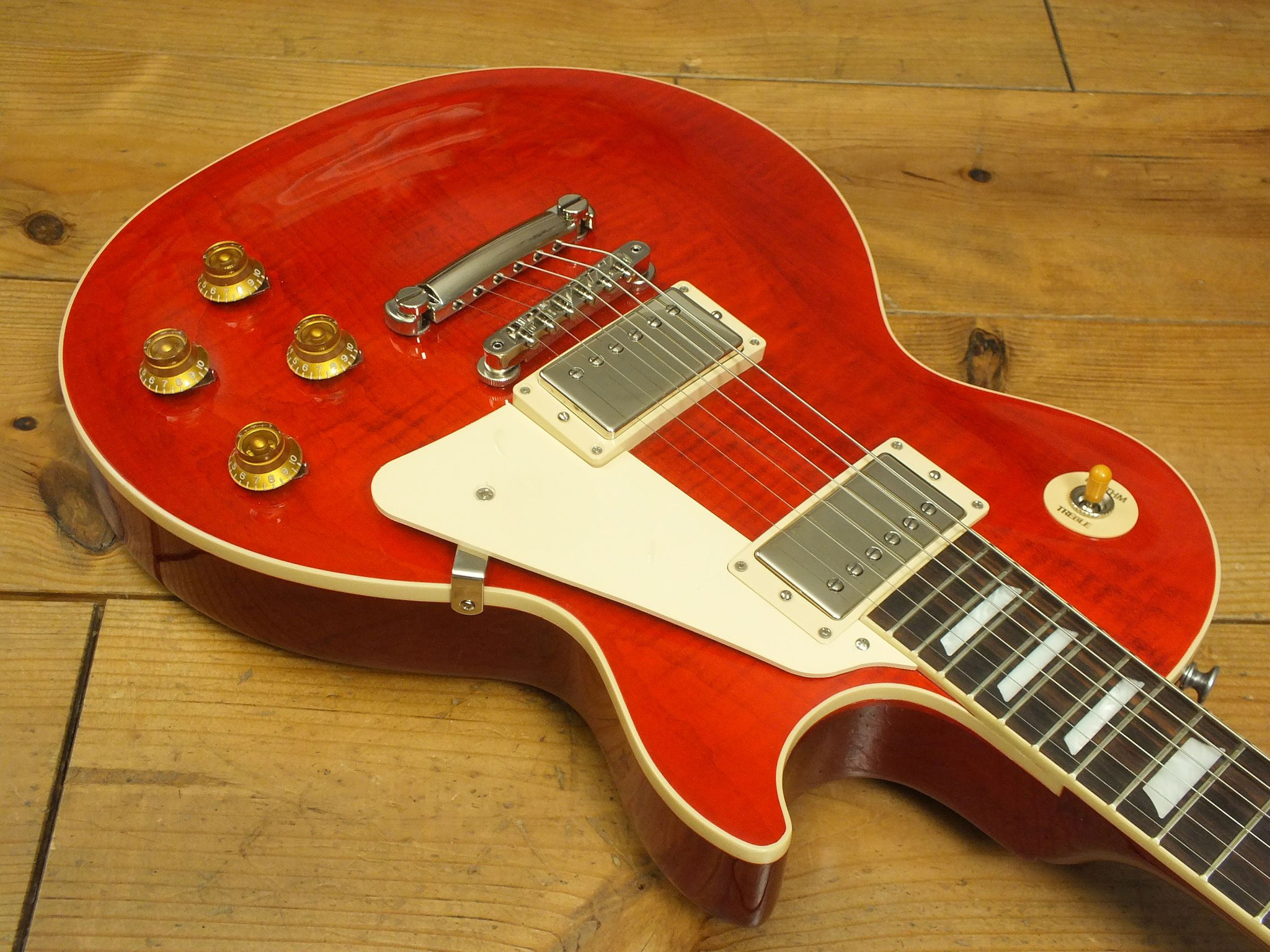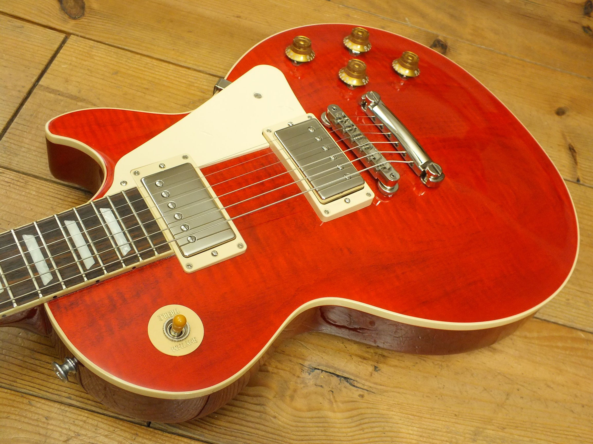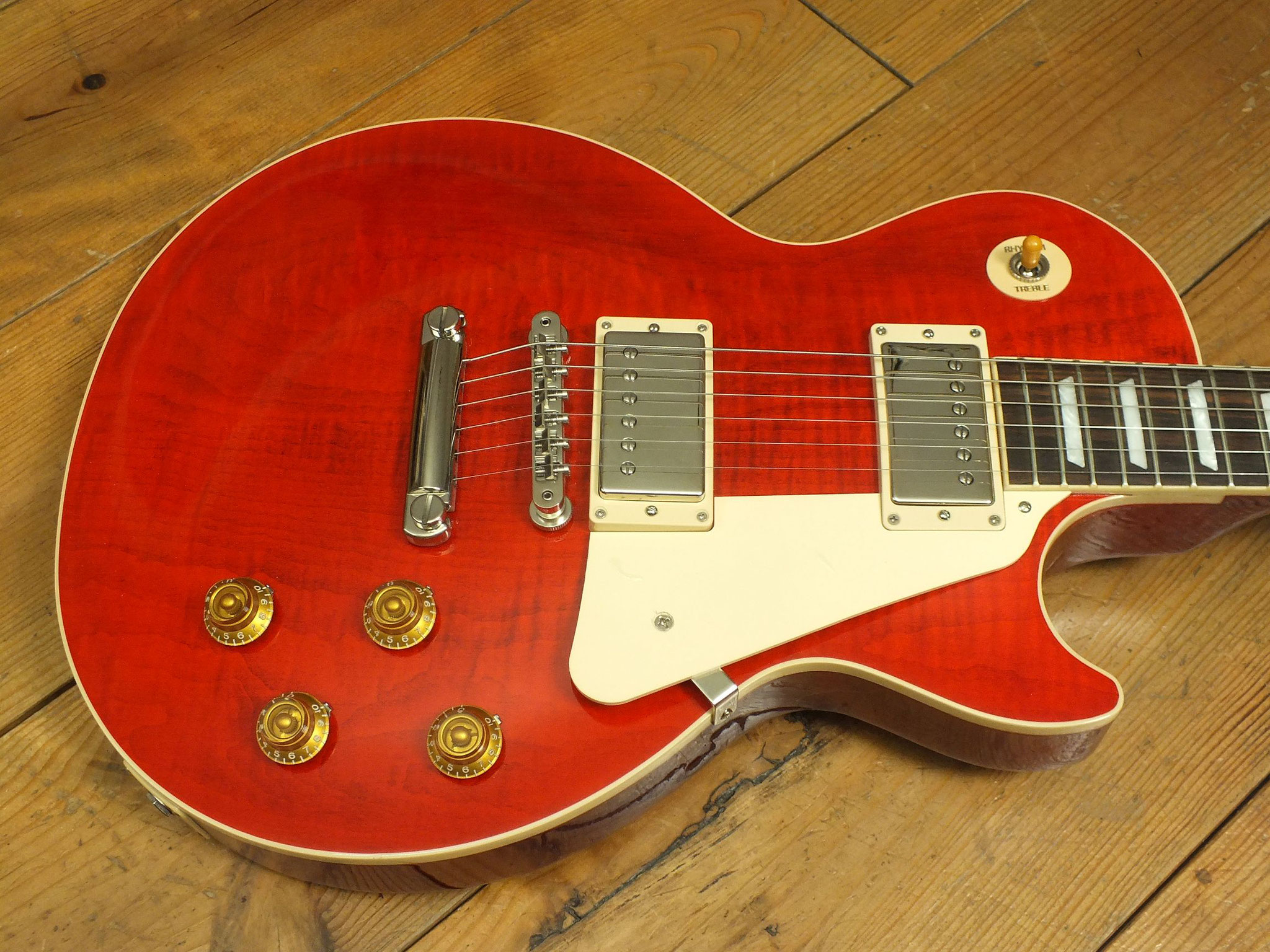 Außergewöhnlich schönes Les Paul Modell in der Sonderfarbe "60s Transparent Cherry".