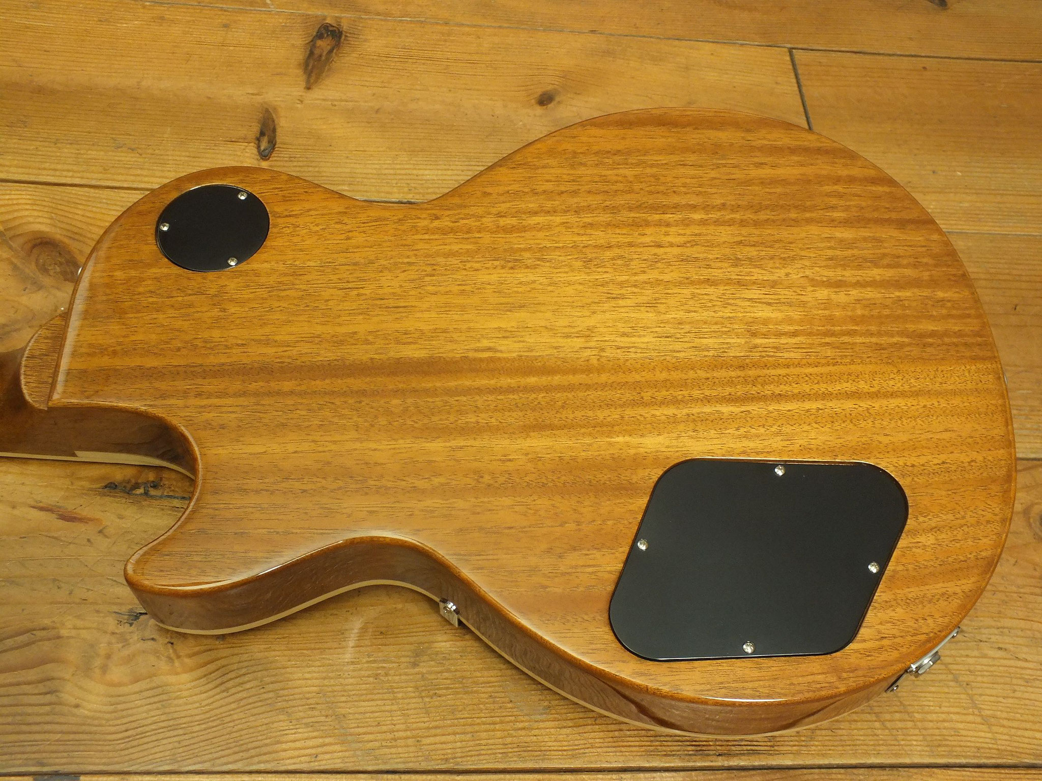 Traditionelle Bauweise mit Mahagoni-Body (ohne Gewichtsreduzierung) im klassischen "Ebony" Finish".