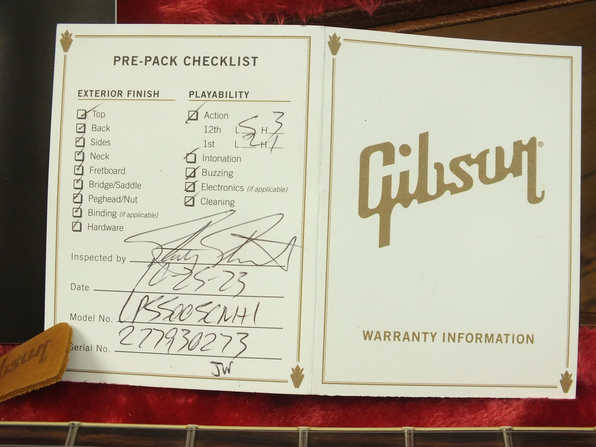 Kommt genau wie abgebildet im originalen Gibson-Case inklusive Checklist, dem kompletten sonstigen Zubehör sowie dem bisher noch nie montierten Pickguard.