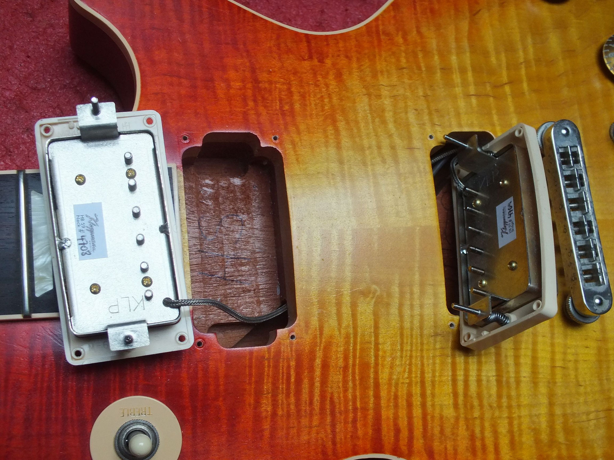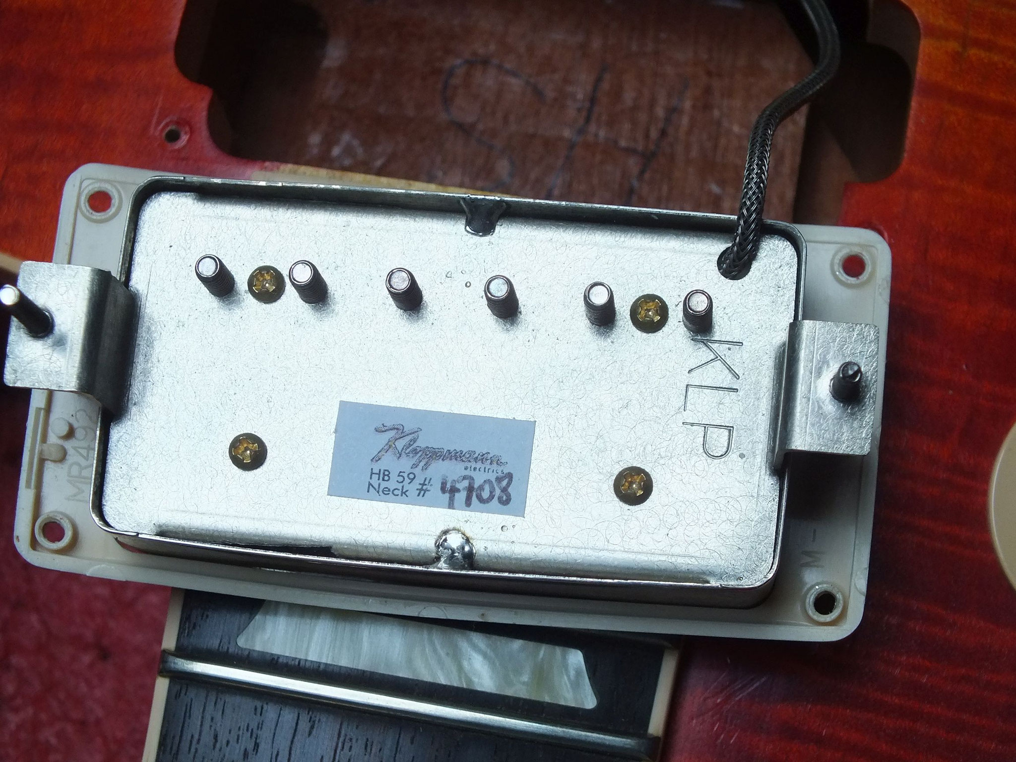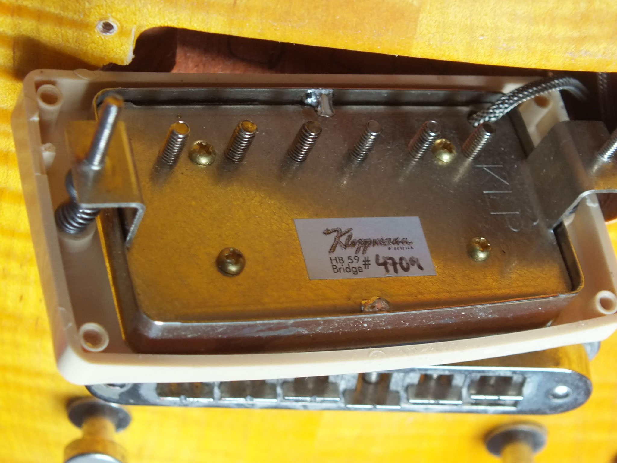 Die Gitarre wurde nachträglich aufgerüstet mit einem Kloppmann HB 59 Humbucker-Set (Neck und Bridge) - kostet alleine knapp 500,00 Euro.