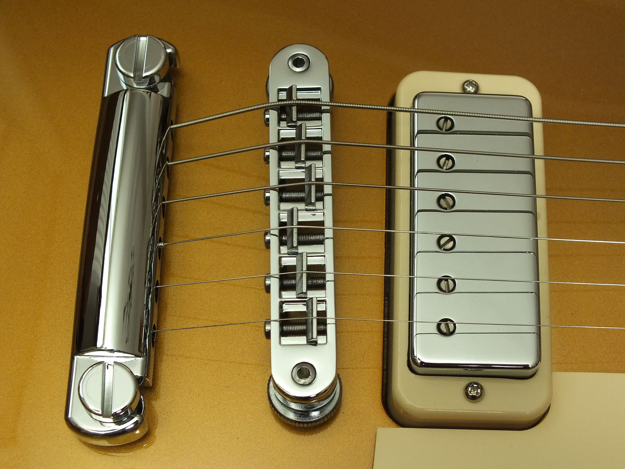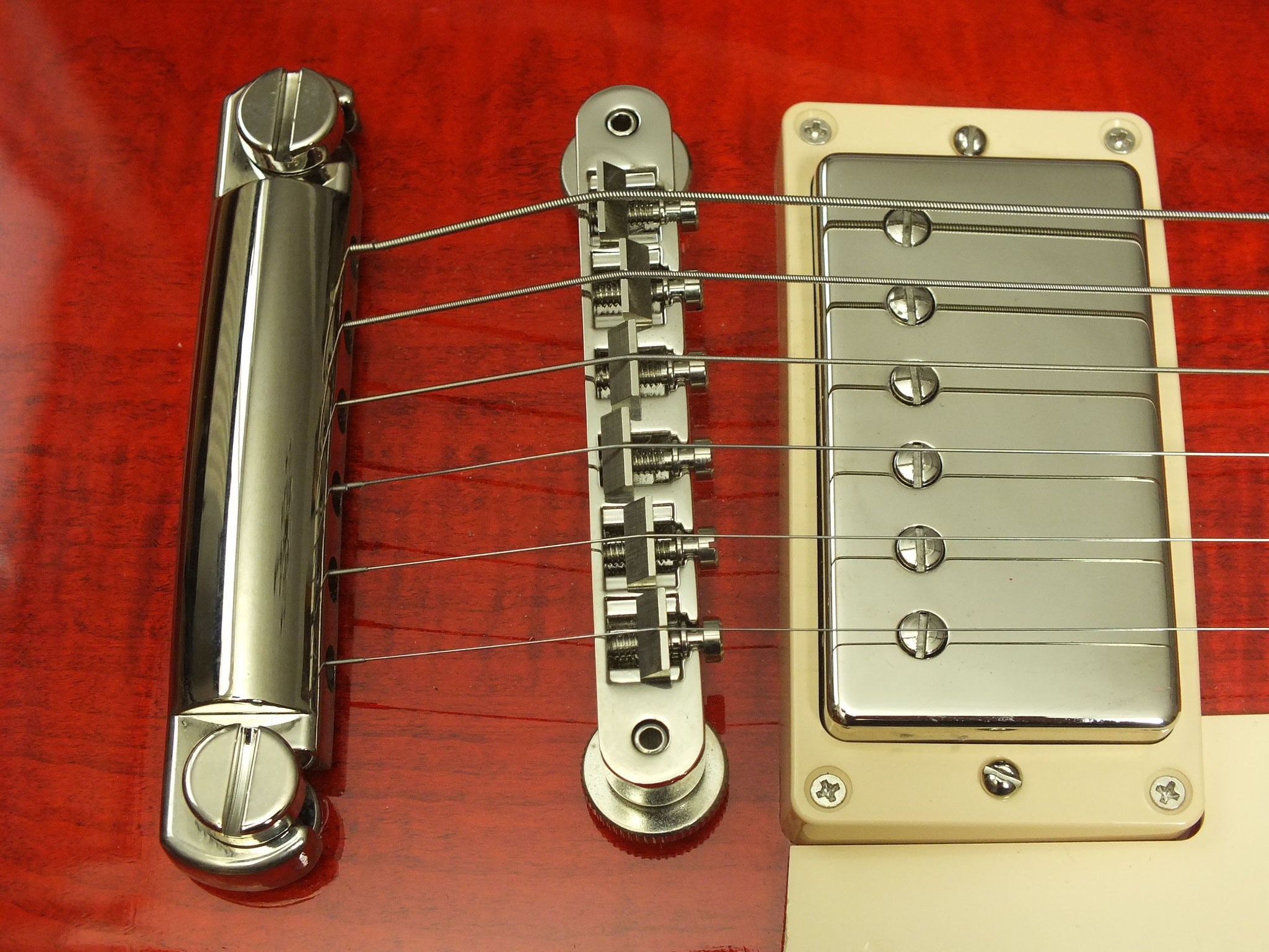 Die Gitarre wurde nachträglich mit zwei DiMarzio PAF 36th Anniversary Pickups bestückt.