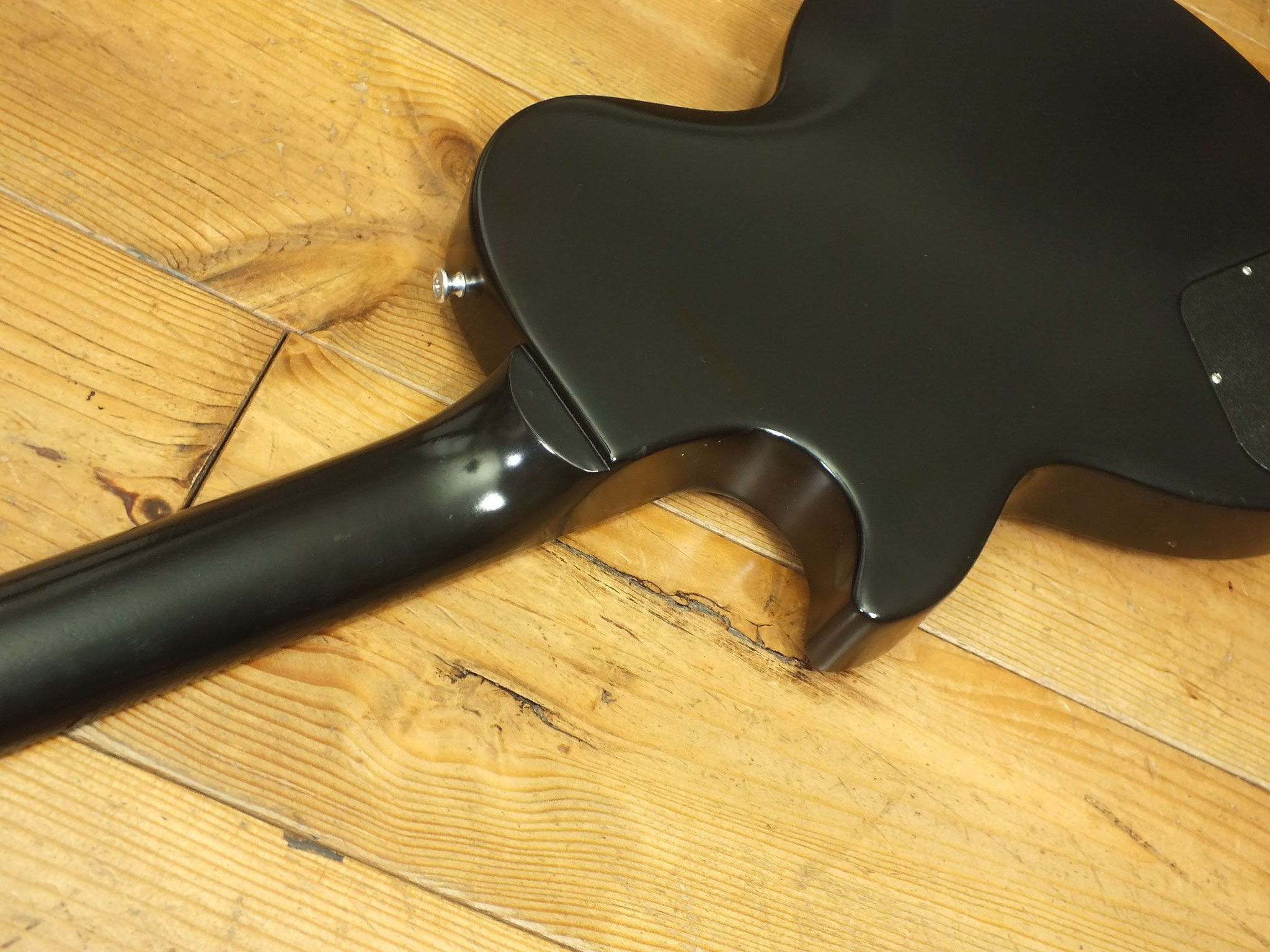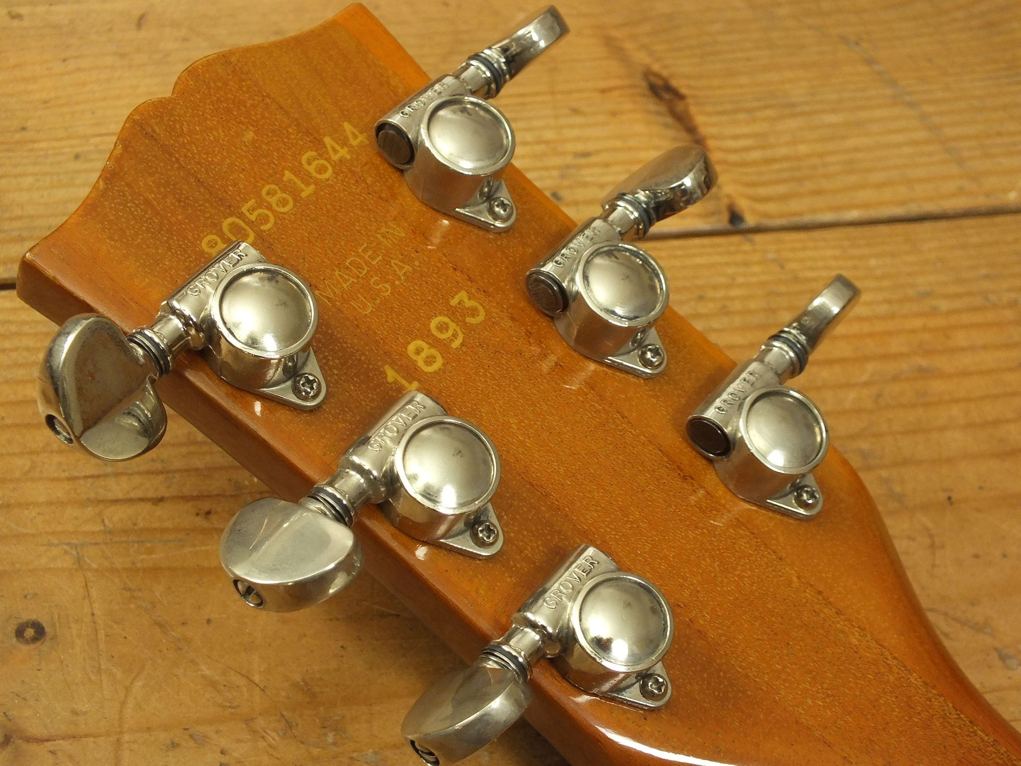 Zwischenzeitlich waren mal andere Mechaniken verbaut (erkennbar an den sechs Bohrlöchern). Mittlerweile verrichten dort wieder die originalen Grover-Tuner ihren Dienst.