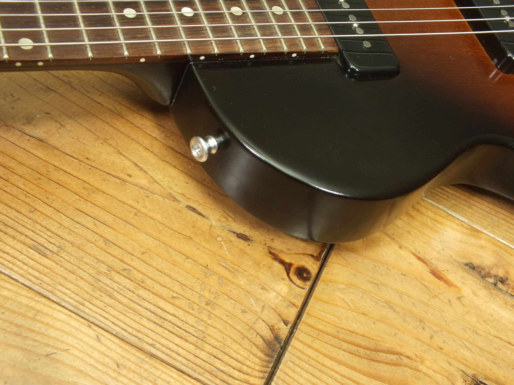 Sauberer und gepflegter Sammler-Zustand mit minimalen Gebrauchs- bzw. Spielspuren - siehe Bilder. Es gibt 2-3 kleine Lackrisse, an einem Poti-Knopf ist ein winziges Stück Kunststoff am Rand abgebrochen, und die Bünde haben 2-3 minimale Spielspuren (auf den Detailbildern gut erkennbar).