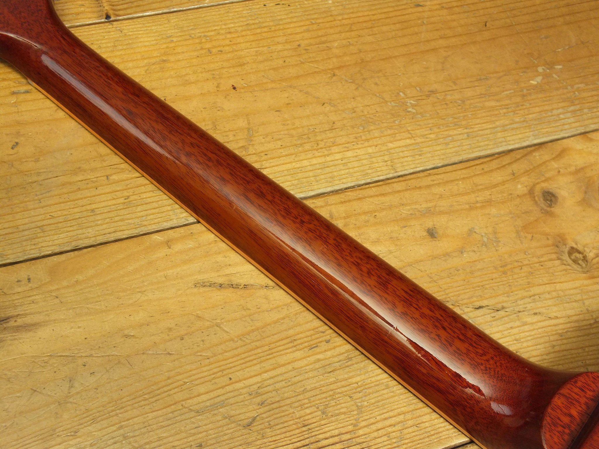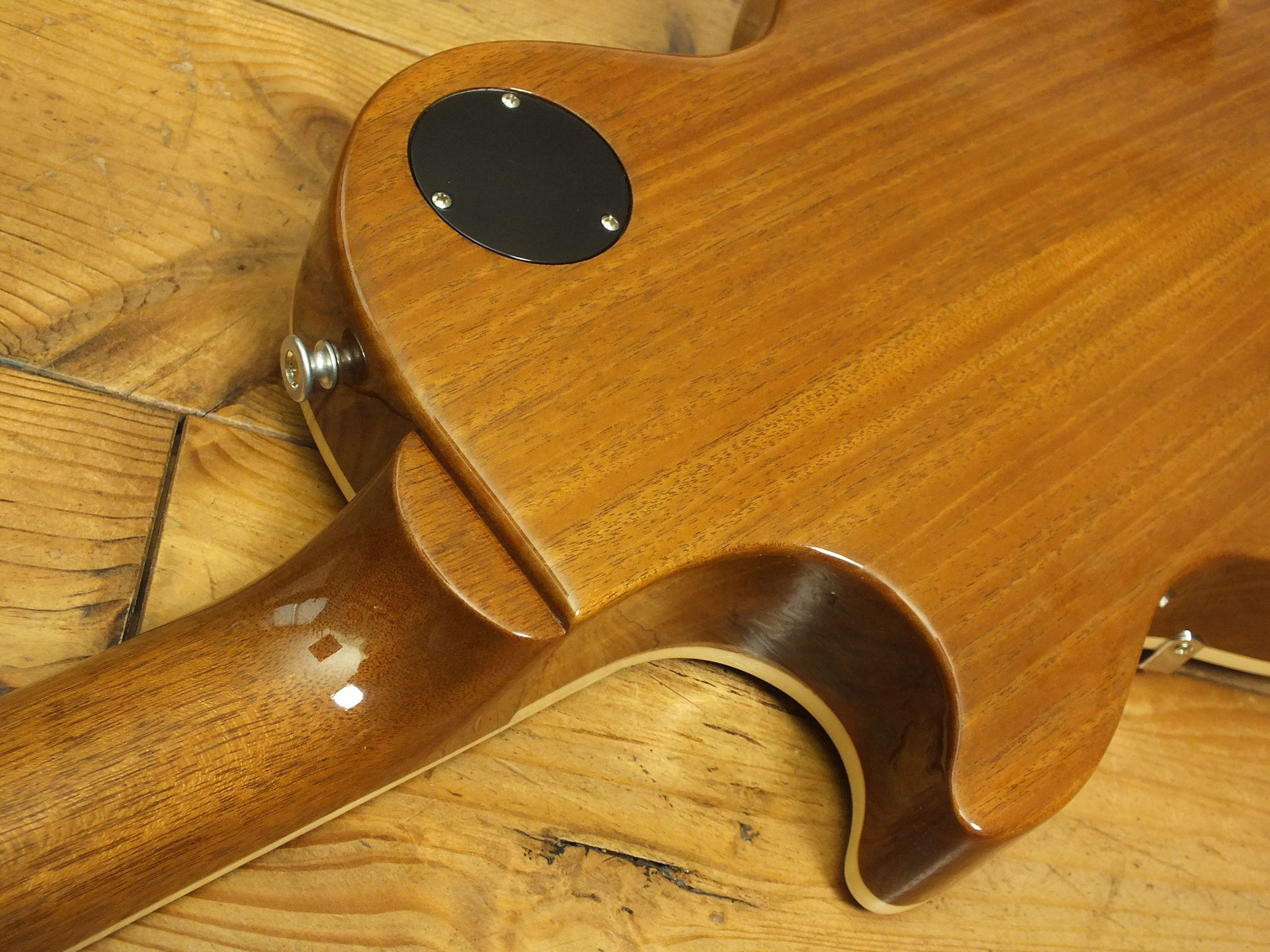 "Long Tenon" Mahagoni-Hals mit 50ies Profil, Palisader-Griffbrett und 22 Bünden.