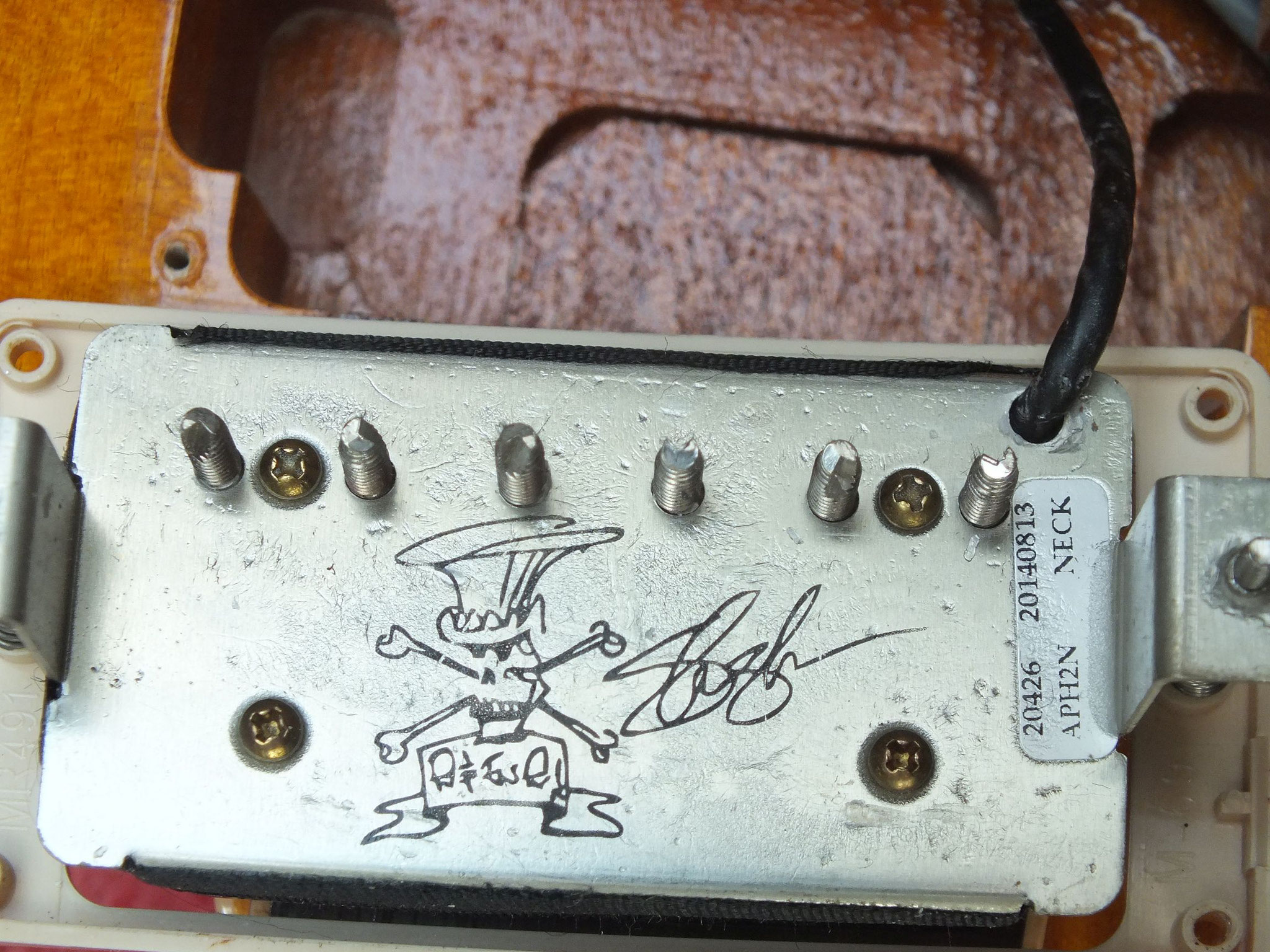 Hier ein Exemplar, das zudem von Zakk Wylde auf der Kopfplattenrückseite sowie auf dem beiliegenden Zertifikat handsigniert wurde - mit zwei unterschiedlichen Datumsangaben. Der Vorbesitzer ist ein persönlicher Bekannter des Musikers und hat ihn mehrmals getroffen.