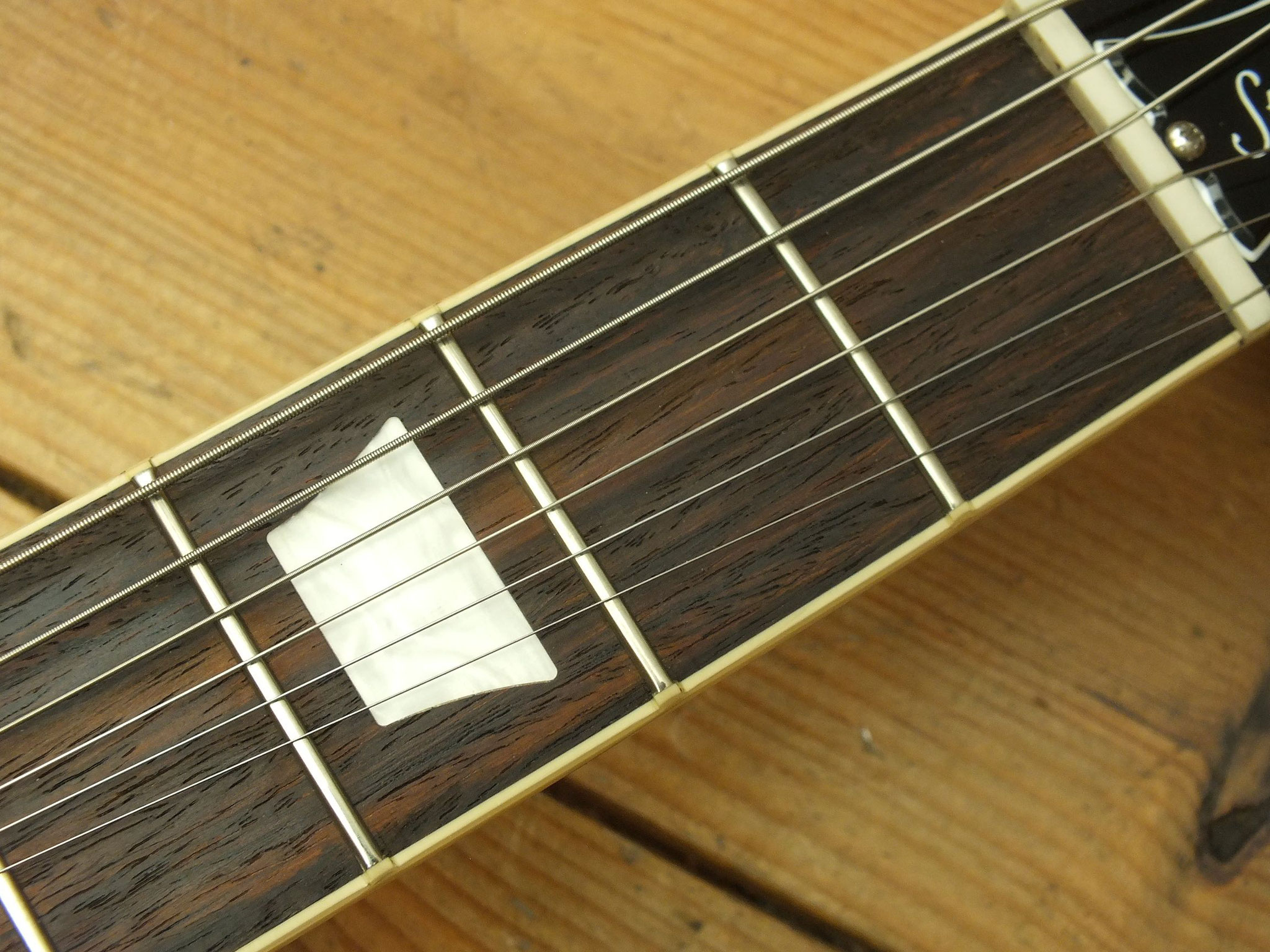 Mahagoni-Hals mit Palisander-Griffbrett, 20 Medium-Bünden und den charakteristischen Parallelogram Inlays.