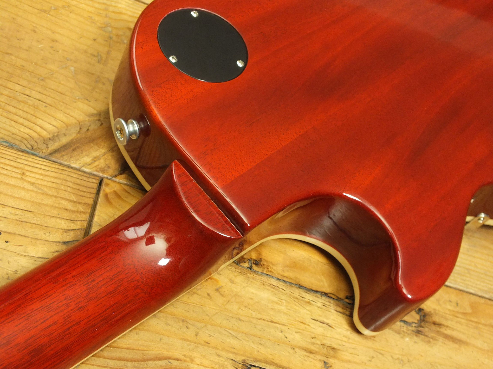Mahagoni-Body mit "AAA Maple Top" im markenten "Tomato Soup Burst" Finish.