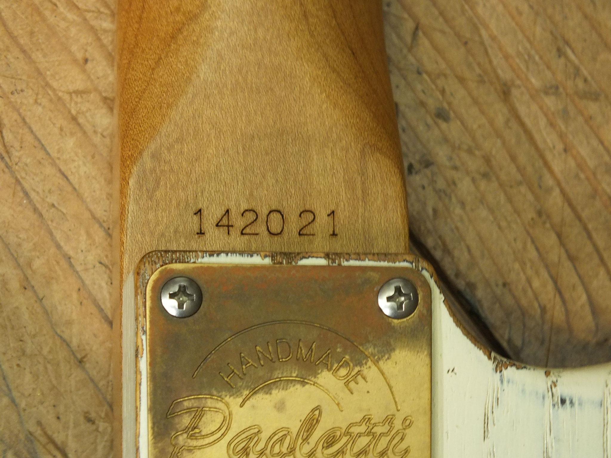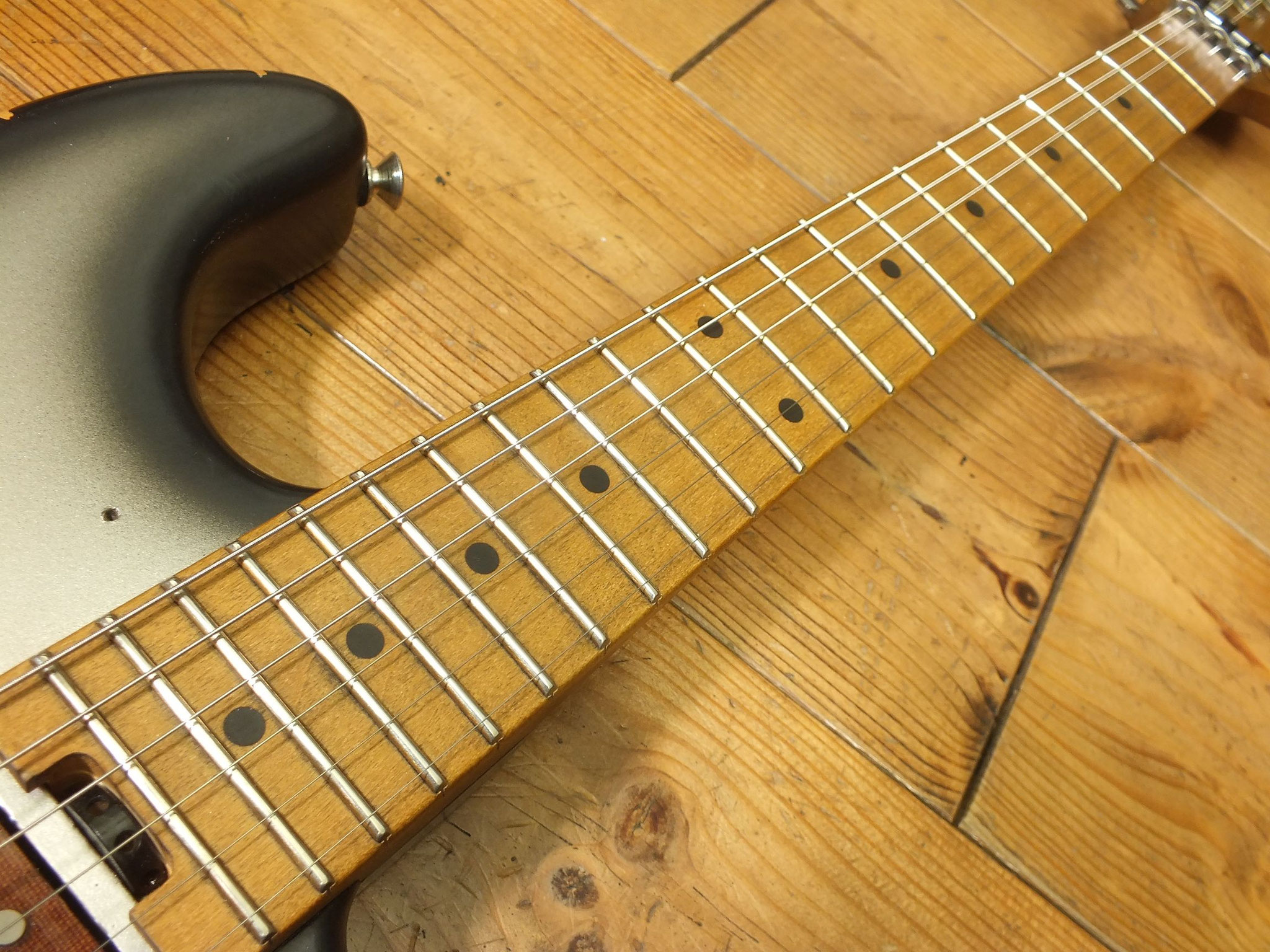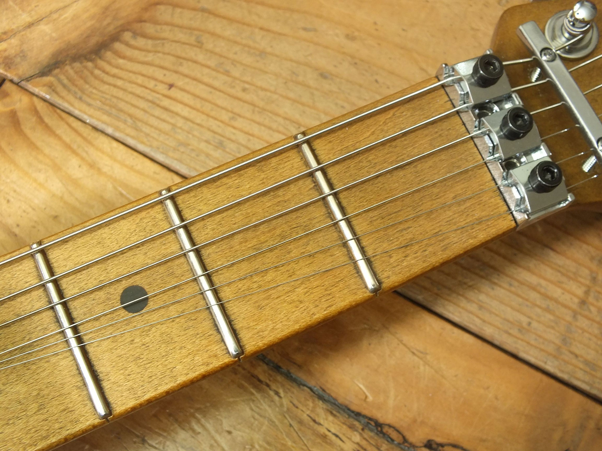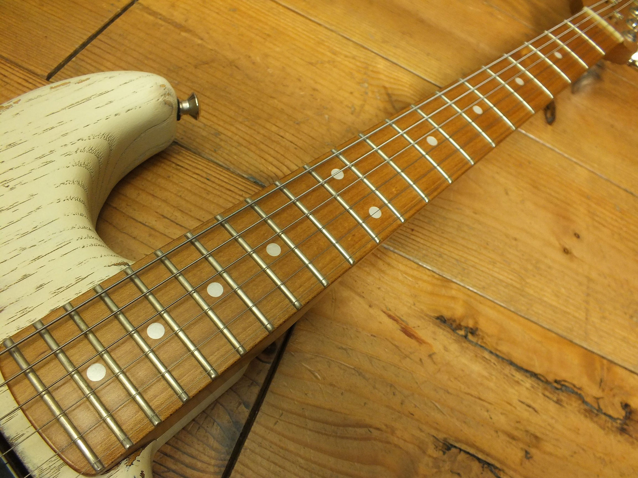 Handgefertigter Ahorn-Hals (mittleres "C Profil") mit Palisander-Griffbrett (7,25" Radius), 21 Medium-Bünden und Vintage Tuners.