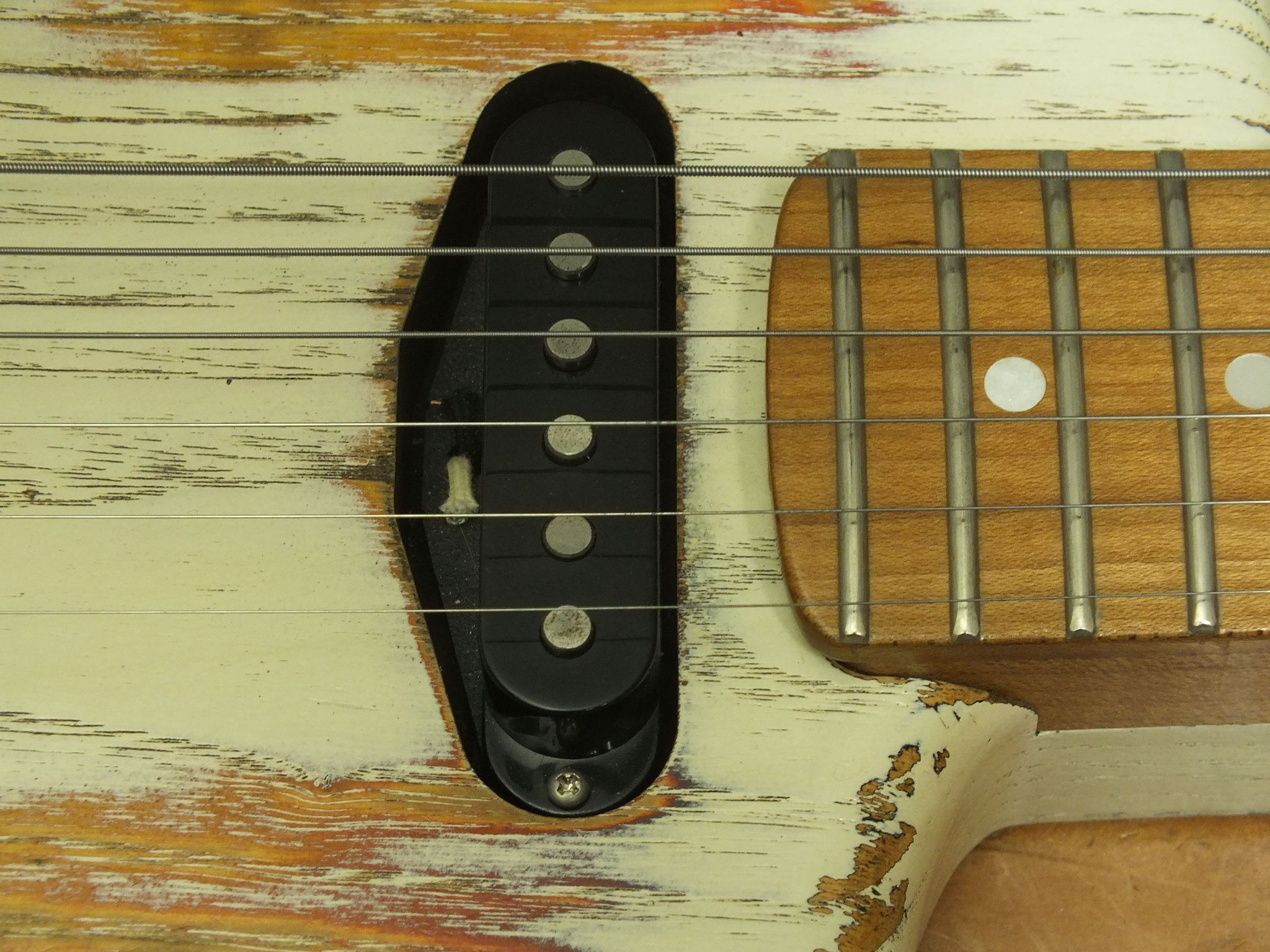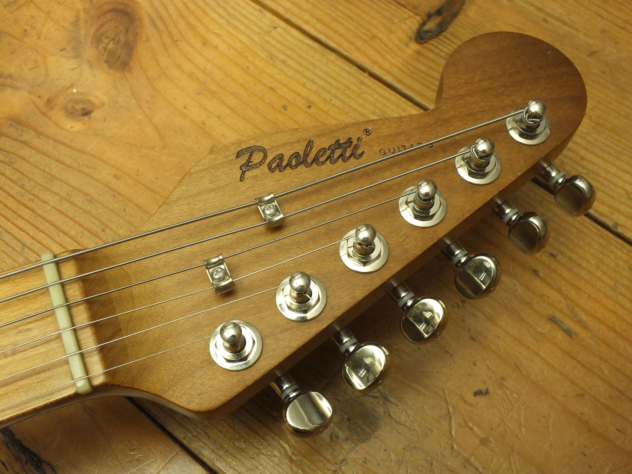 Pickup-Bestückung: Paoletti 60's 7,5 K Alnico 5 Singlecoil-Pickup am Hals. Paoletti Rock II 8,1 K Alnico 5 Humbucker-Pickup in der Bridge-Position - per mit Push/Push Coil Split zum Singlecoil schaltbar.