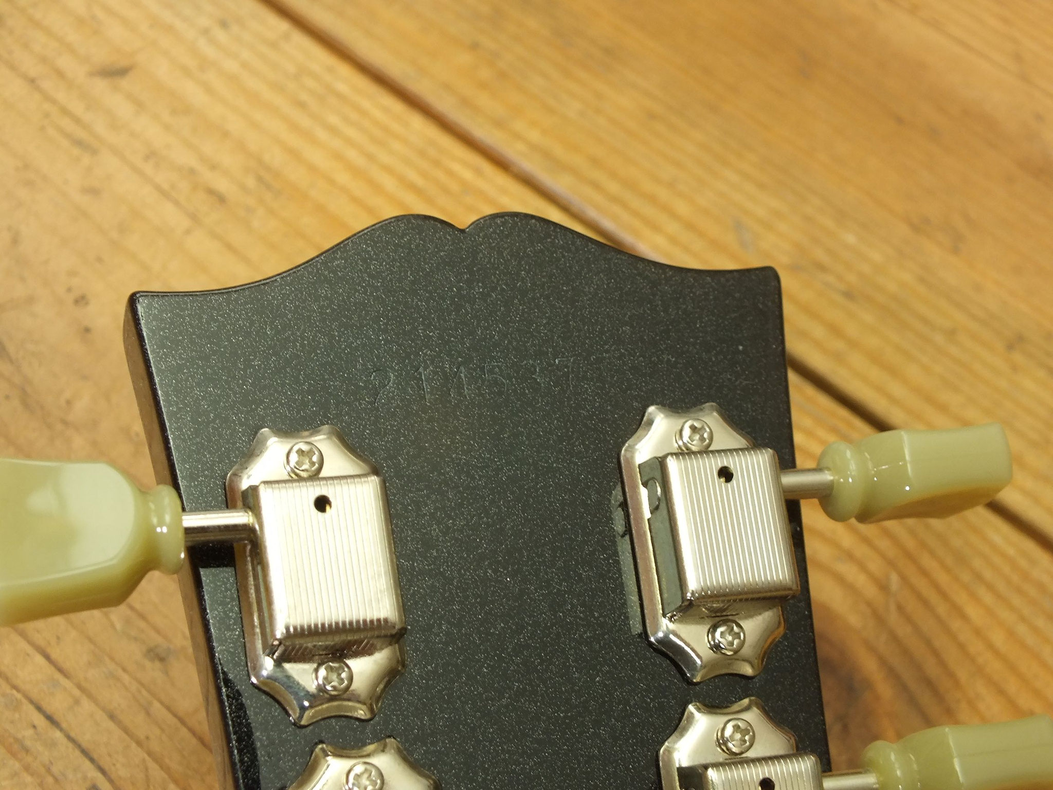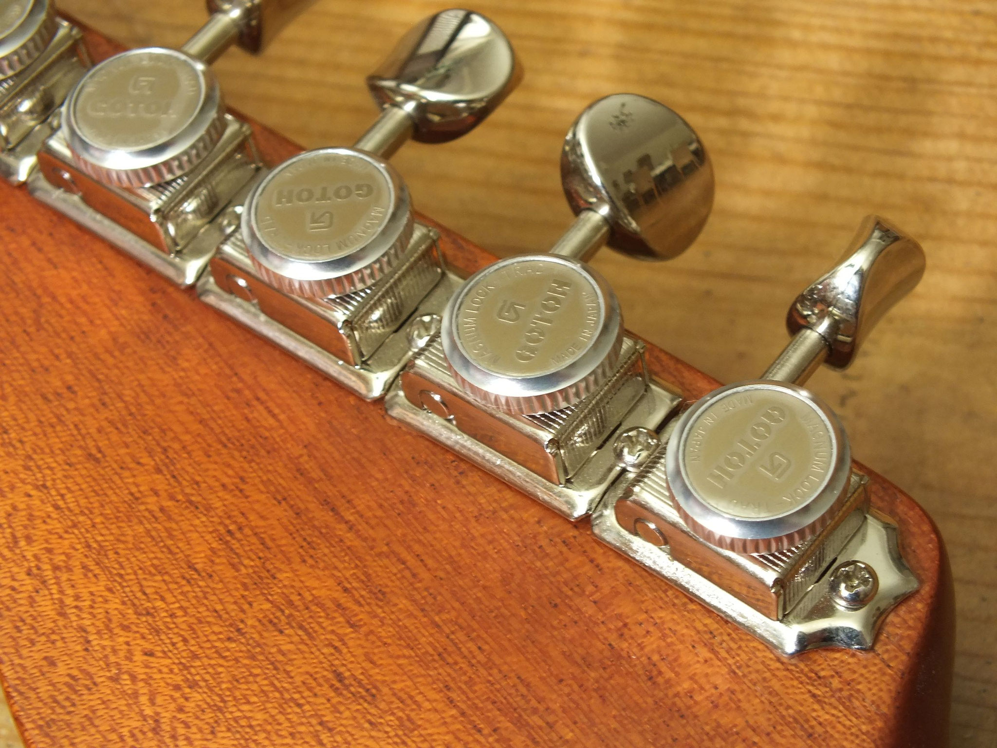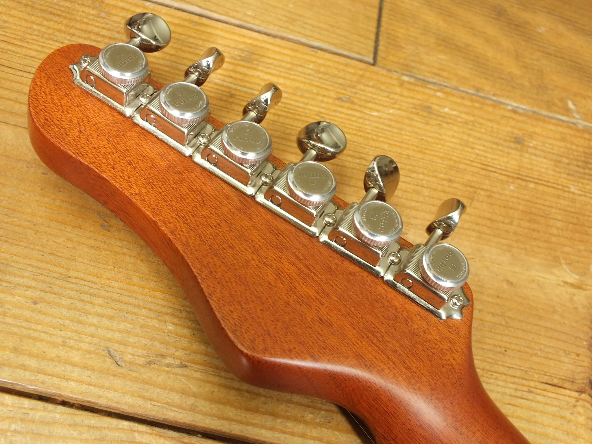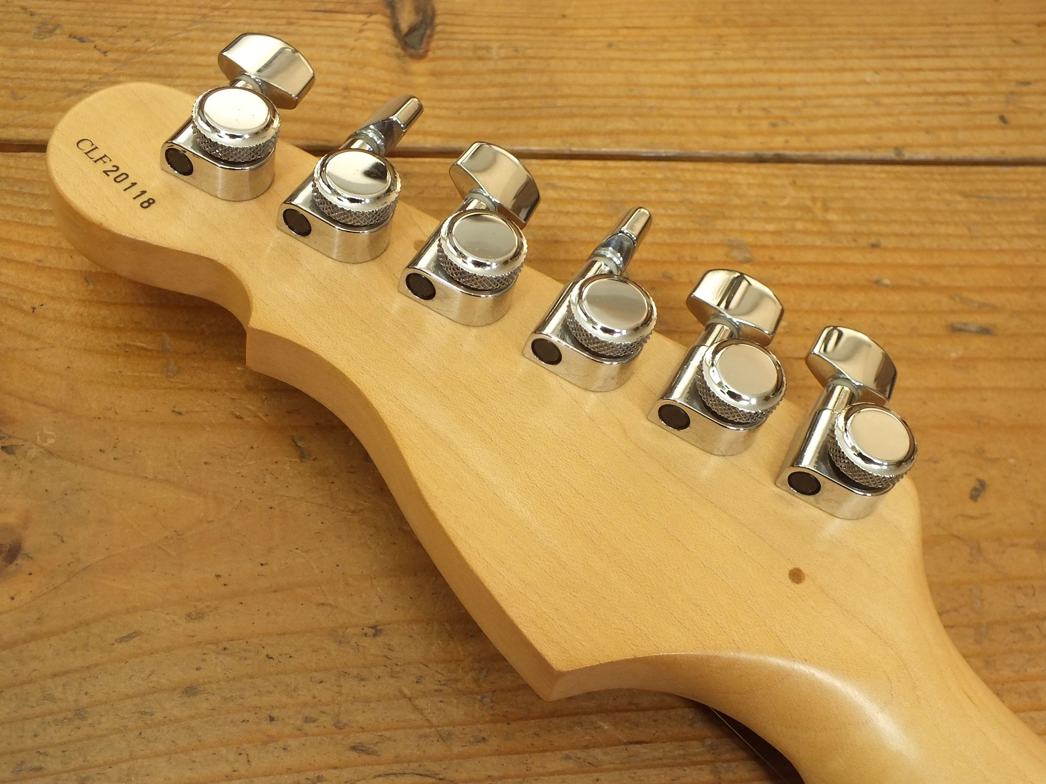 Die originalen Mechaniken wurden gegen Schaller F-Series Locking Tuners ausgetauscht für optimale Stimmstabilität und schnellen Saitenwechsel.