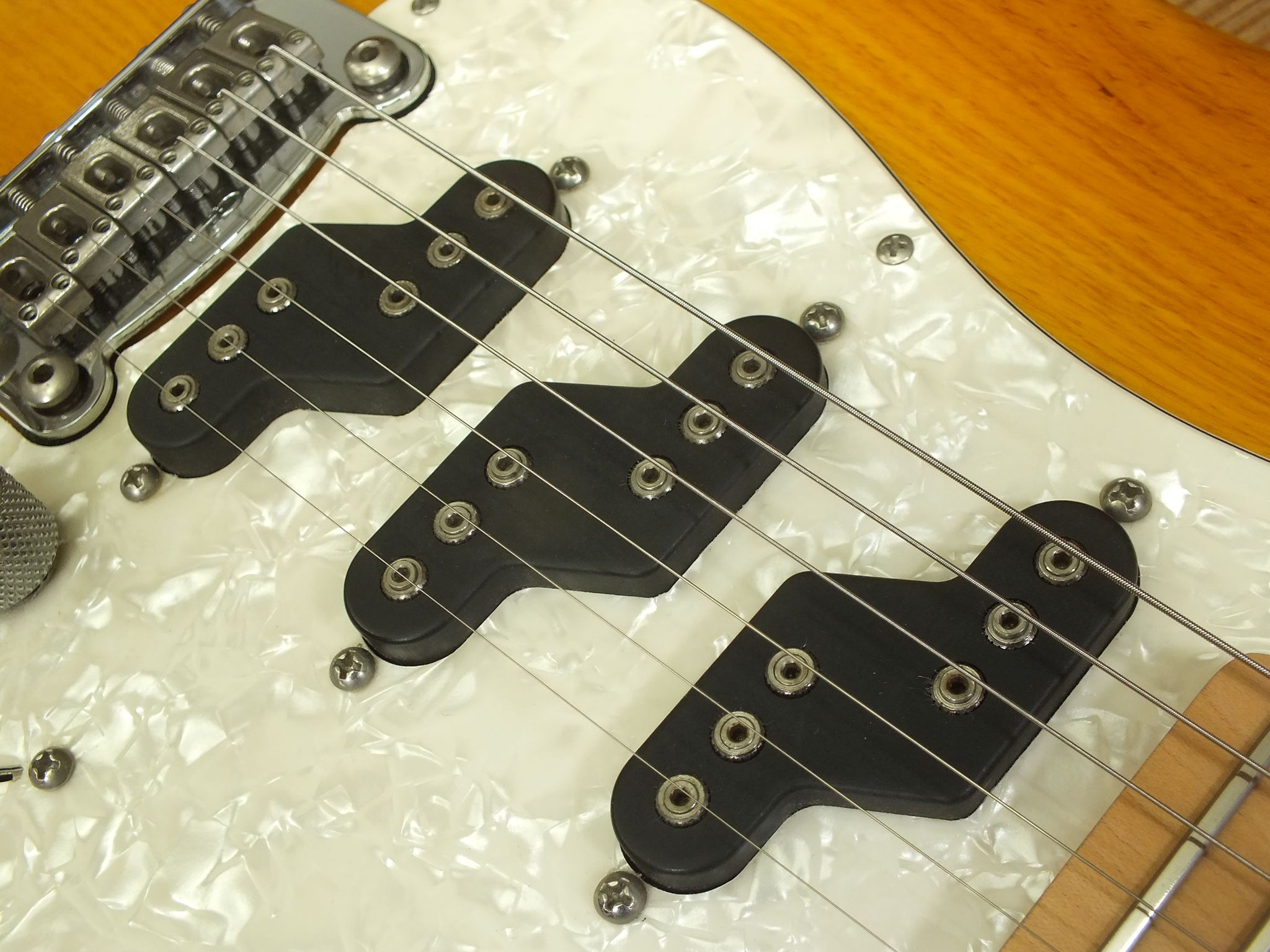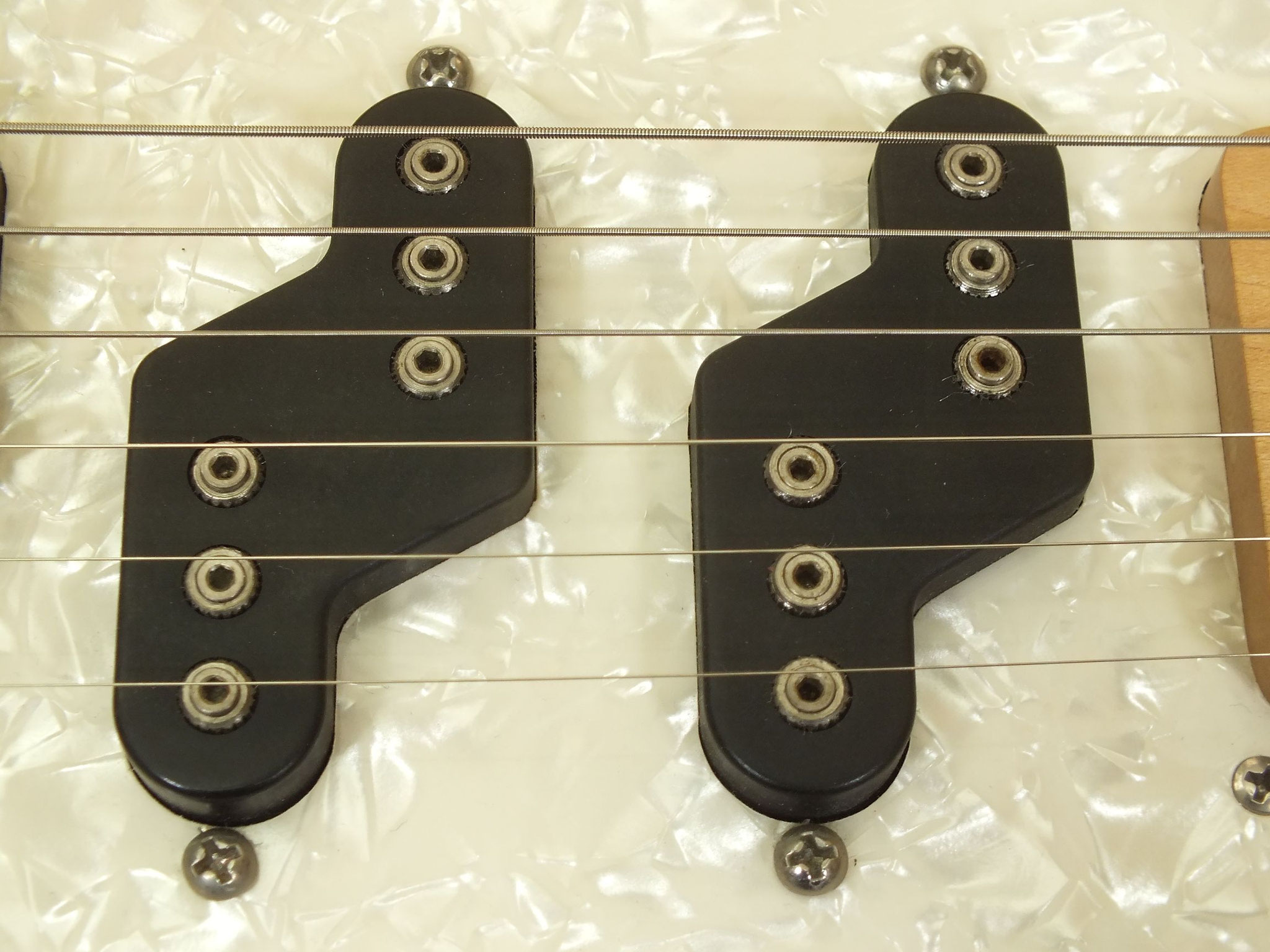 Bestückt mit G&L MFD Z-Coil Pickups, der letzten Entwicklung von Leo Fender. Es handelt sich um Singlecoils, die allerdings jeweils aus zwei versetzt angeordneten Spulen bestehen. Dadurch wird Brummen weitgehend unterdrückt und sie klingen etwas kräftiger als herkömmliche Einspuler.