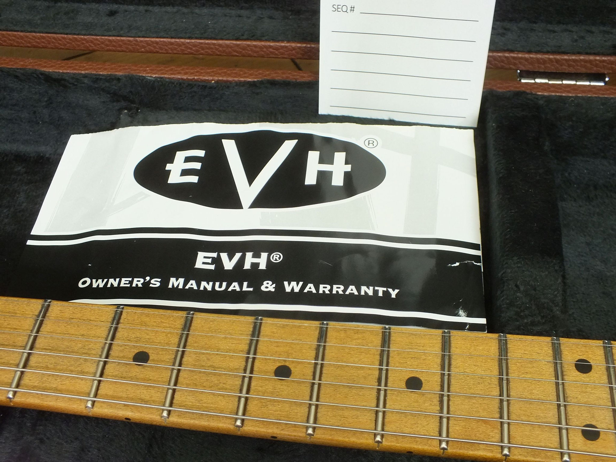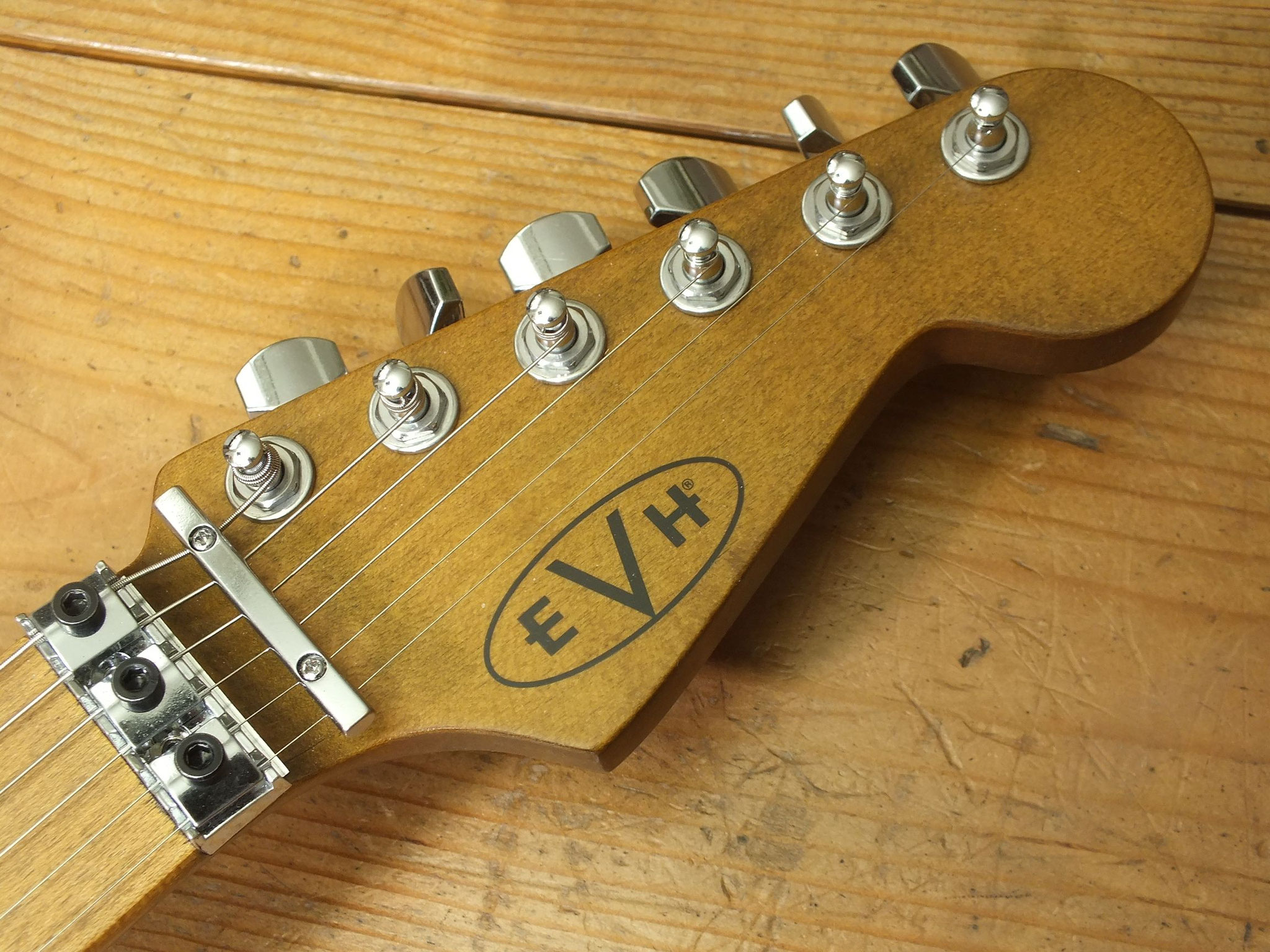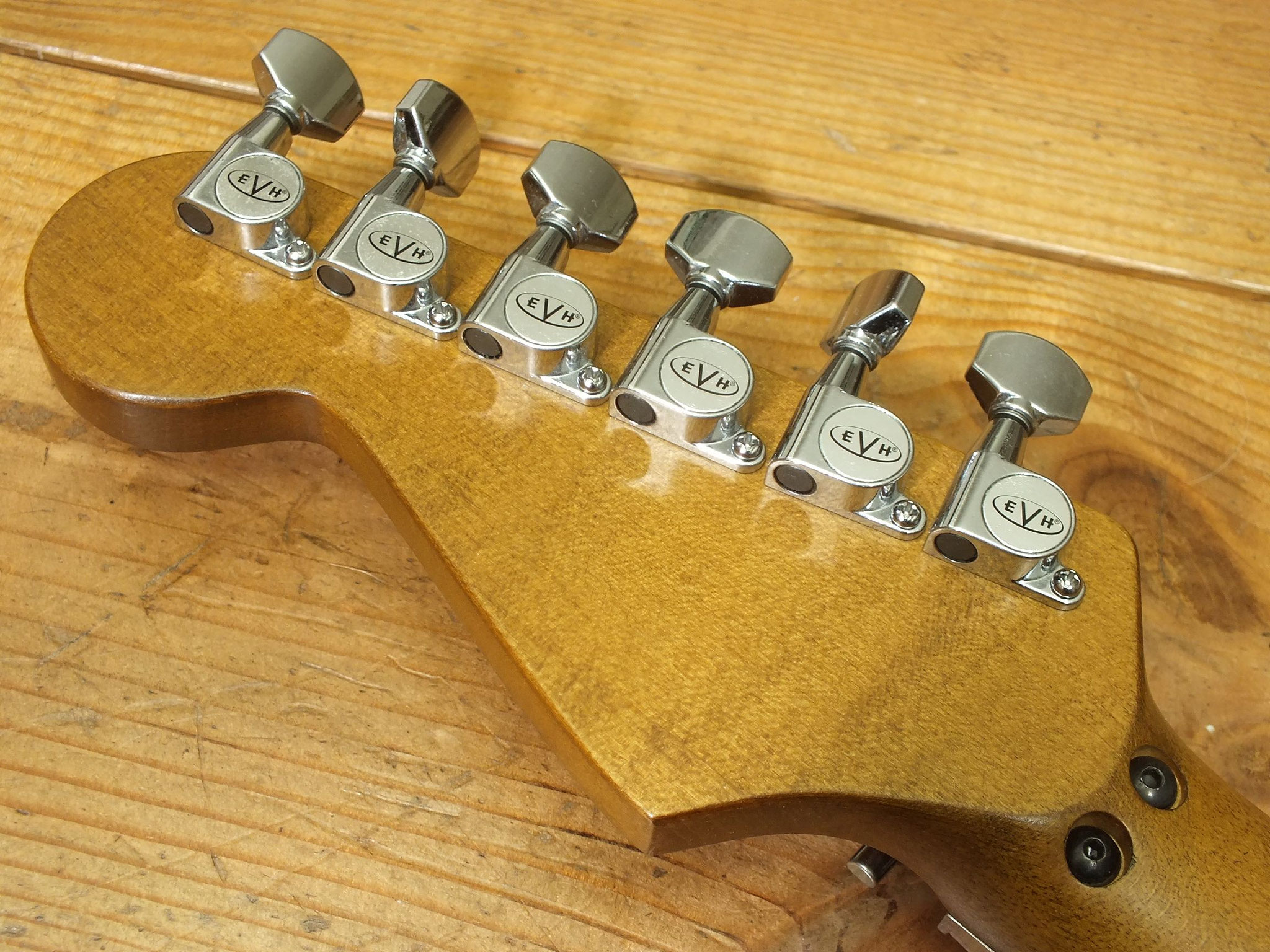 Ahorn-Hals ("EVH Modified C Backshape" Profil) im Oil Finish mit Ahorn-Griffbrett (12"-16" Compound-Radius), 22 Jumbo-Bünden und "EVH Branded" Gotoh Mechaniken.
