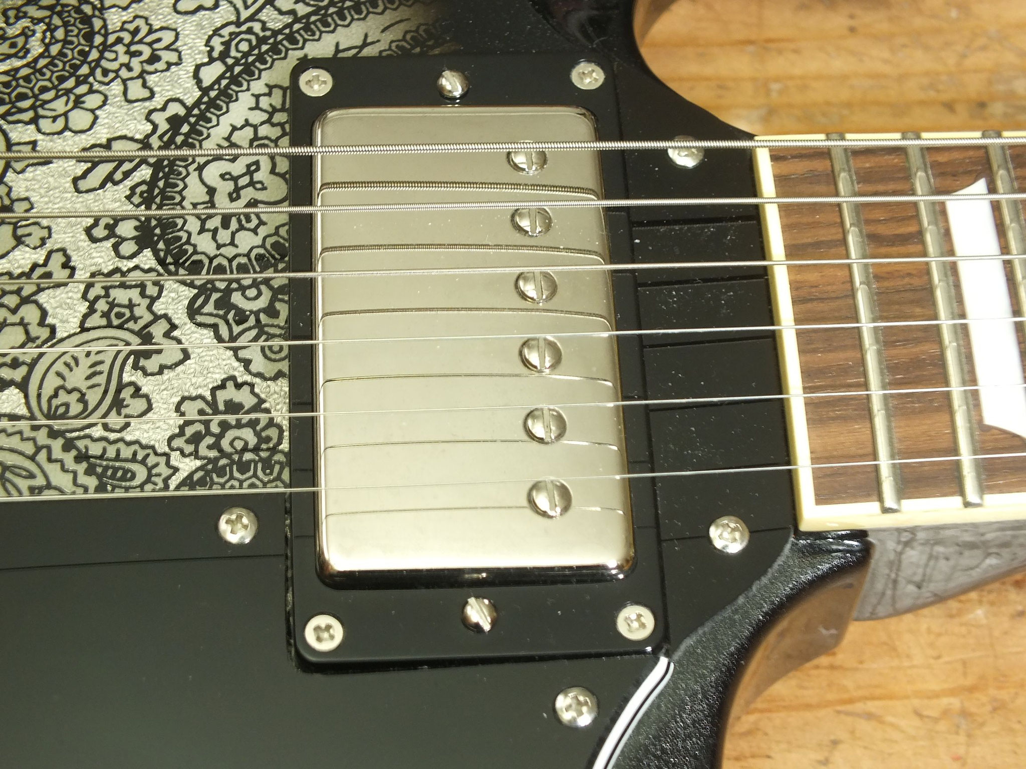 Die Tonabnehmer wurden mal vom Vorbesitzer gewechselt. Aktuelle Pickup-Bestückung Seymour Duncan APH-1N (Hals), APH1-B (Bridge).
