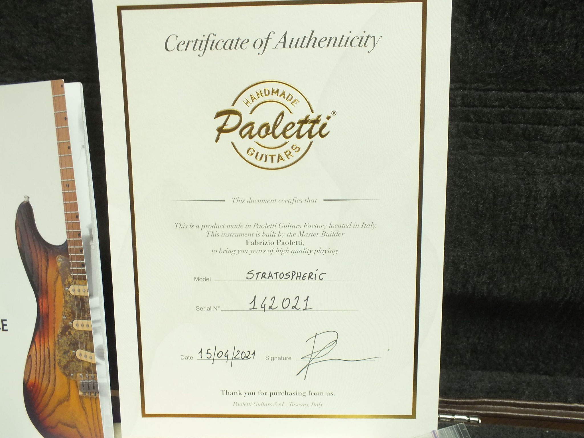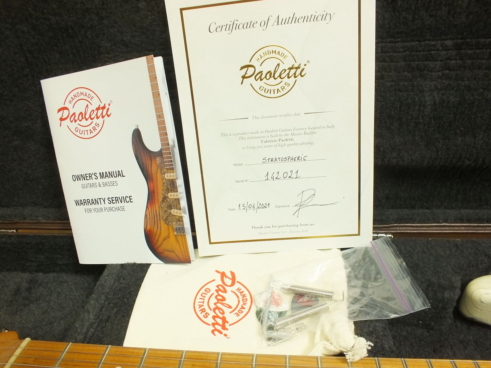 Kommt genau wie abgebildet im Paoletti-Rechteckkoffer, inklusive Zertifikat, Manual, Gurt und weiterem Zubehör.