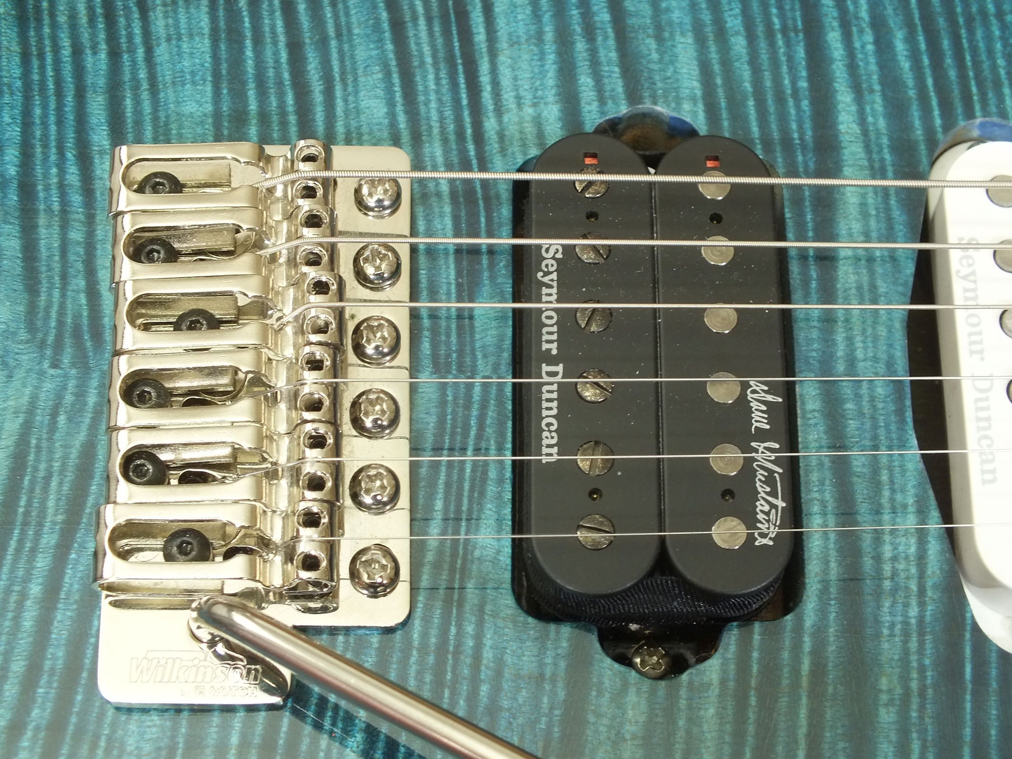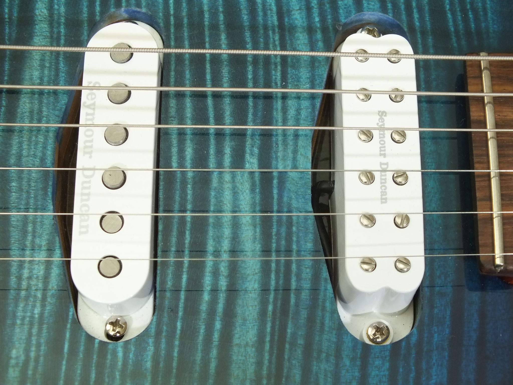 Bestückt mit zwei per Zugpoti (Volume) splitbaren Humbucker-Pickups von Seymour Duncan: SH-2N Jazz am Hals und TB-4 JB Trembucker in der Bridge-Position.
