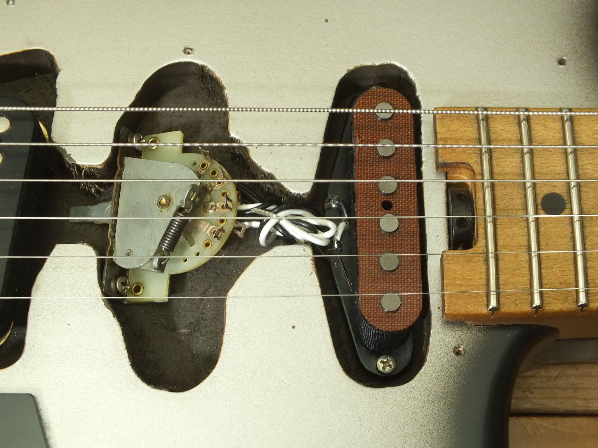 Bestückt mit zwei "Siggi's Favourite Plus" Zebra Humbucker-Pickups - verwaltet mittels Fünffach Wahlschalter, der Humbucker- und Singlecoil-Sounds ermöglicht. Diese Tonabnehmer wurden übrigens von Harry Häussel für Braun entwickelt.
