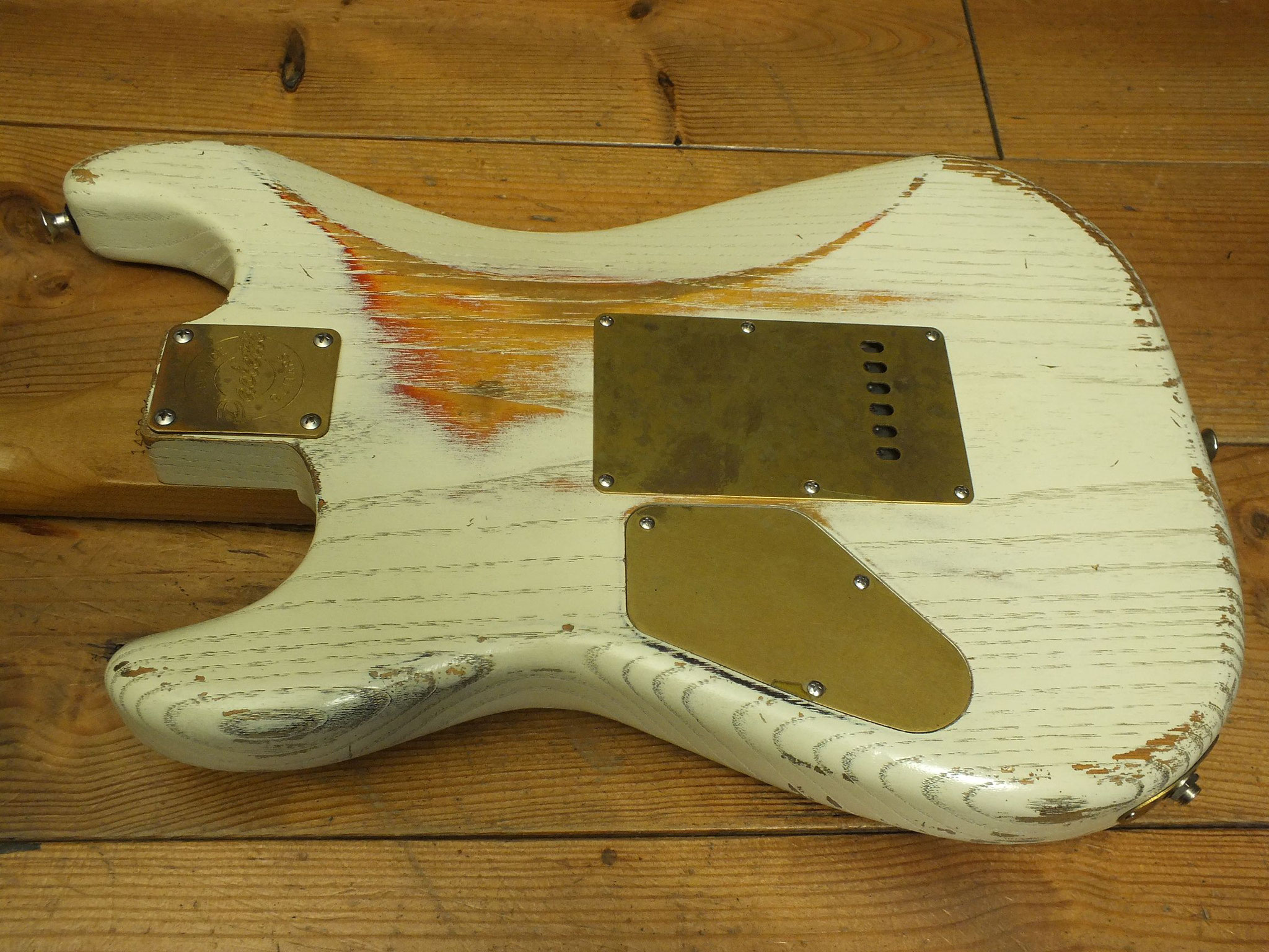 Gilmour Style Strat - komplett aus von Fender lizensierten bzw. Originalteilen bestehend. Bis auf das Finish ganz dem Original des legendären Pink-Floyd-Gitarristen nachempfunden.