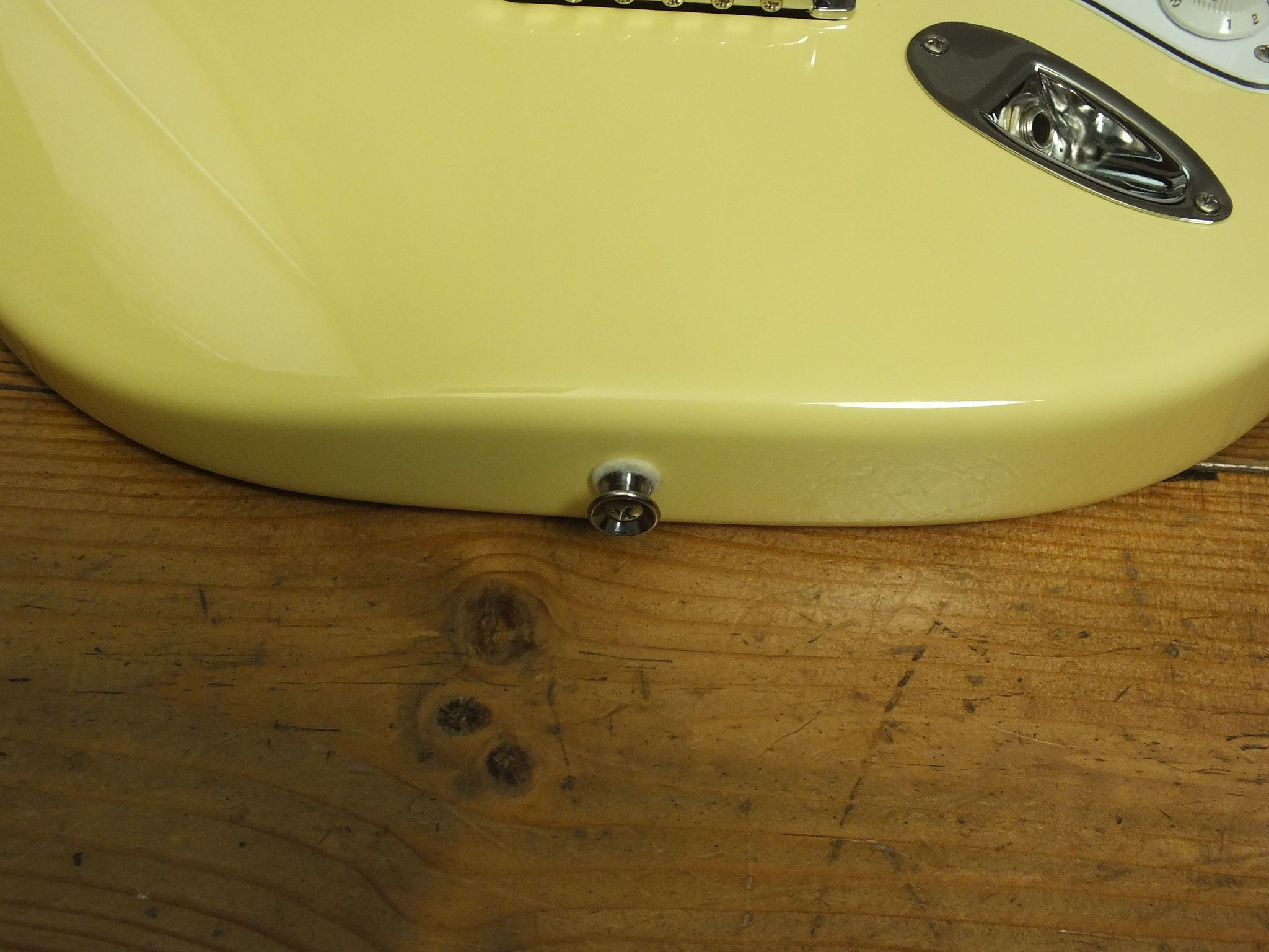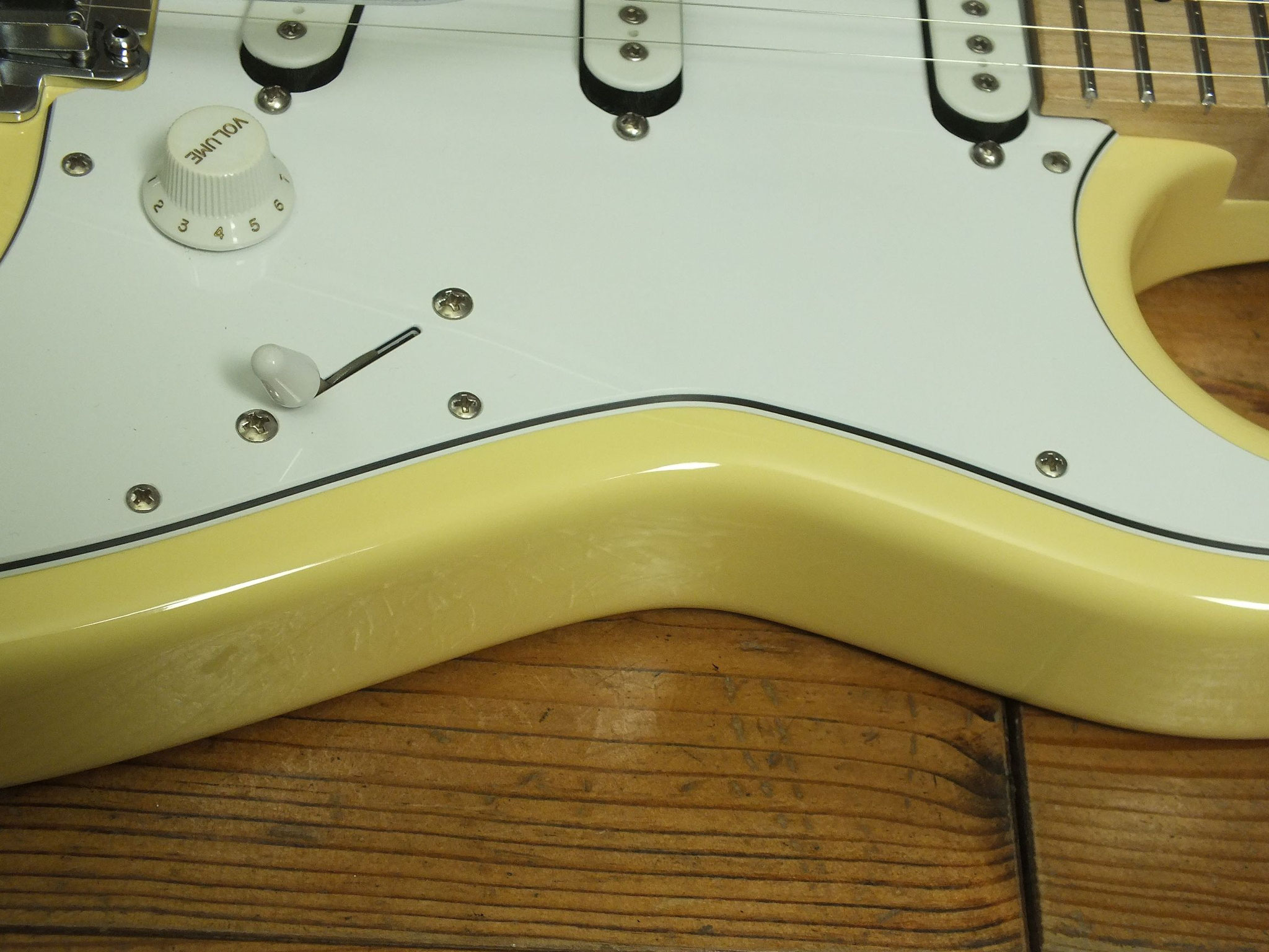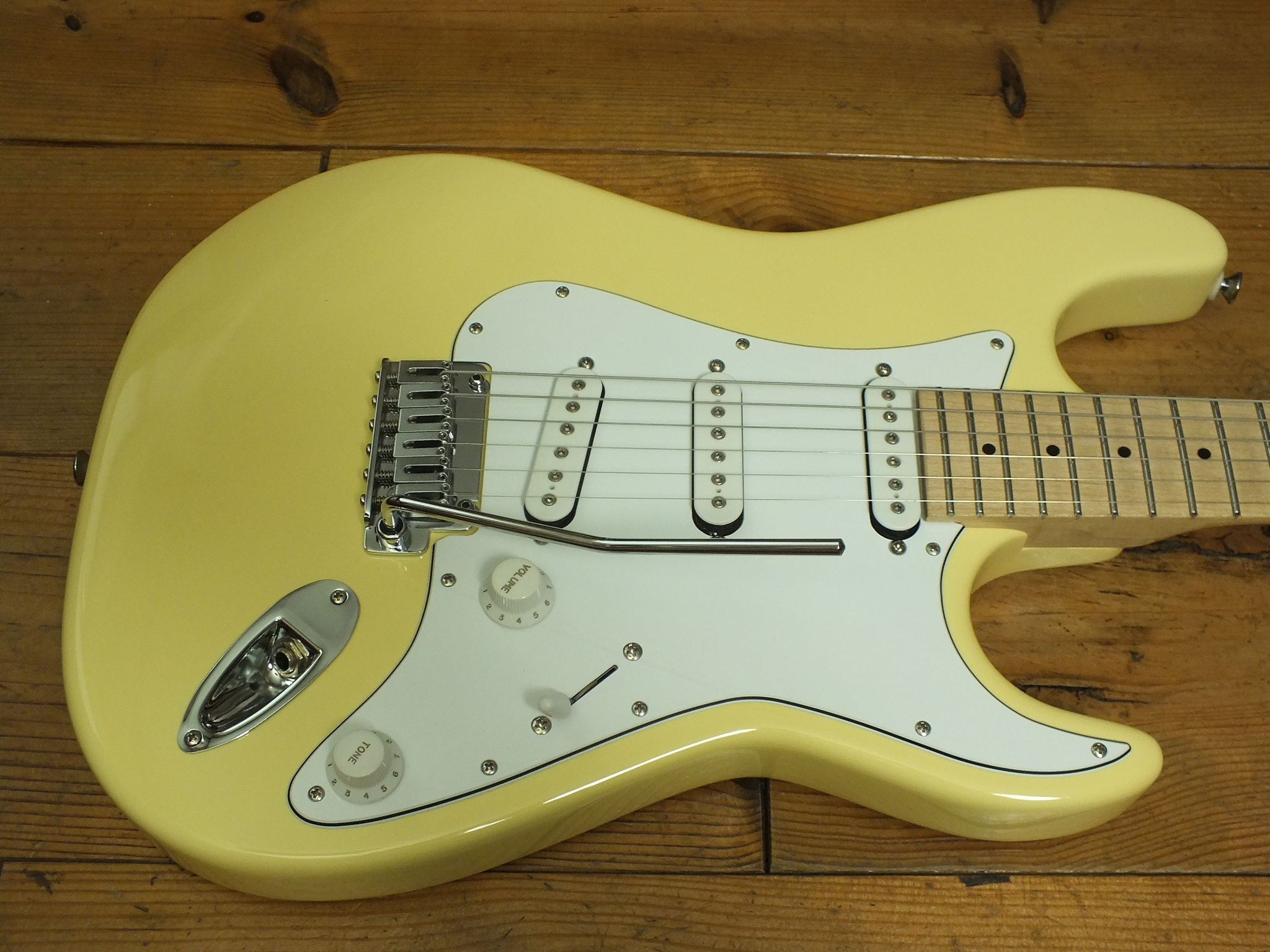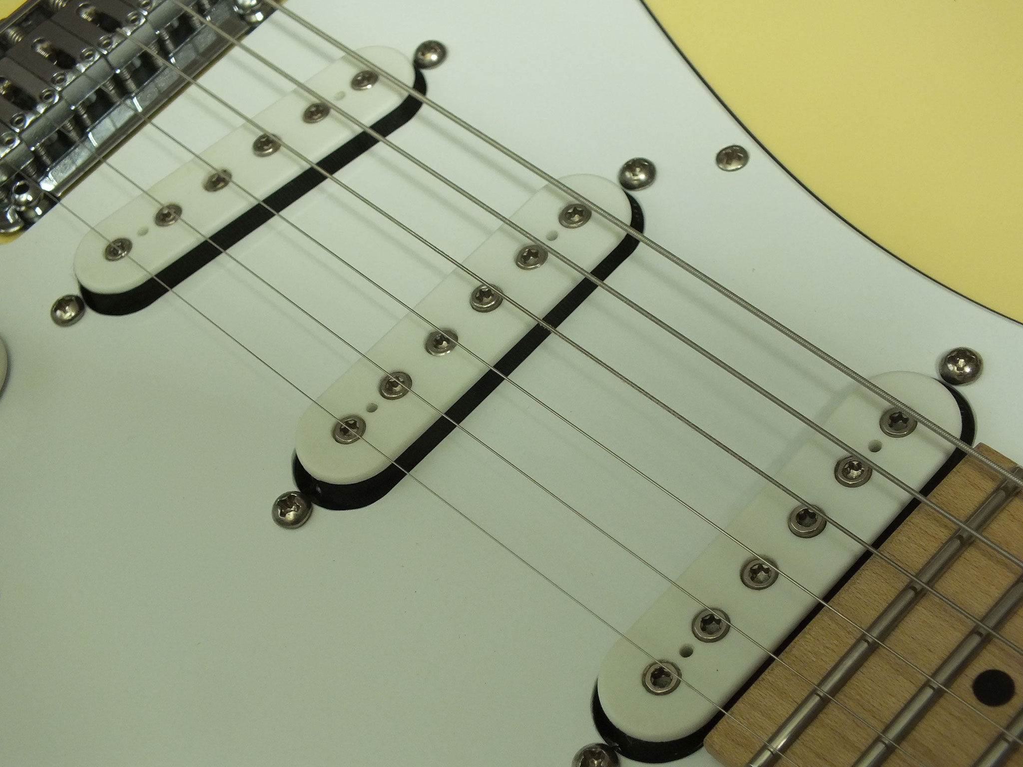 Konturierter Erlen-Body mit abgeflachtem Hals-Übergang im geschmackvollen "Vintage White" Finish.