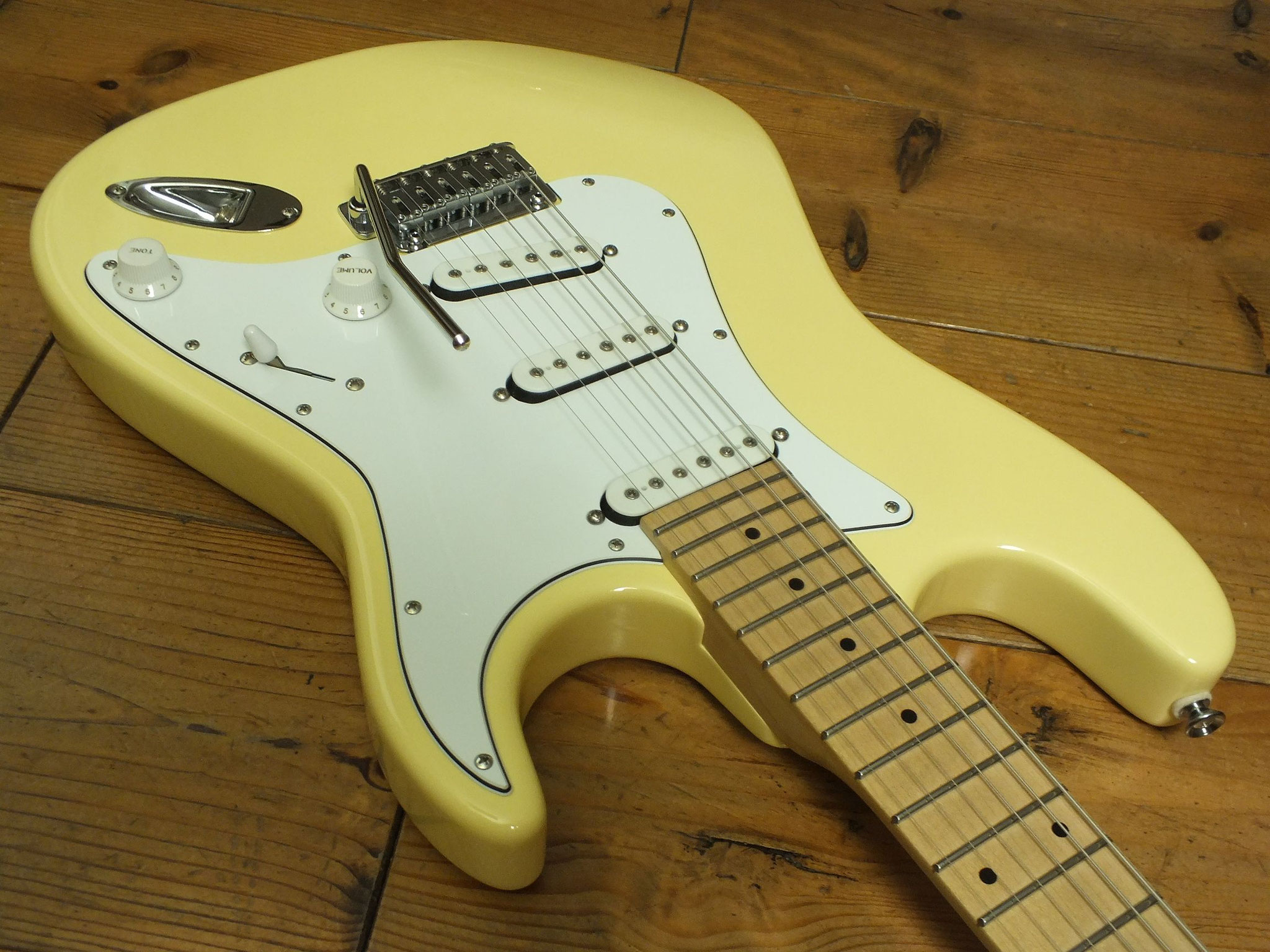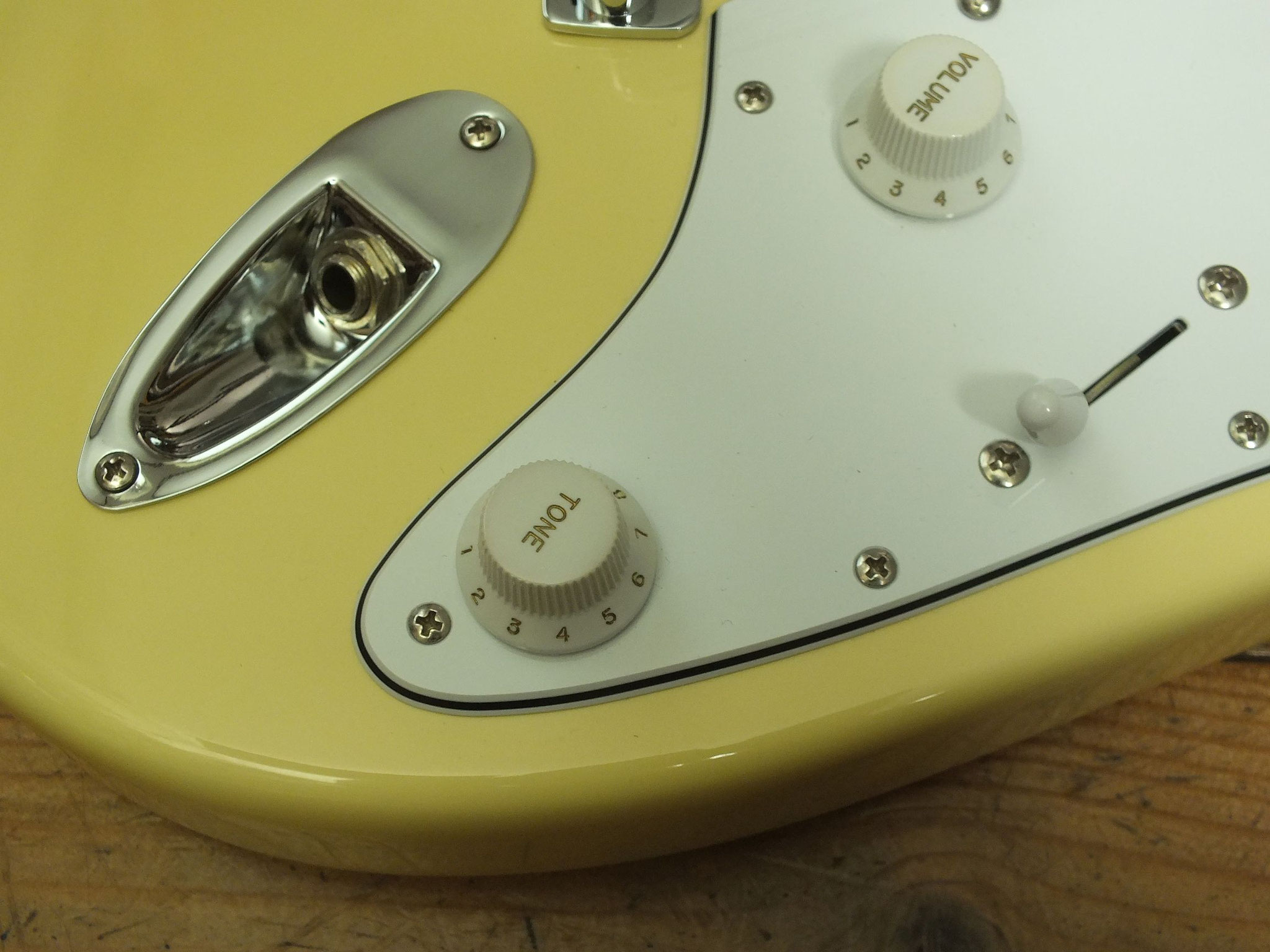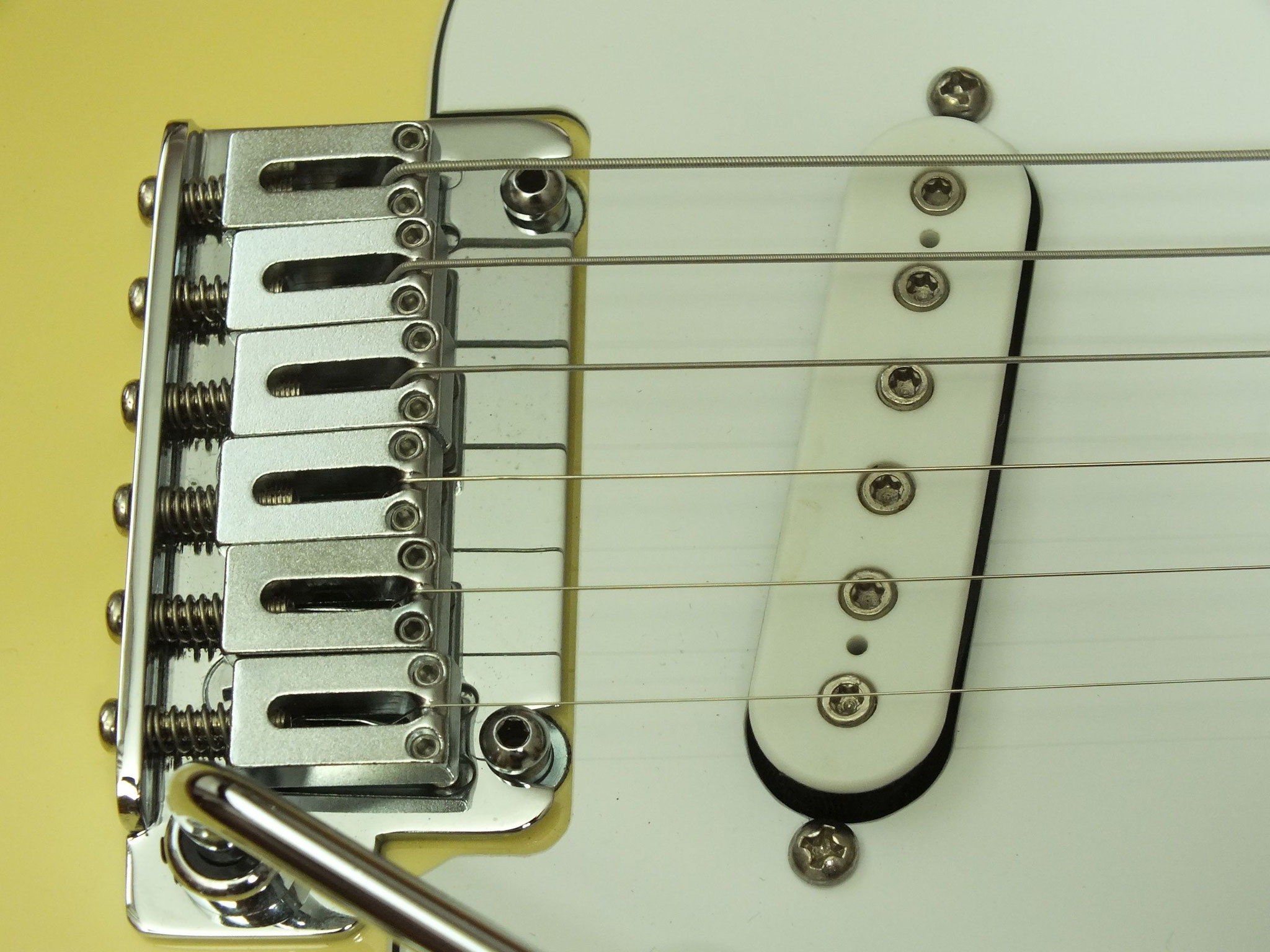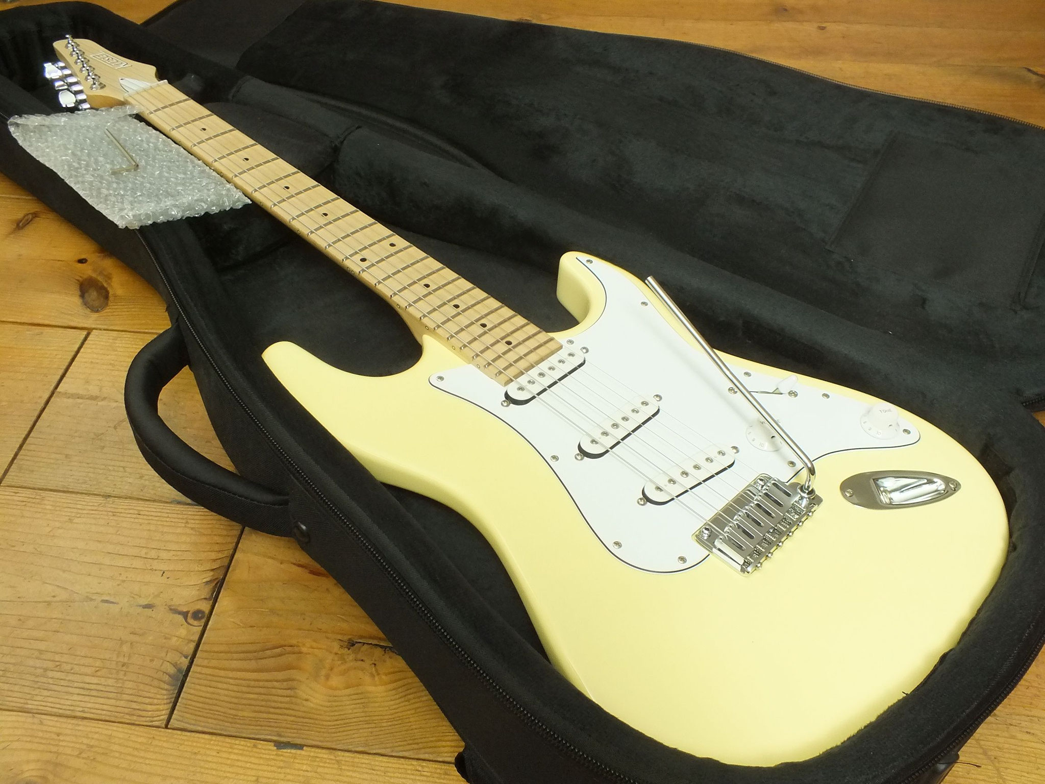 Konturierter Erlen-Body mit abgeflachtem Hals-Übergang im geschmackvollen "Vintage White" Finish.
