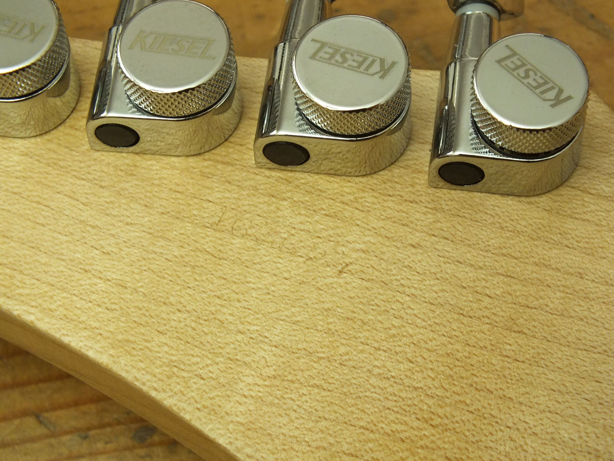 Leider lassen die Seriennummern von Kiesel-Gitarren keinen eindeutigen Rückschluss auf das Herstellungsdatum zu. Sicher ist hier daher nur ein Fertigungsdatum nach 2015.