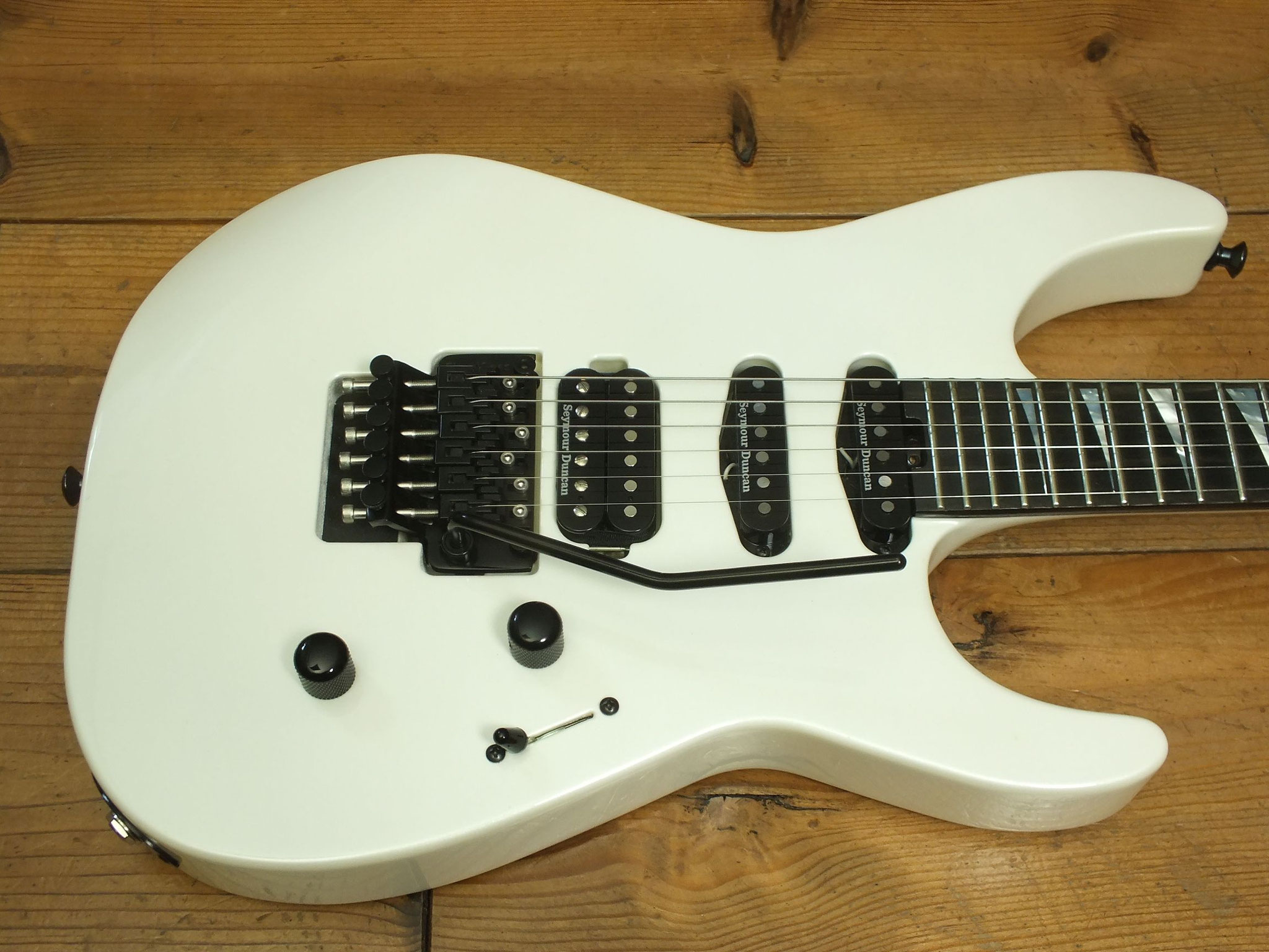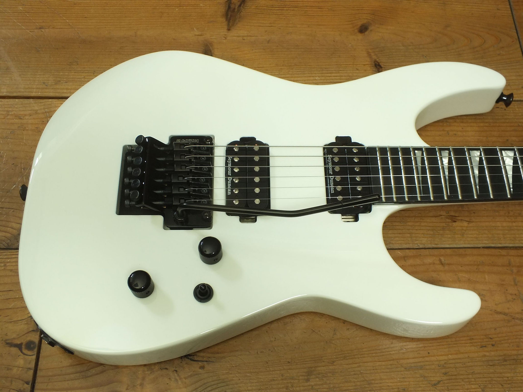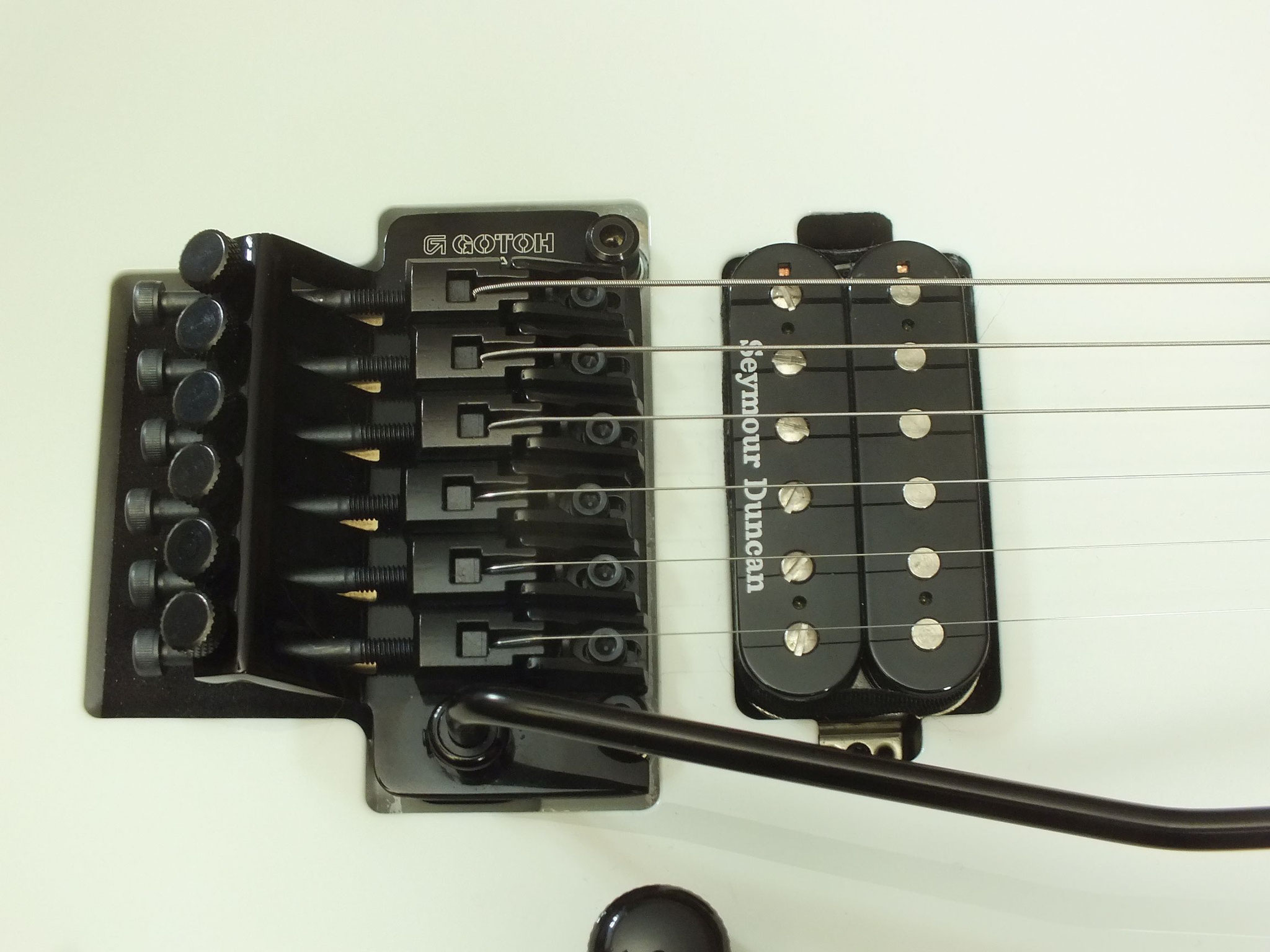 Bestückt mit einem Gotoh GE1996T Series Double-Locking Tremolo sowie einem Seymour Duncan SH-2N Humbucker am Hals und einem Seymour Duncan TB4 Humbucker in der Bridge-Position.