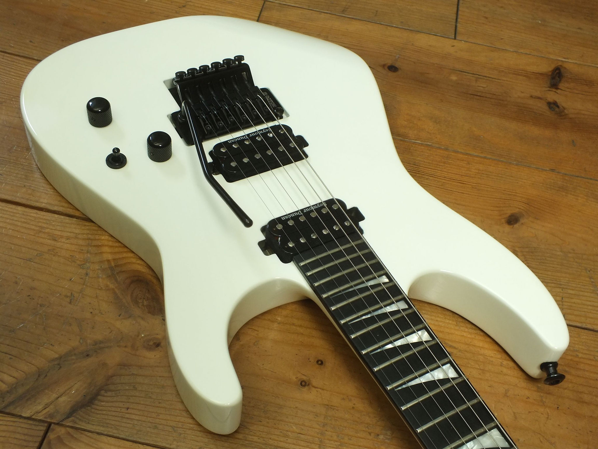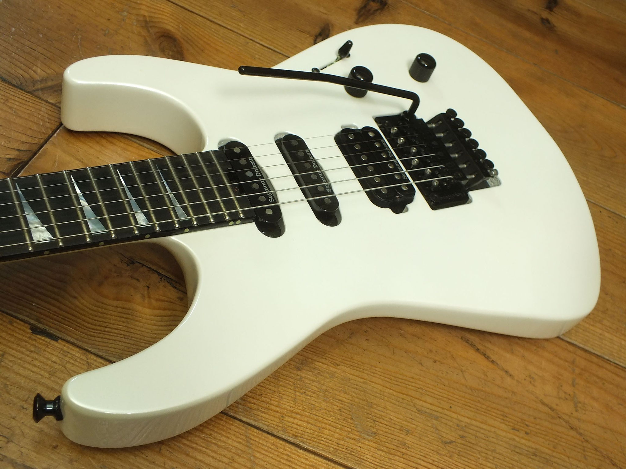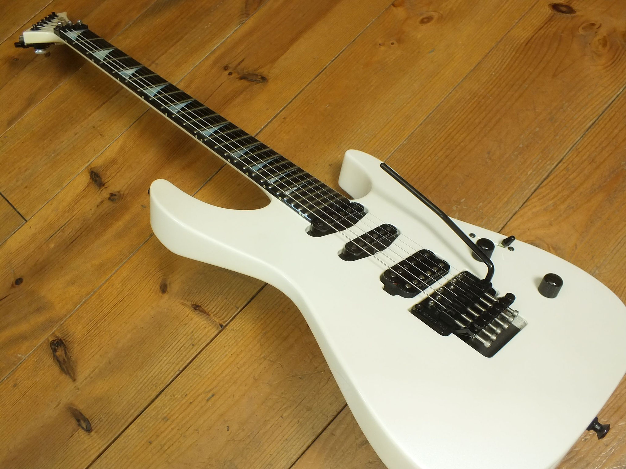 Bestückt mit einem Gotoh GE1996T Series Double-Locking Tremolo sowie einem Seymour Duncan SH-2N Humbucker am Hals und einem Seymour Duncan TB4 Humbucker in der Bridge-Position.