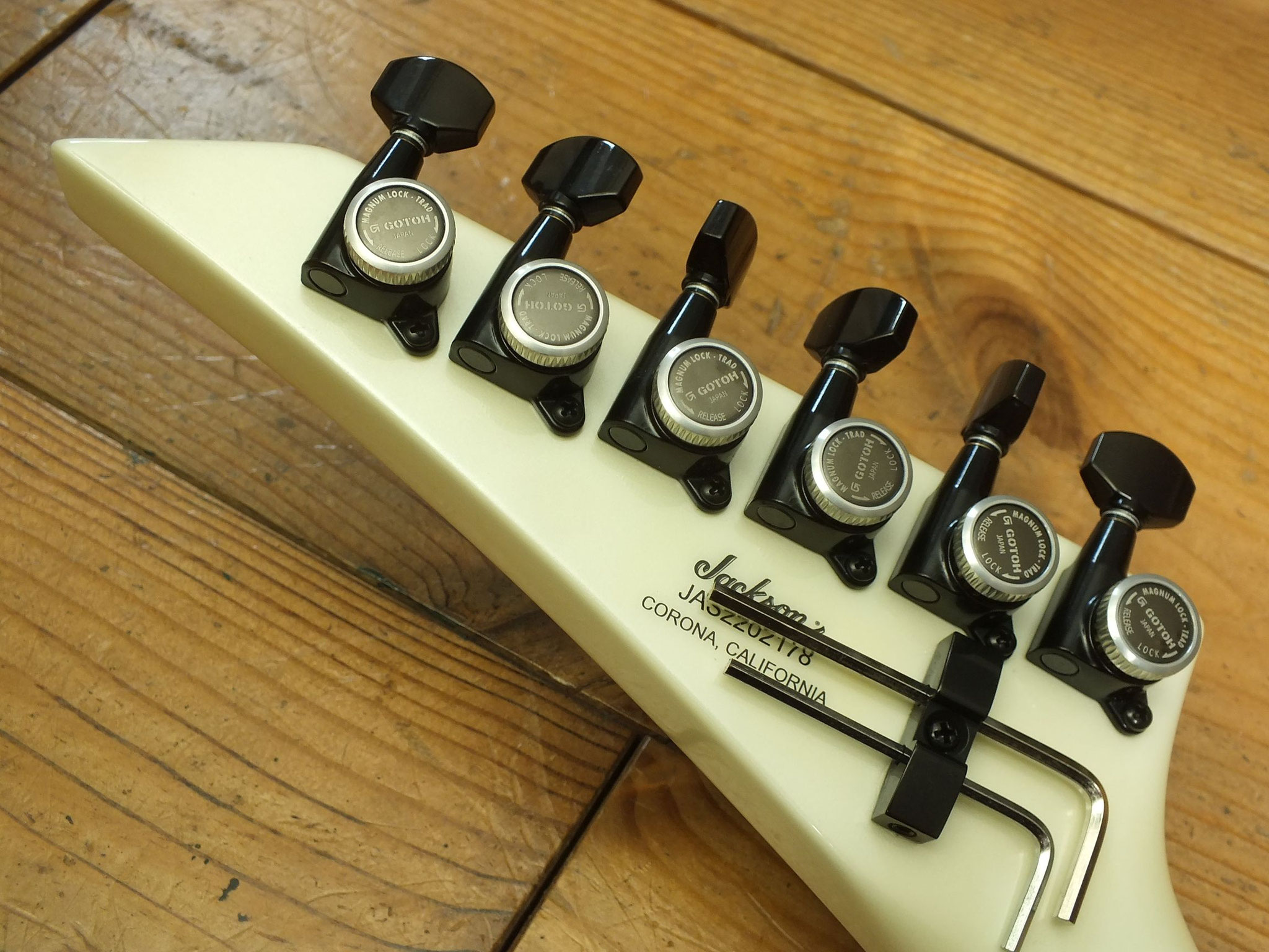 Reinrassige Rock- und Metal-Gitarre alter 80er / 90er Schule von Jackson. Der Firma, die dieses Genre kultiviert hat und mittlerweile zum Fender-Konzern gehört. Neu ist dieses Modell übrigens aktuell sonst nirgends zu bekommen.