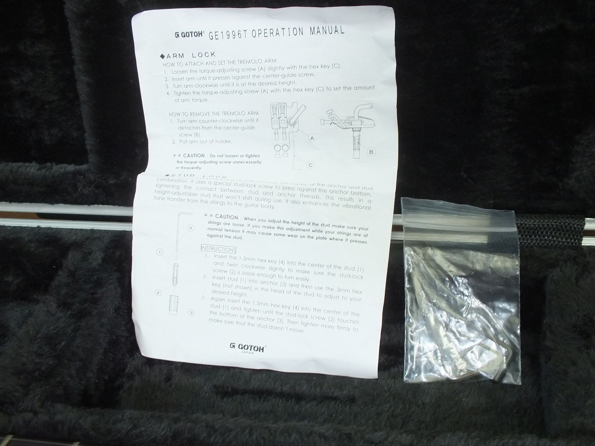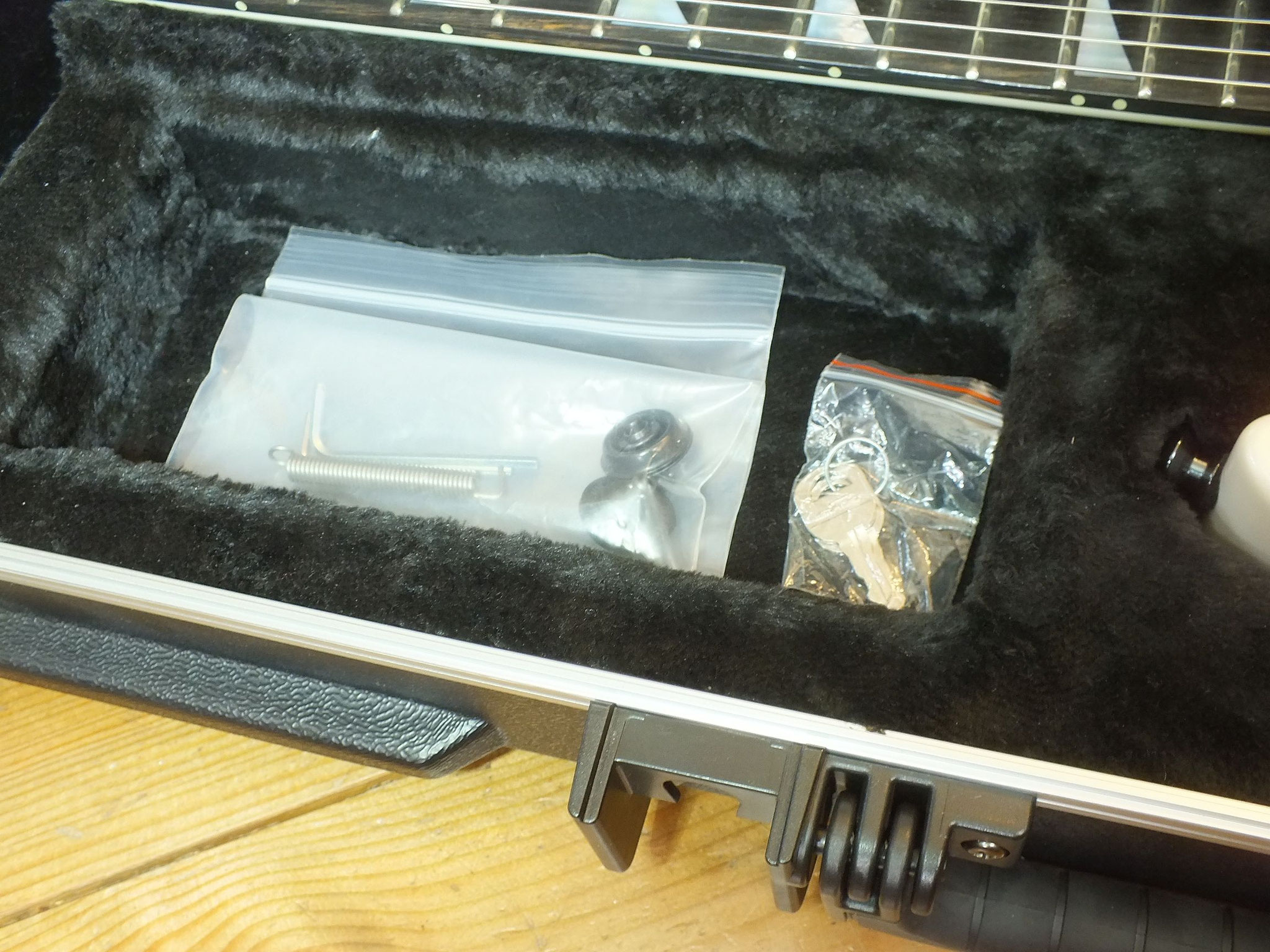 Kommt genau wie abgebildet inklusive Zubehör. Das originale Softcase wurde gegen ein stabiles Jackson SKB-Case ausgetauscht.