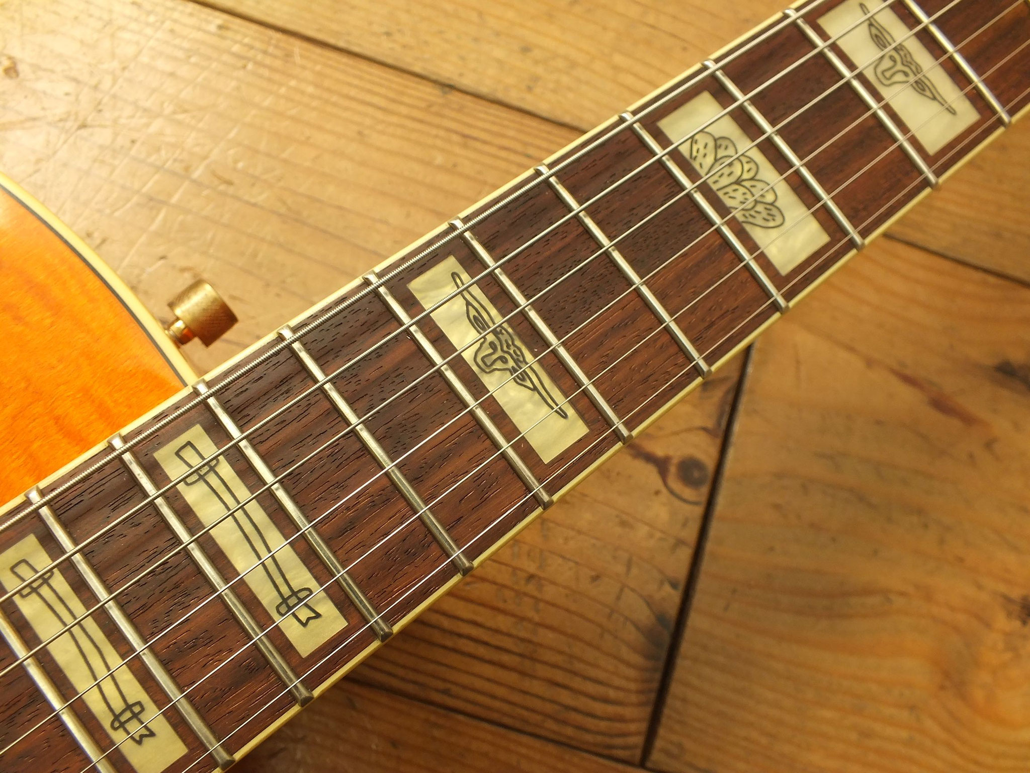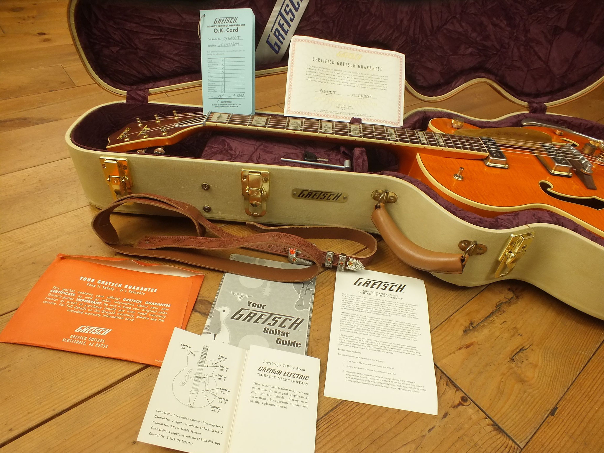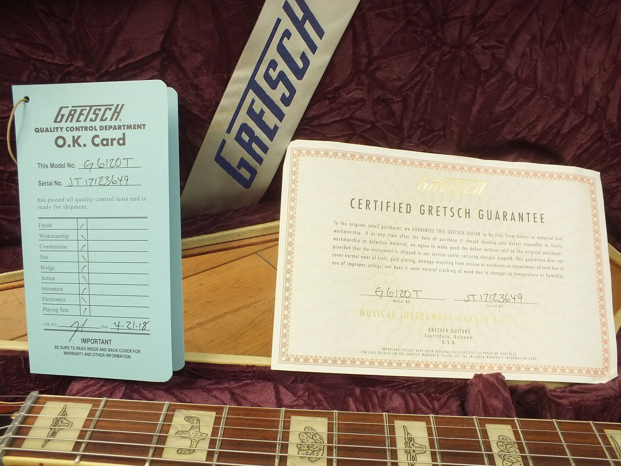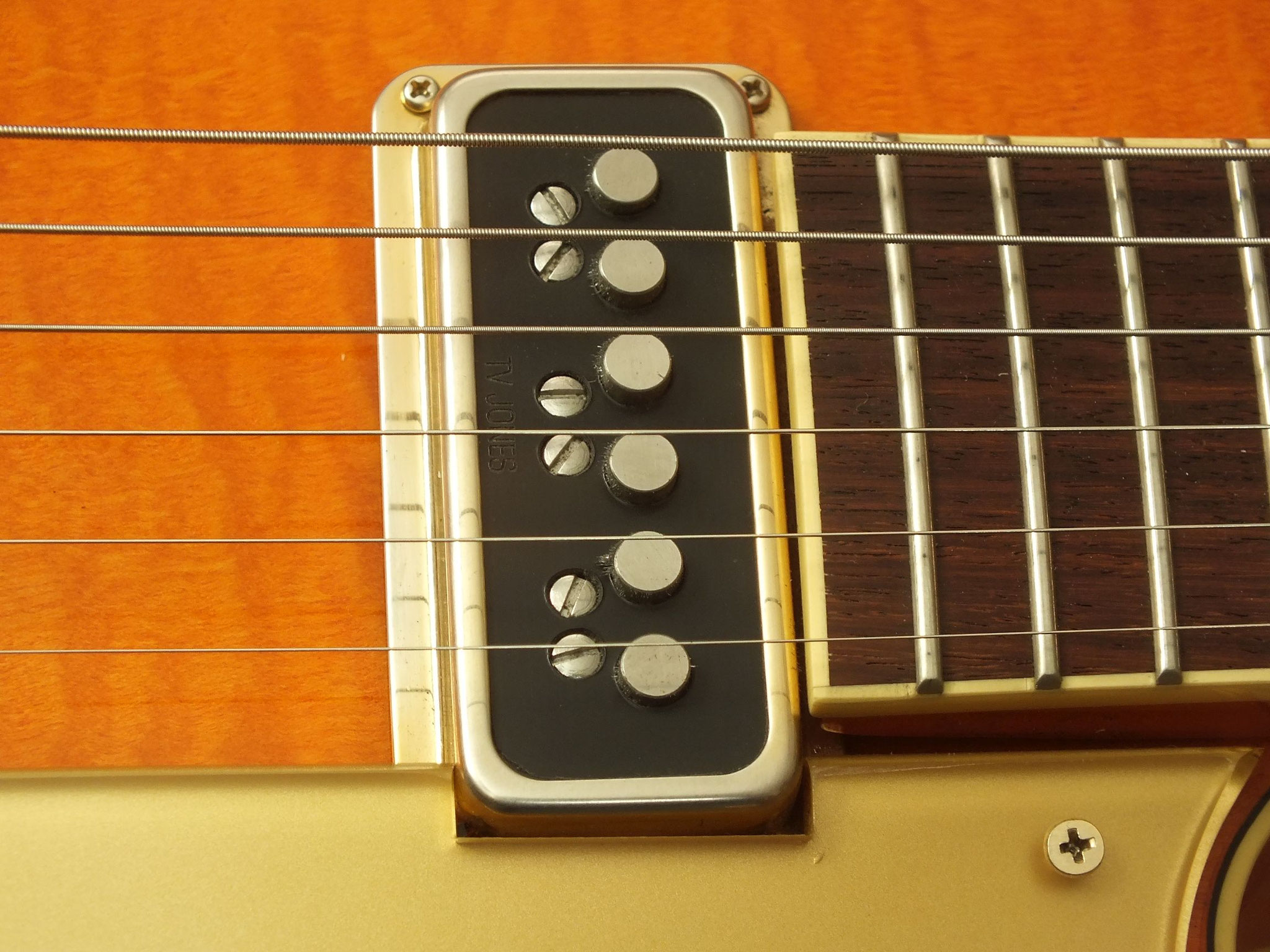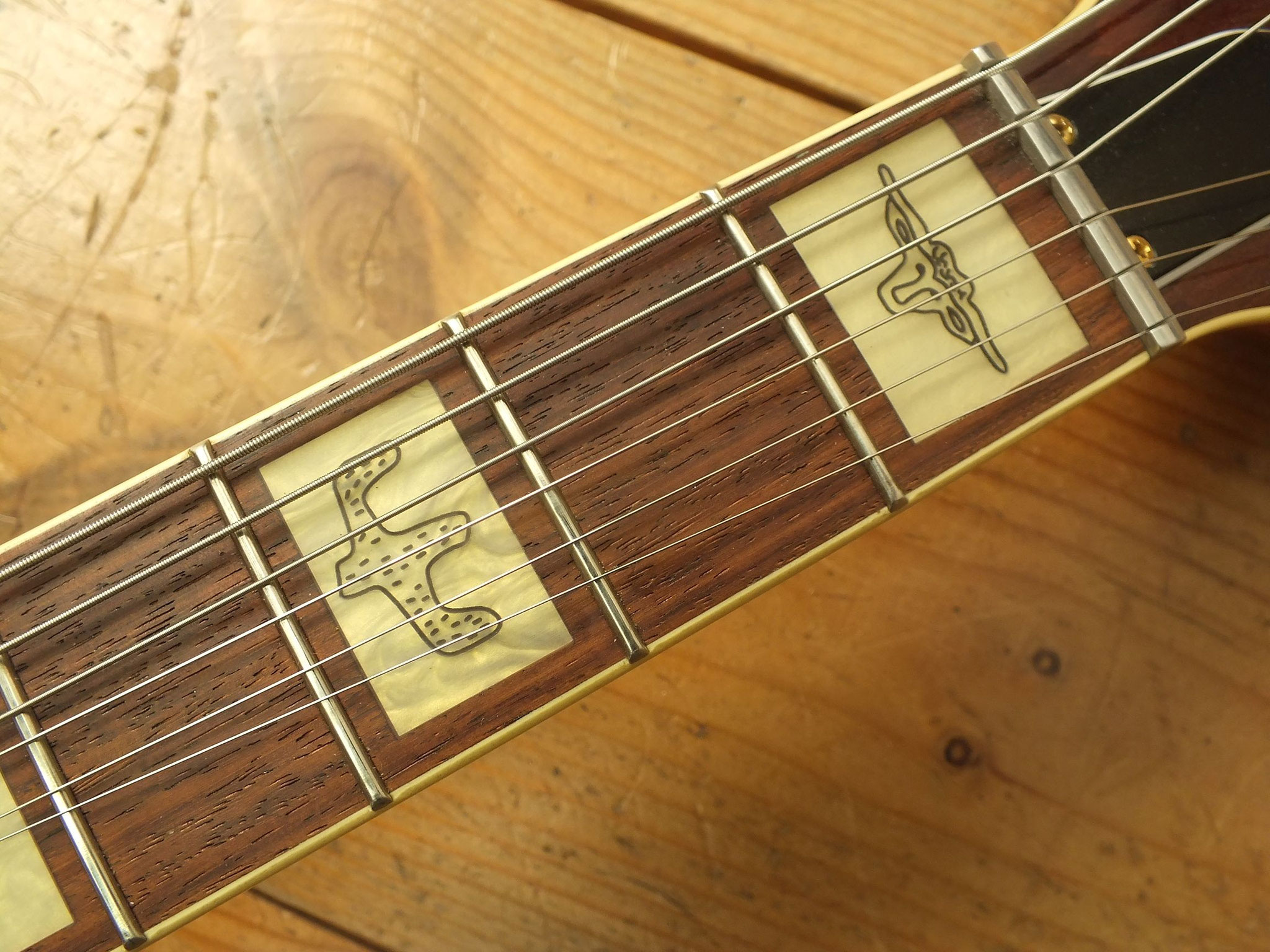 Die Bridge wurde gegen eine Gretsch Rollen-Bridge wie bei der White Falcon ausgetauscht. Das Original-Teil liegt bei.