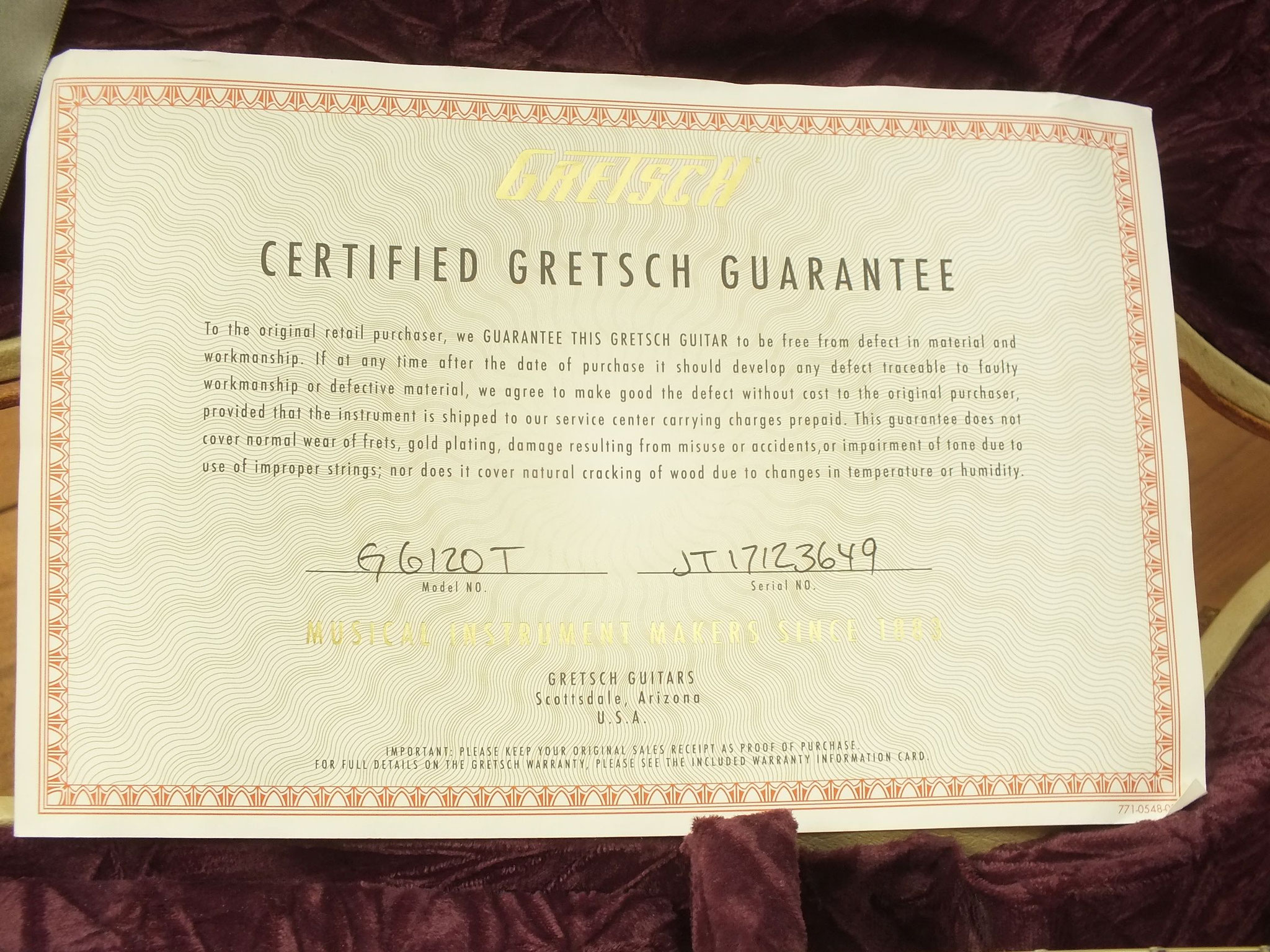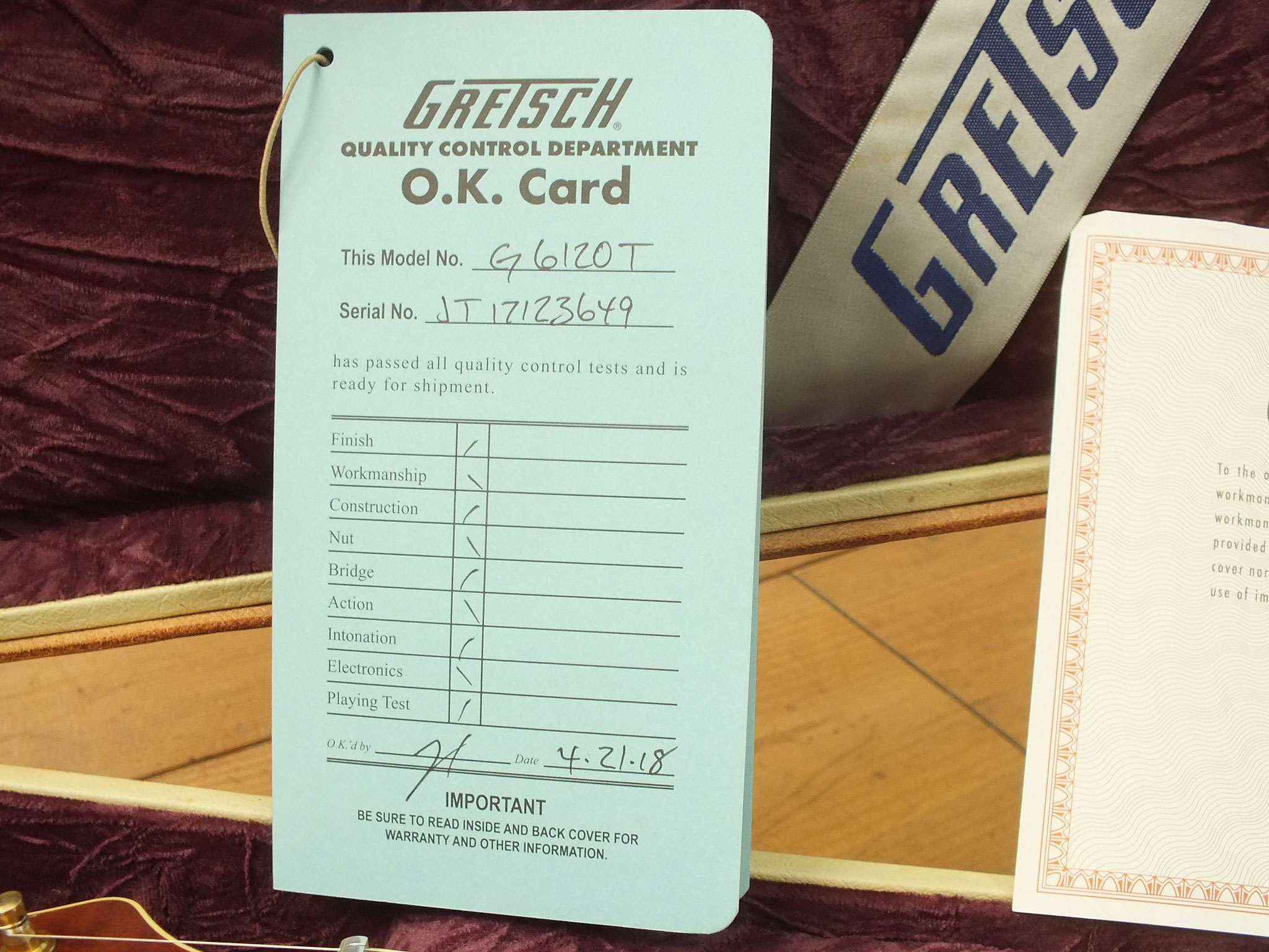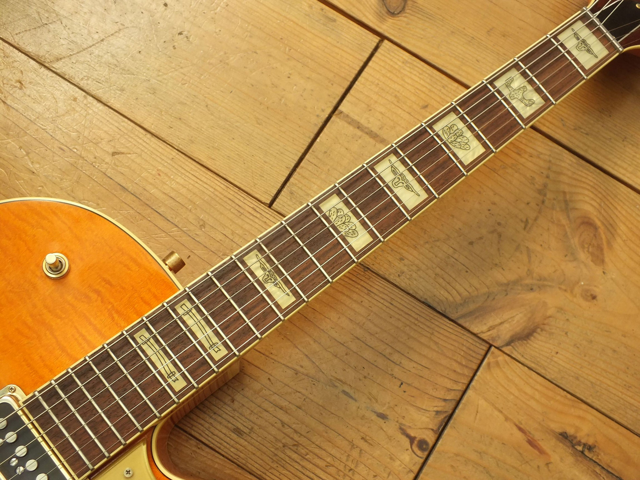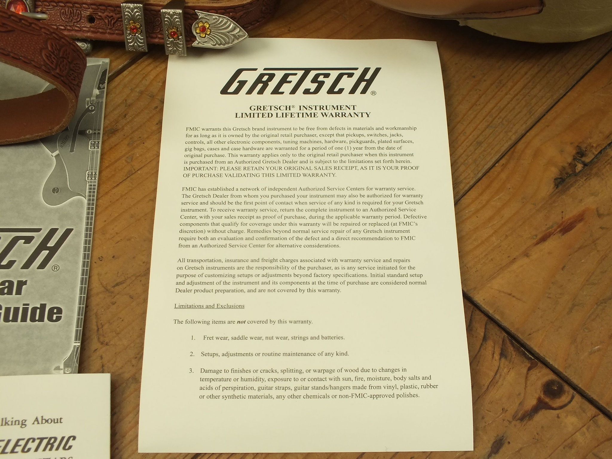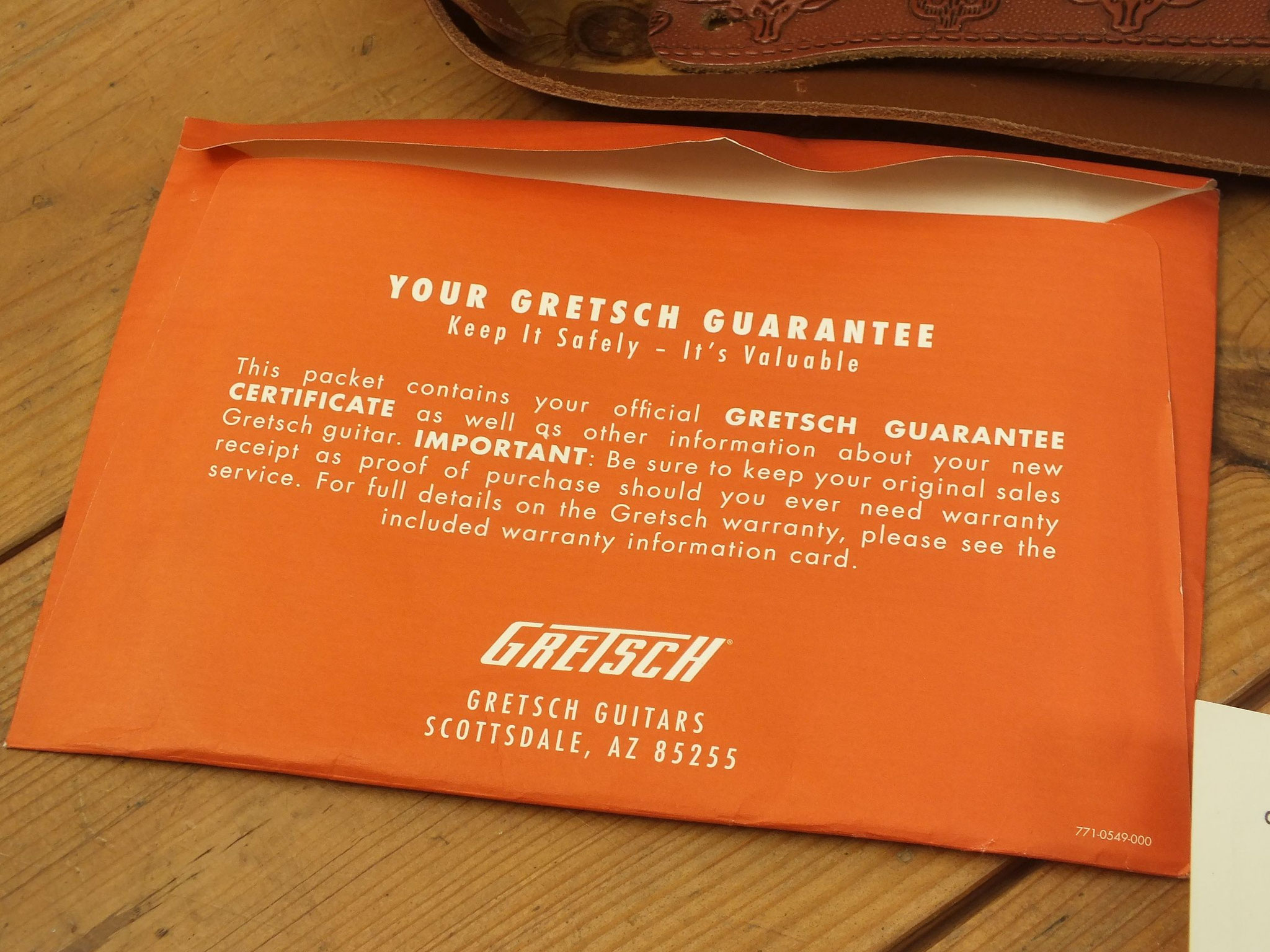 Die Bridge wurde gegen eine Gretsch Rollen-Bridge wie bei der White Falcon ausgetauscht. Das Original-Teil liegt bei.