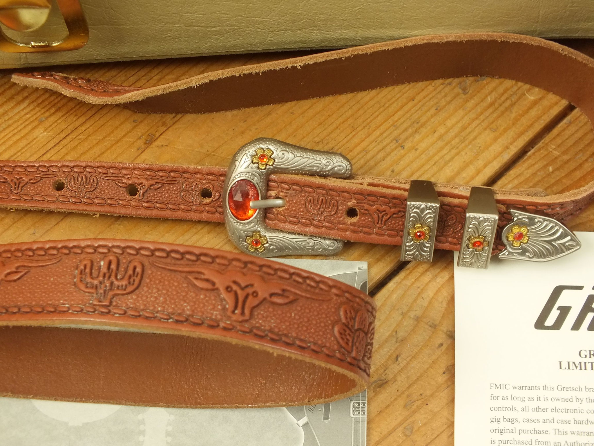 Kommt genau wie abgebildet inklusive Zertifikat, Western-Ledergurt und sonstigem Zubehör. Die spektakulärste Beigabe ist hier sicher das originale Vintage Cowboy Case - extrem gesucht und sonst nirgends zu bekommen.