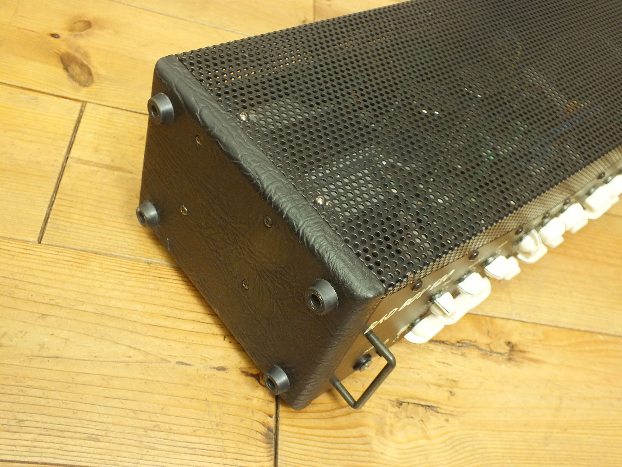 Guter Zustand mit kleinen Gebrauchsspuren - siehe Bilder. Der mittlere Griff fehlt (der Vorbesitzer hat dort Effektgeräte platziert). Das Framus-Logo ist leicht beschädigt und wurde nachträglich mit zwei Schrauben befestigt.