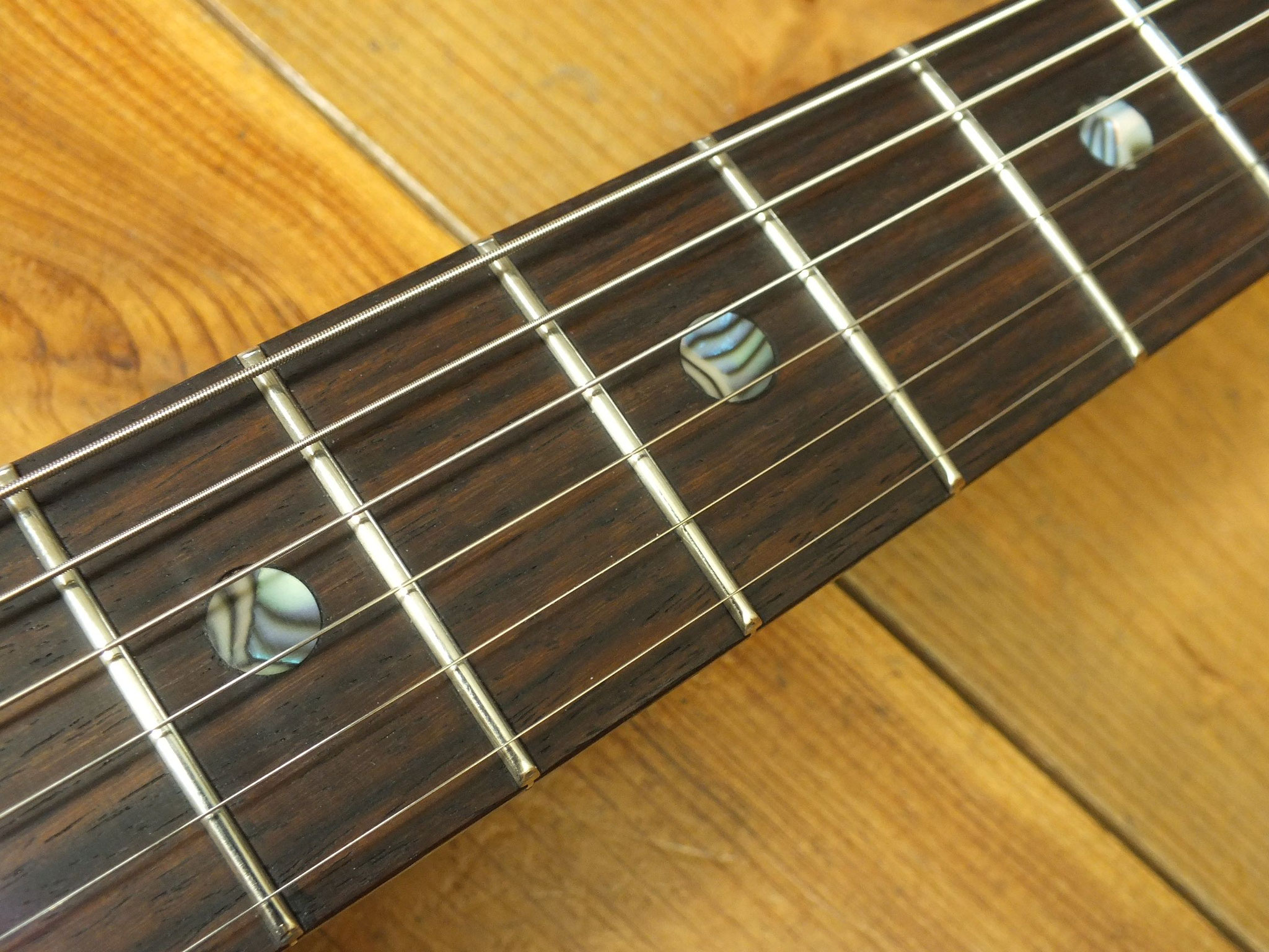Mahagoni-Hals mit Palisander-Griffbrett, Crown-Inlays und 20 Bünden (plus Nullbund).