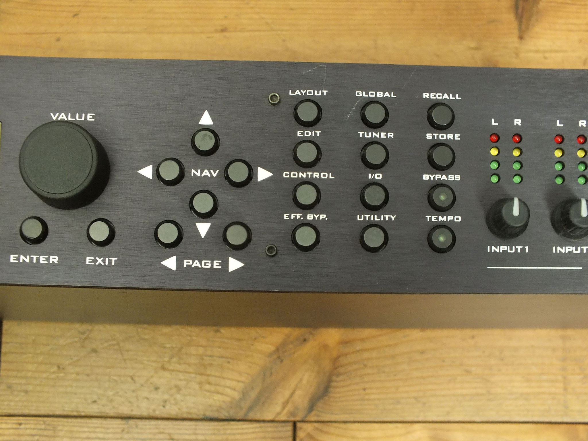 Guter Zustand mit kleinen Gebrauchsspuren (hauptsächlich vom Rack-Einbau) - siehe Bilder. Das Value-Rasterpoti springt manchmal (z.B. auf den übernächsten Speicherplatz), lässt sich aber ansonsten problemlos bedienen. 2-3 Potis machen minimale Geräusche beim Regeln.